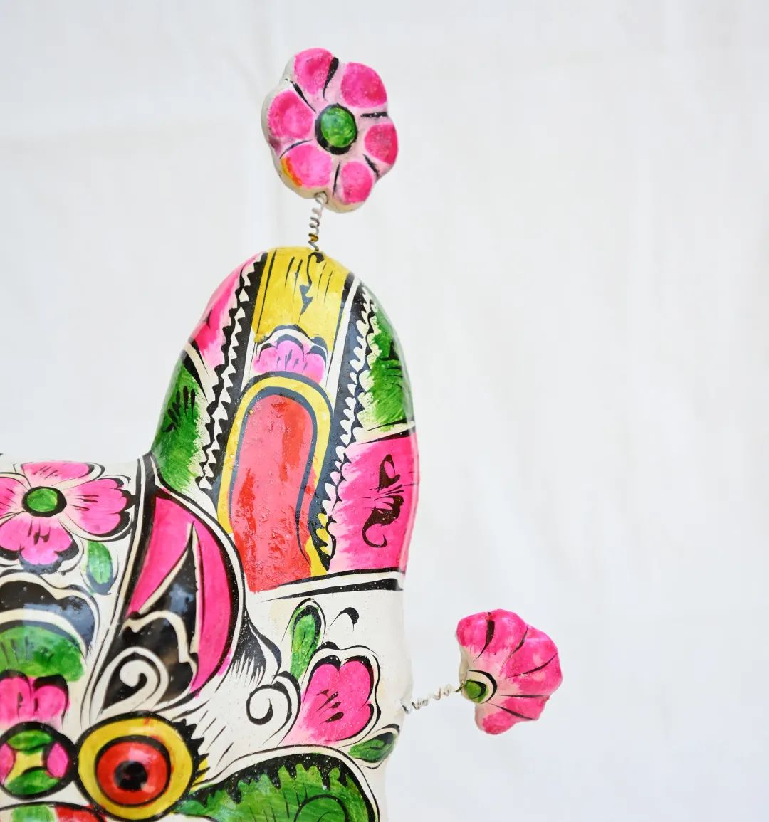 凤翔泥塑有着吉祥的寓意,被人们作为红白喜事和小孩满月时的赠礼。有的虎嘴外连着辣椒一样的装饰,寓意红红火火。有的虎头虎身用弹簧连接四季花朵、十二生肖等小型泥塑装饰件,寓意花开富贵,四季平安。虎身上大多绘有花鸟虫鱼等吉祥图案。这些装饰在为作品增加灵动趣味的同时,也传达着民间艺人的美好祝愿。