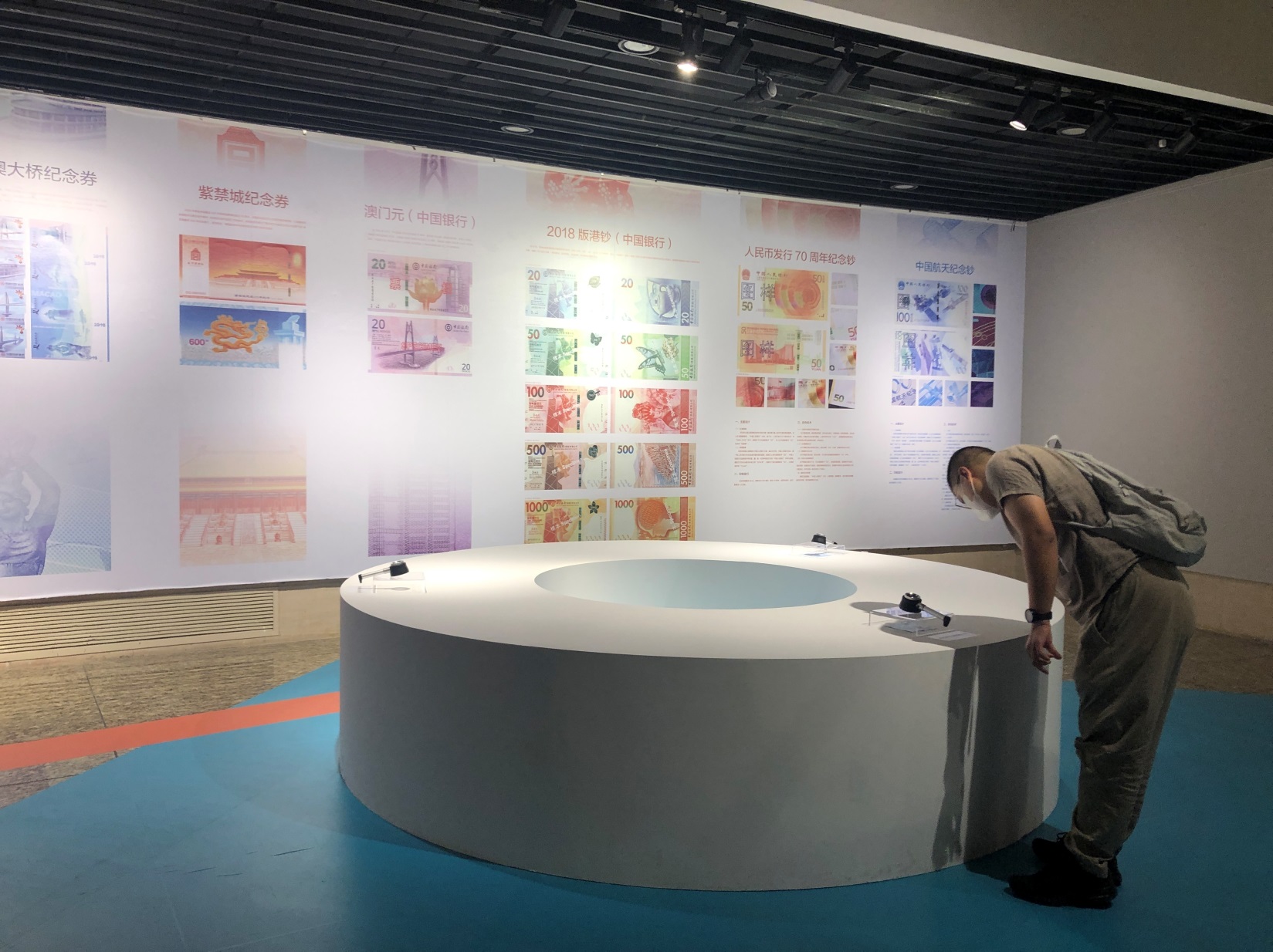 在纸币发展历程展台前,可以随身掏出一张纸币进行扫描。