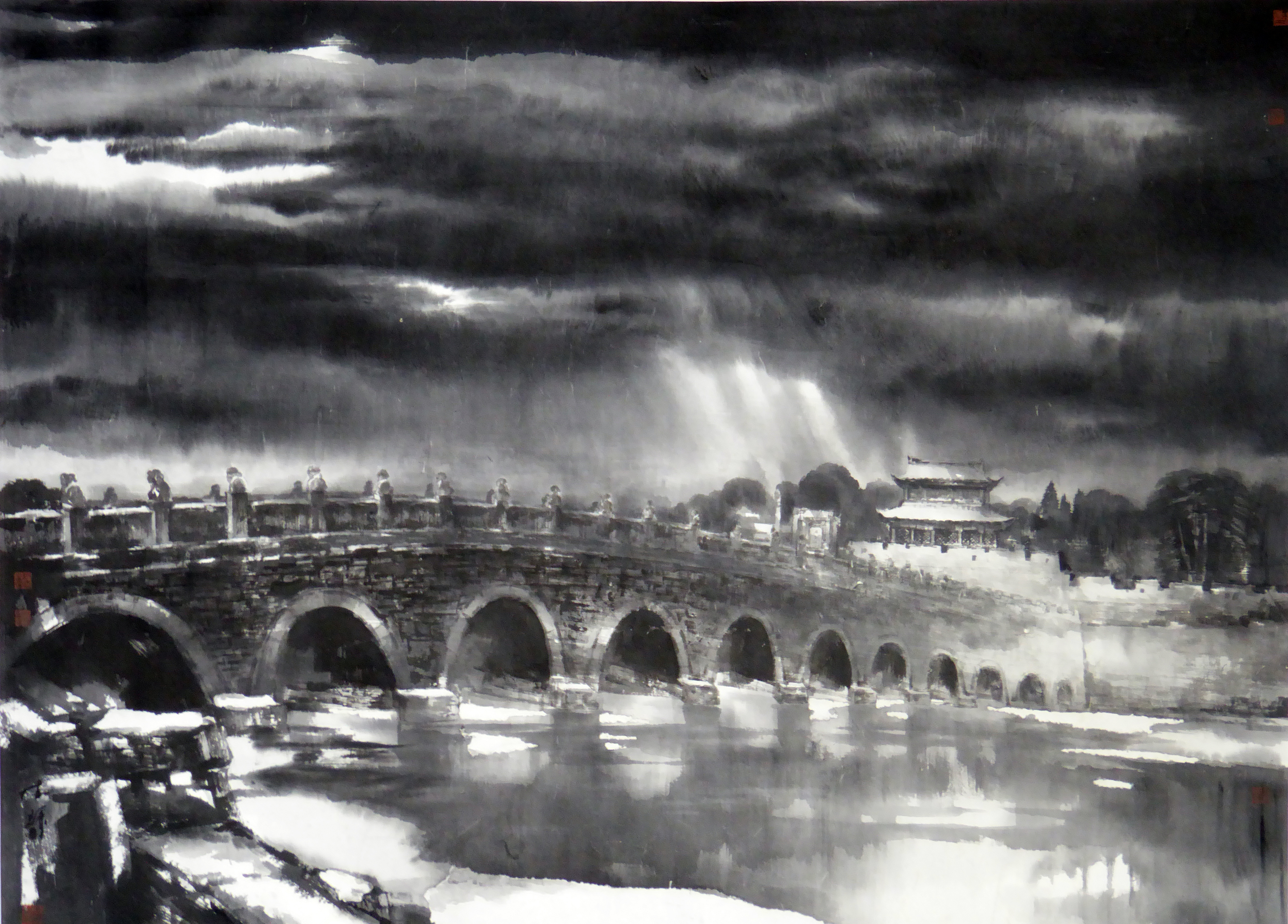 作品以其代表性的水墨语言诠释了极具中国本土意识的内涵符号,呈现出一种中国式的情怀述说与光影的历史语境。
