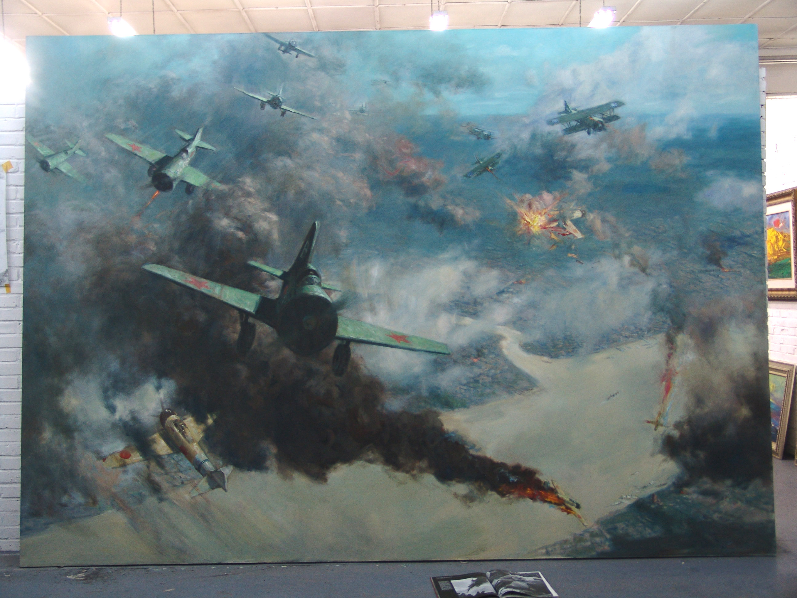 《杨靖宇殉国》《八路军东渡黄河》《武汉空战》这三件作品,目前正在中国人民抗日战争纪念馆展出。