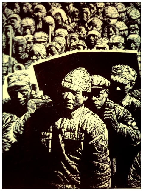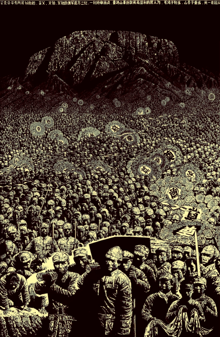 《重于泰山》 450cm×310cm 黑白木刻 2012