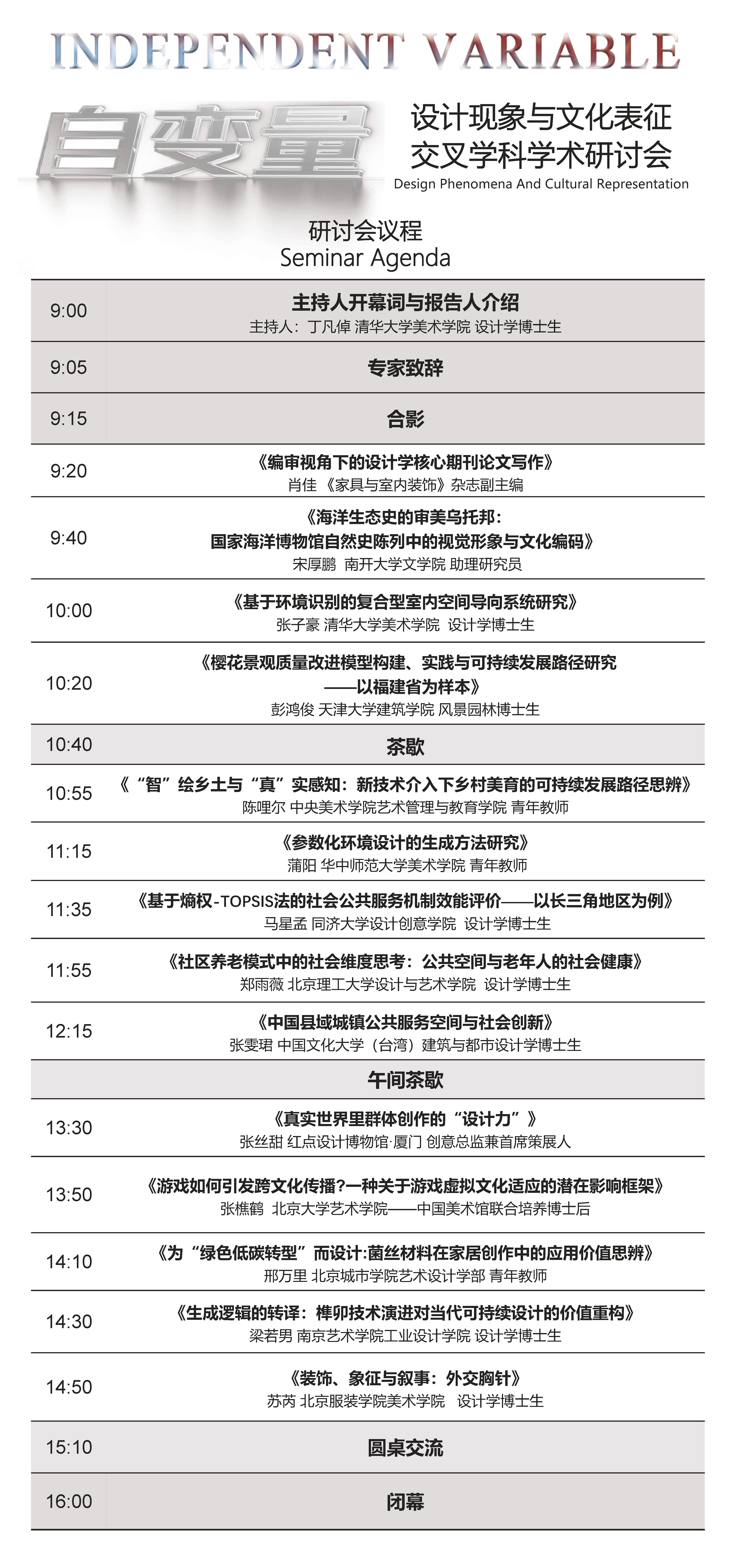 研讨会邀请了清华大学美术学院环艺系主任于历战教授、清华大学美术学院李朝阳教授、北京林业大学工业设计系主任王渤森老师、北大核心期刊《家具与室内装饰》杂志副主编肖佳老师、红点设计博物馆创意总监、首席策展人张丝甜老师出席会议。研讨会同时获得了清华大学出版社《高等学校人居环境艺术设计+人工智能系列教材》编委会、《家具与室内装饰》杂志、清华大学中国农村研究院《乡村美育助力和美乡村建设的路径与政策研究》课题组、福建省高校人文社会科学研究基地设计创新研究中心的学术支持。研讨会由总策划清华大学美术学院环艺系博士生丁凡倬主持。