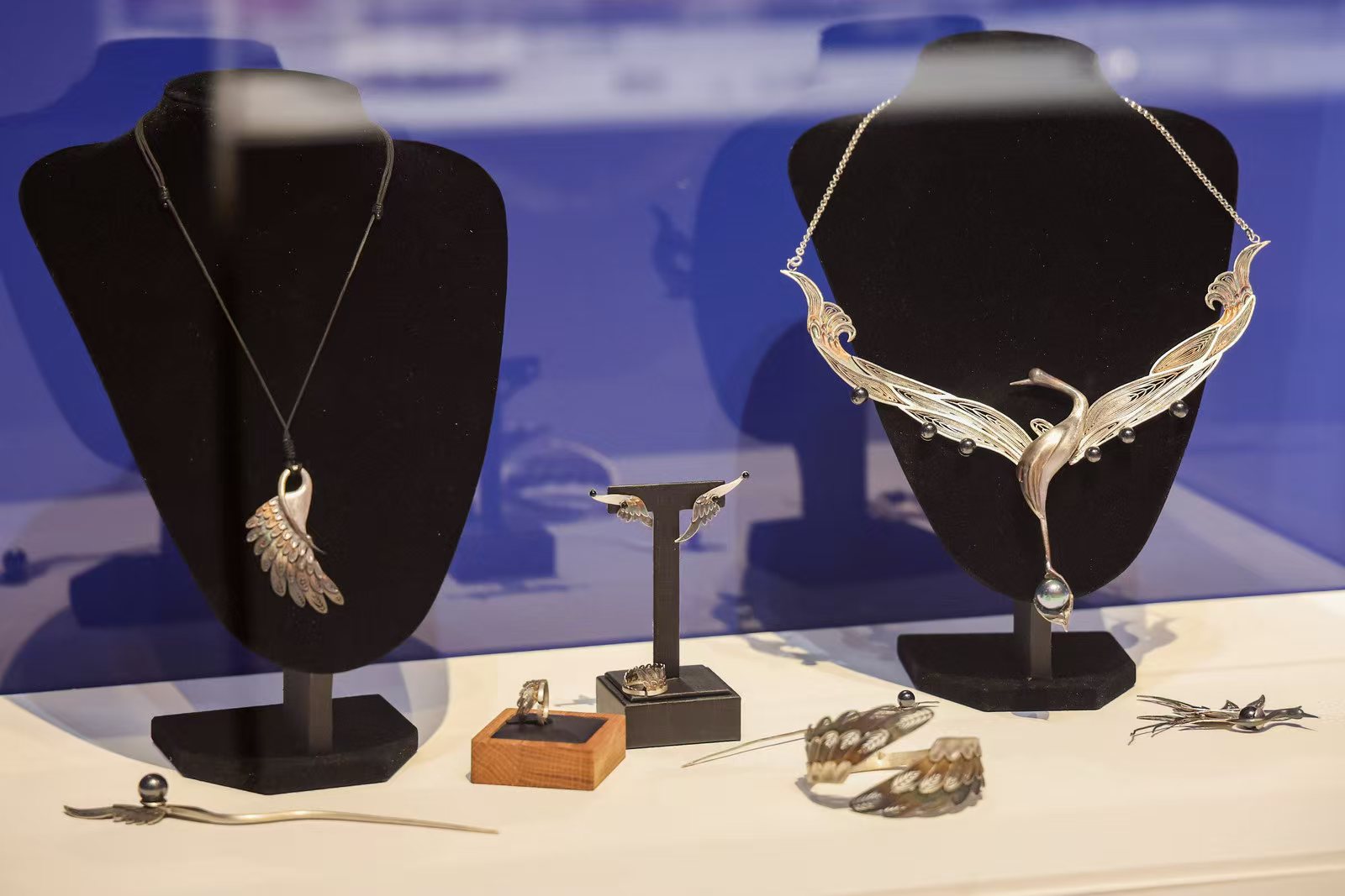 数字工艺也能承载人文关怀。云南民族大学宋会迪的作品《云丝鹤影》以黑颈鹤为题材,运用3D打印精细呈现羽毛肌理,并融合花丝技艺与黑珍珠镶嵌,在典雅气韵中传递对珍稀物种保护与民族文化传承的关切。