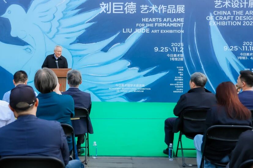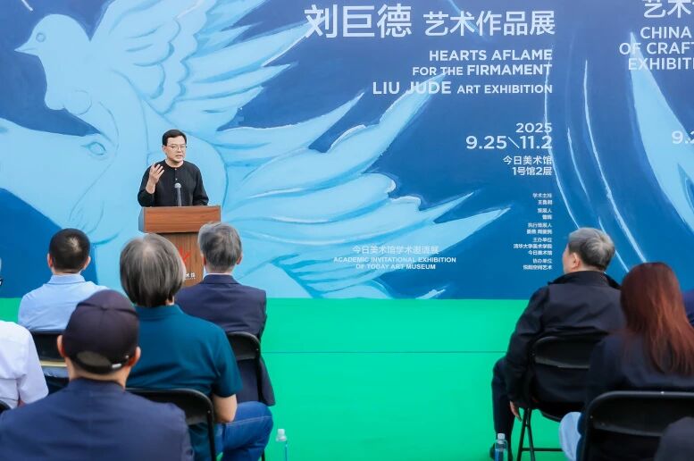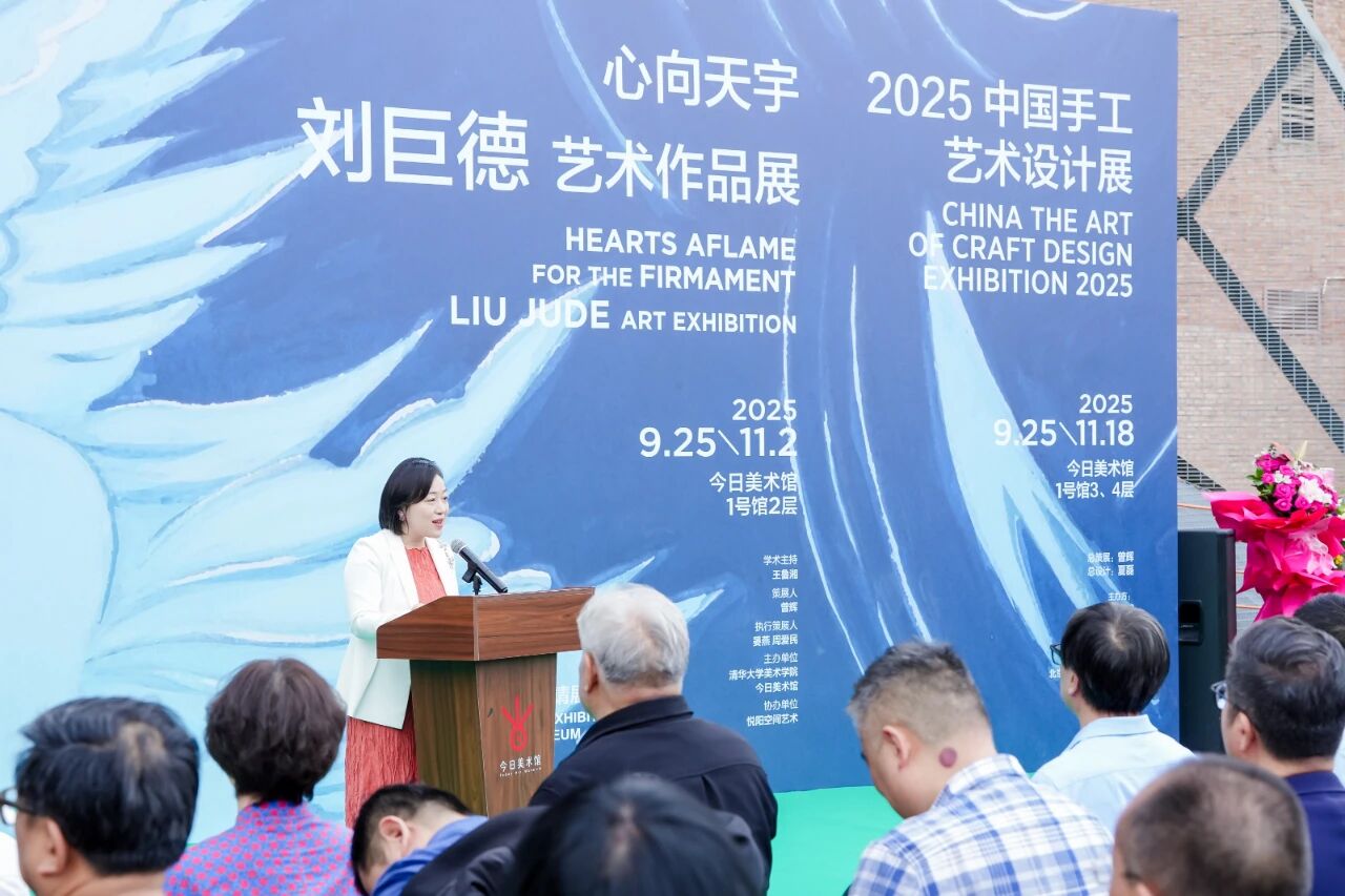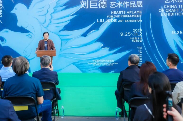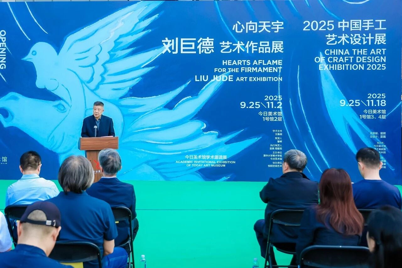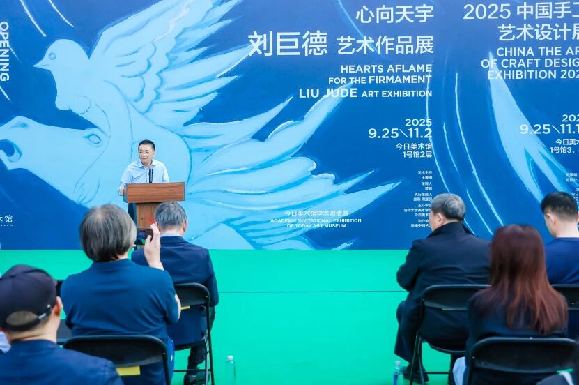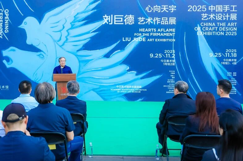 才大颖在致辞中表示,“心向天宇——刘巨德艺术作品展”与“2025中国手工艺术设计展”同时开幕,可以从材美、工巧、气韵、时宜的视角,回望工艺美术的振兴之路。“心向天宇”的展览作品,体现了刘巨德先生对气韵与时宜的艺术理解,为传统工艺如何进行当代表达树立了一个时代标杆。刘巨德先生创意、创新、创造的叙事表达,将审美趣味与文化、艺术精神融入时代脉动,并在引领中不断开拓新的艺术境界。