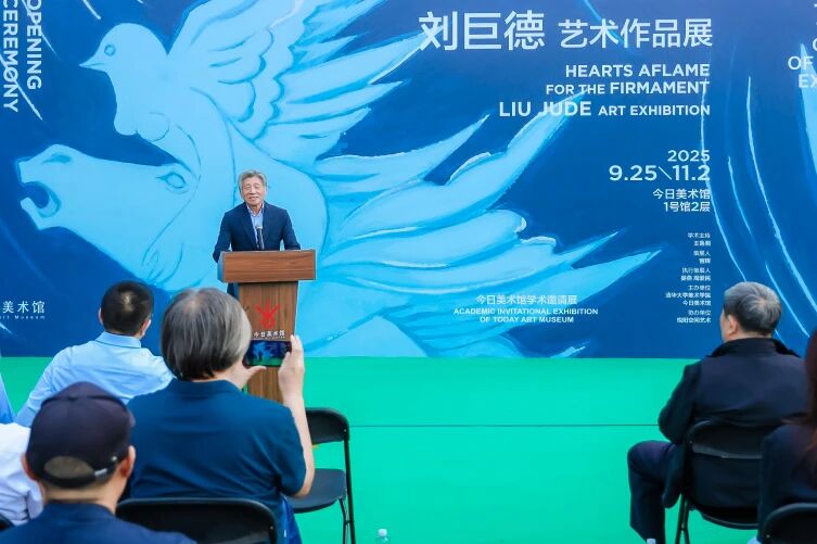 王鲁湘在致辞中表示,建立在光华路上的中央工艺美院所走出的“光华之路”,是一条“大美术”之路。在这个理念下,培养出一批从事大美术创作的大美术家,刘巨德就是其中的杰出代表。他以“大美术”理念贯穿创作实践,打破画种与材料的界限,兼擅陶艺、织绣、水墨、油画与雕塑,形成跨媒介、多元化的艺术格局。他的作品常以和平鸽、少女、骏马等精神图腾寄托对和平、美善与英雄的礼赞,彰显一以贯之的人文关怀与艺术理想。