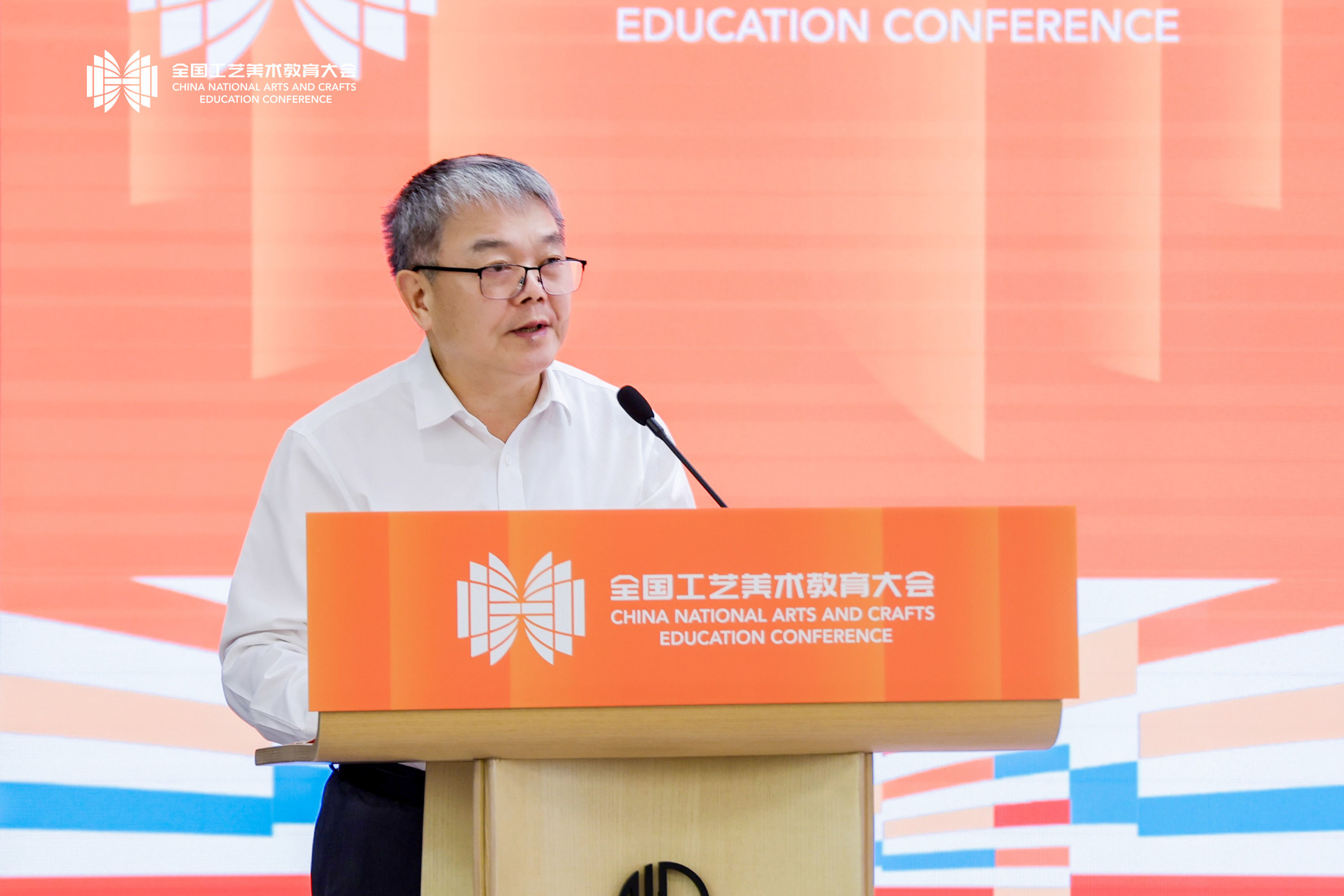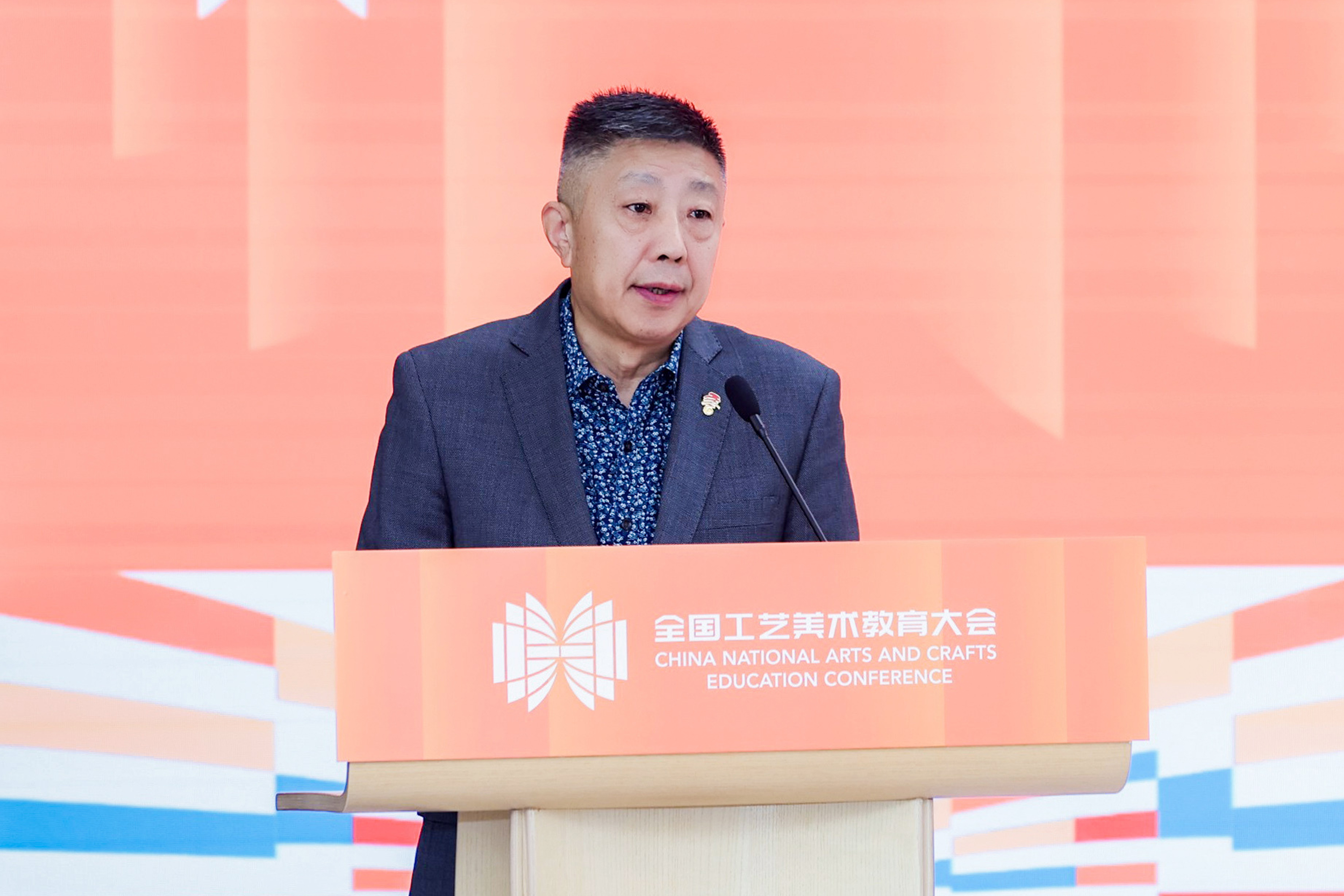 马赛在致辞中讲到,本次教育大会,聚焦于“发掘、培育兼具文化底蕴与创新能力的工艺美术人才”这一核心任务,推动全国院校工艺美术学科间的深度交流,共同探索传统工艺与现代设计、现代科技的融合路径,为工艺美术教育开拓新视野、描绘新图景。衷心希望以本届大会为契机,凝聚共识、启迪智慧、开拓未来。让我们携手共进,为推动工艺美术教育事业的繁荣发展、为实现中华优秀传统文化的创造性转化和创新性发展贡献力量。