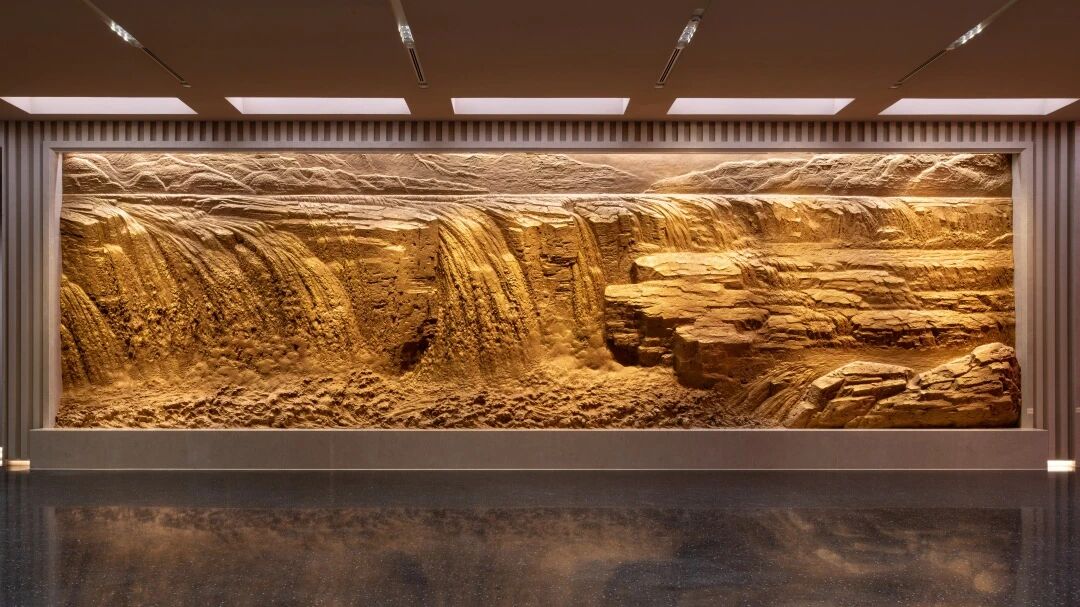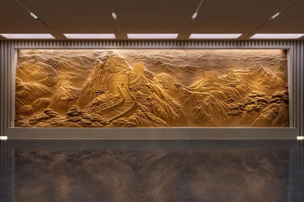从白雪石青绿点染的秀润河山,到张仃焦墨写意的雪夜苍茫;从吴冠中笔下流转的东方韵律,到袁运甫清新雅致的巴蜀气象;从《幽燕金秋》的雄浑壮阔,到《黄河之水天上来》的奔腾定格;从精品浮雕《长城》的璀璨新生,到匠心之作《黄河》的磅礴矗立——艺术,始终与民族的命运同频共振,传递出中华民族坚韧不拔、山河永固的雄浑气魄;象征着华夏儿女百折不挠、激流勇进的刚毅风骨。