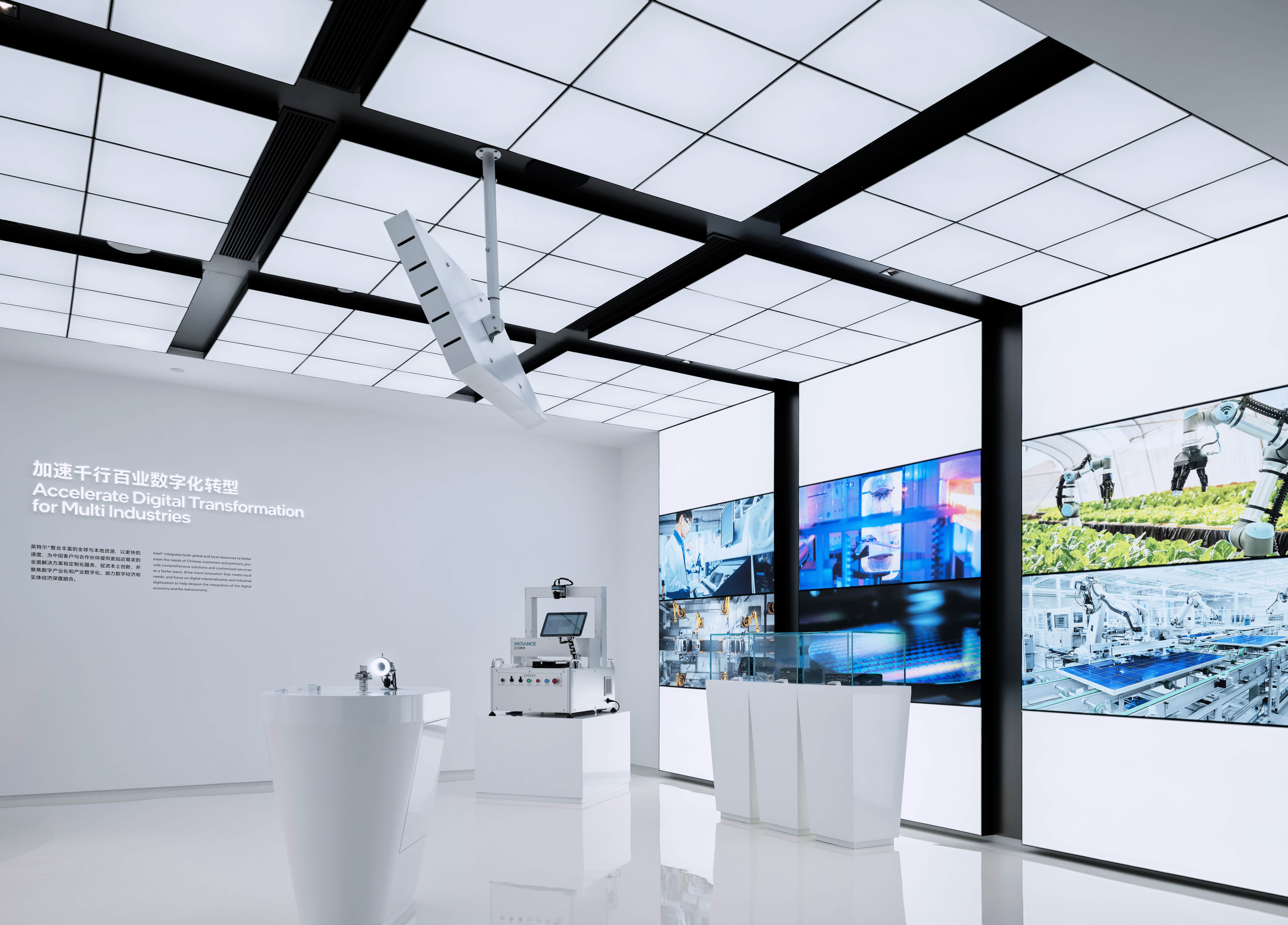 “英特尔全球科技体验中心”致力于向政府、企业与公众展示前沿科技的魅力,并开拓数字应用与人工智能创新的新视野。该设计将科技与艺术相融合,把复杂的科学技术原理转化为可视化与体验化形式,既集中呈现英特尔的前沿成果,又探索了技术赋能的多元应用场景,为观众带来多感官沉浸体验,深刻诠释品牌理念并展望科技发展的广阔前景。该作品由周艳阳、吴琼老师主持设计,带领展示设计团队(张恒、朱奕安、余佩霜等)及交互媒体设计团队(于汉杰、侯振龙、肖岚茜等)完成;实施单位为清华清尚智慧场景创新设计研究院。