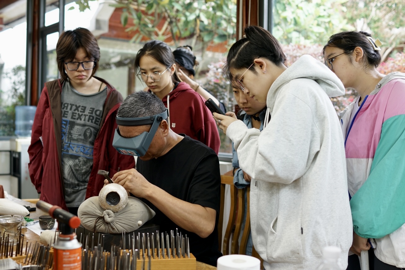 这样的思考和实践贯穿清华美院的整个实践过程。云南省鹤庆县是银器金属工艺的繁盛地,工艺美术系师生多年持续在此开展实践,完善“专业服务地方、地方反哺教学”的良性循环机制,形成诸多“校地共赢”的成果。今年暑期,学生不仅发挥专业优势参与银器设计创新,还针对当地文旅发展需求,承担城市形象设计、文旅产品开发等任务,其成果得到当地政府高度认可。