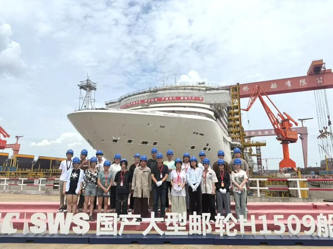 清华美院工业设计系学生顶着酷暑驱车百余公里,赴上海外高桥造船有限公司现场参观实践,并登上在建的国产大邮轮“爱达·花城号”。过程中,同学们深刻感受到大国重器背后的国家战略与中国制造力量,返程后围绕海洋战略、产业升级等主题开展研讨,撰写心得体会,实现“看、思、悟、行”的闭环。