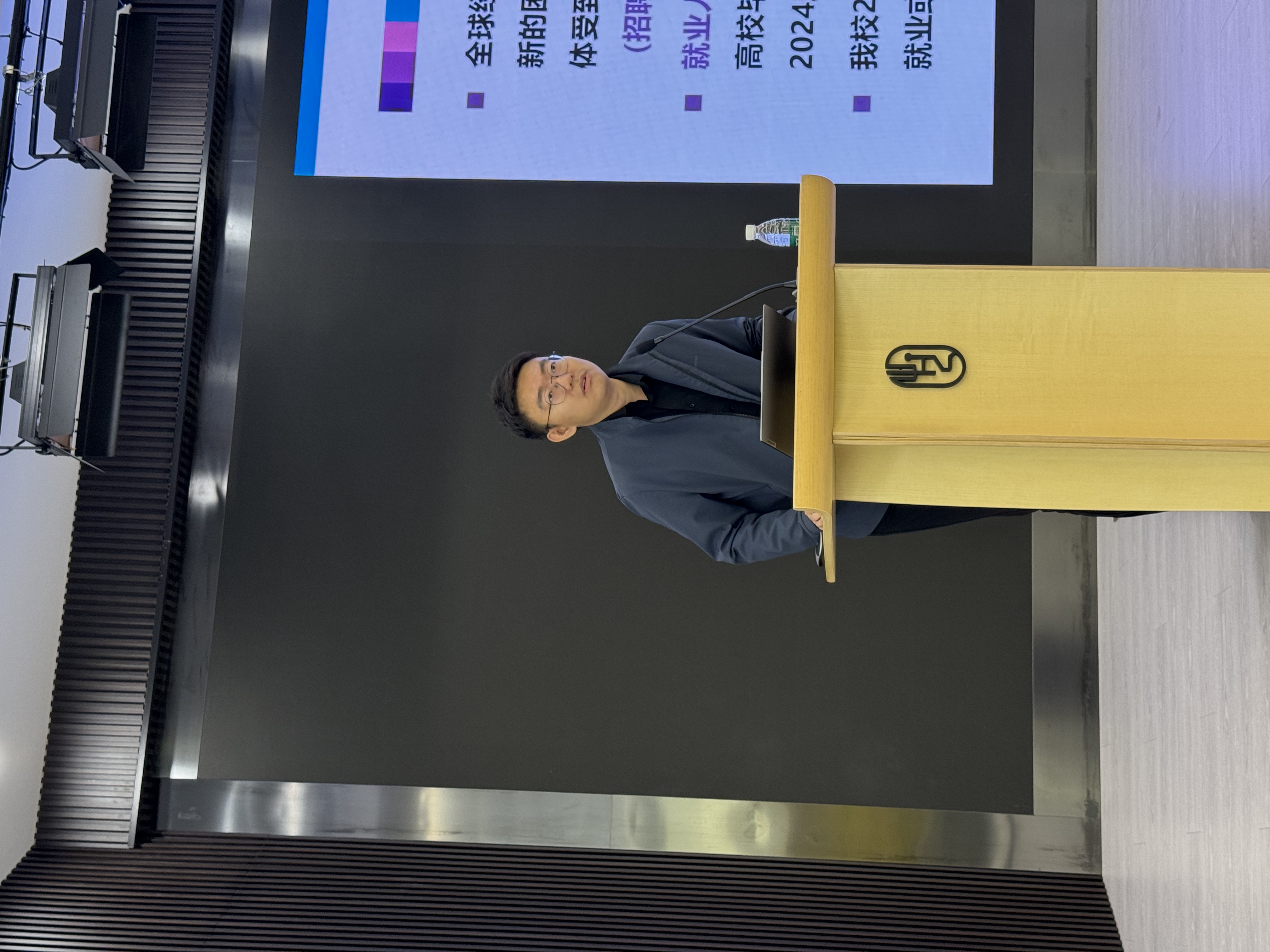 丁荭老师做开场动员讲话,她结合当前就业形势与自身经验,鼓励毕业生拓宽思路、积极准备。并指出,毕业生应充分把握国家和学校的就业政策与平台资源,既要树立信心,也要保持忧患意识,在复杂就业环境中找准自身定位,实现个人发展与时代需求的有机结合。