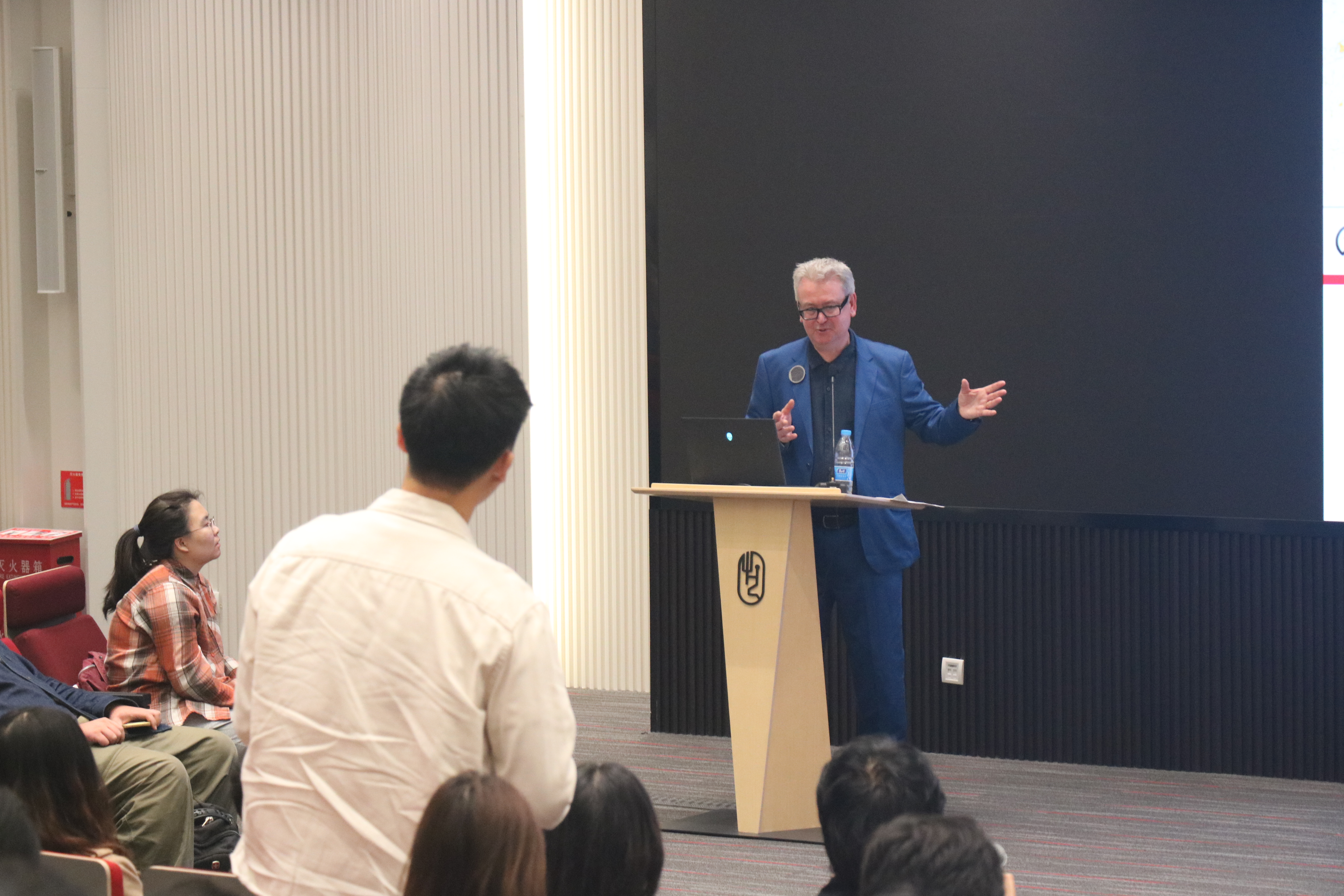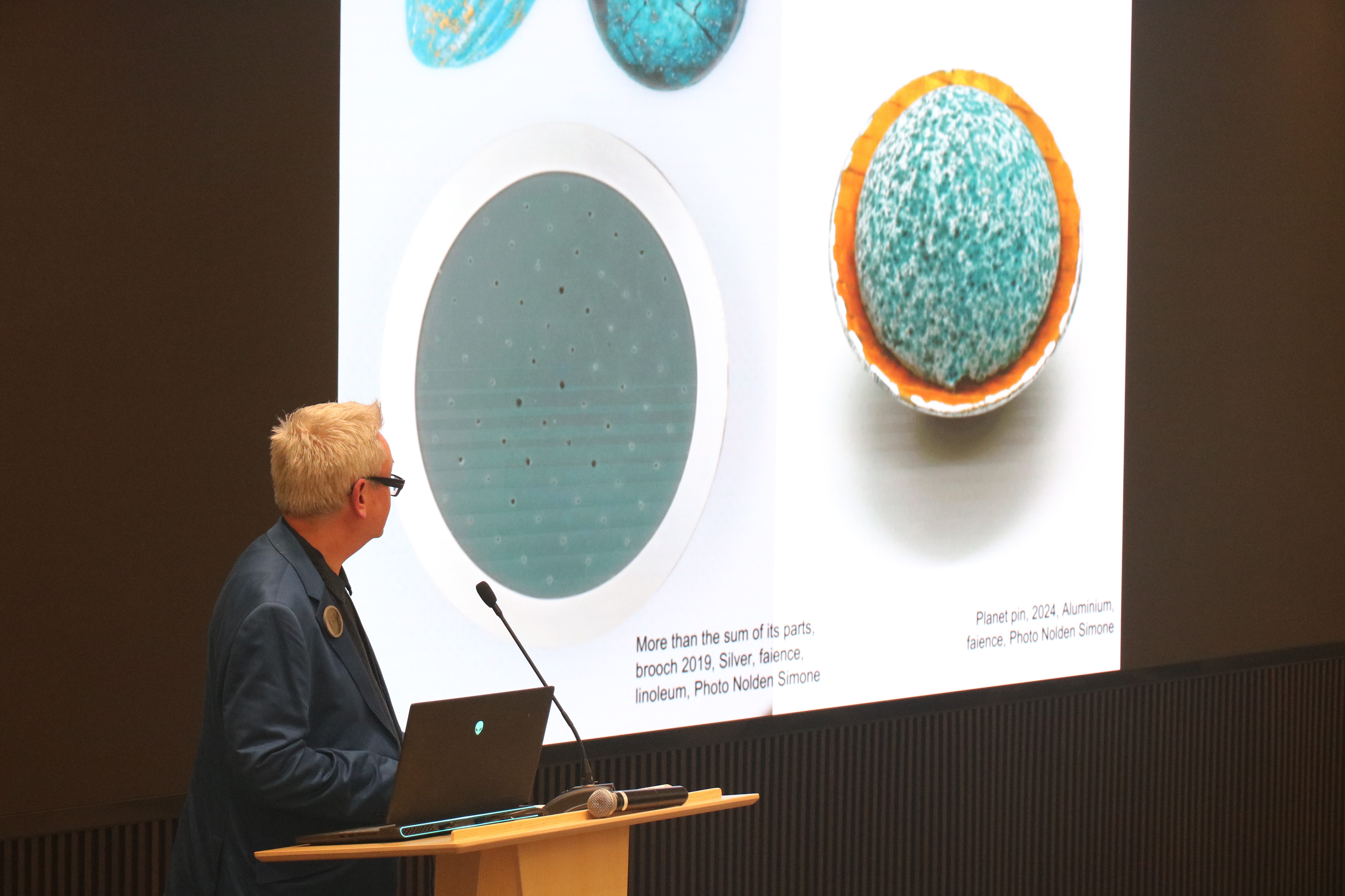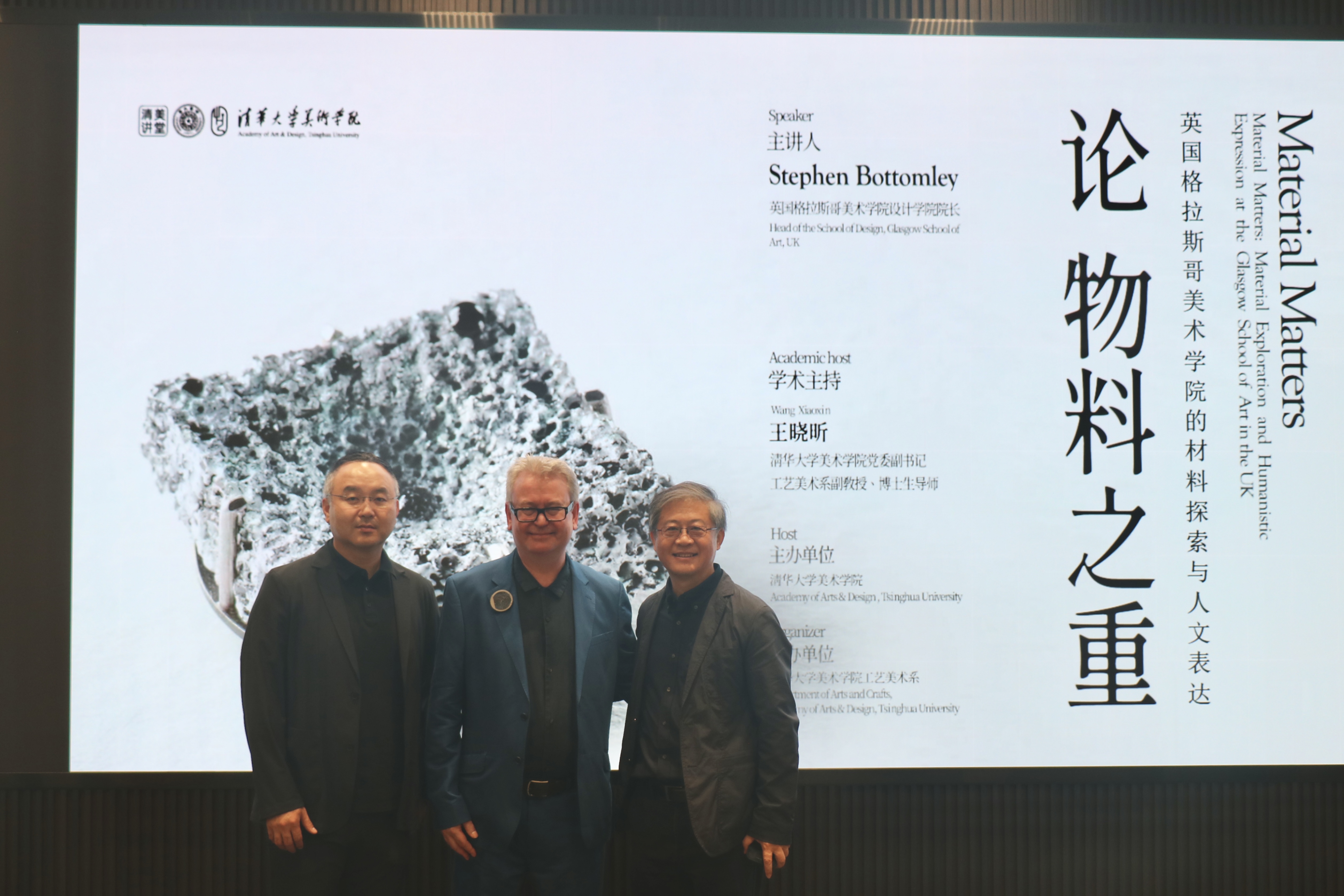 10月14日晚,清华大学美术学院C528座无虚席。英国格拉斯哥美术学院设计学院院长Stephen Bottomley带来了一场以“论物料之重——英国格拉斯哥美术学院的材料探索与人文表达”为主题的学术演讲。他系统介绍了格拉斯哥美术学院的历史沿革、学科架构,重点阐述了银器与珠宝系的教学团队构成与研究方向。同时,Stephen Bottomley教授结合自身创作实践,探讨了材料科学的演进对珠宝设计及工艺创新的深刻影响,展示了其在非传统材质方面的创新实验,强调跨学科合作与材料跨界融合在拓展工艺边界中的核心价值。