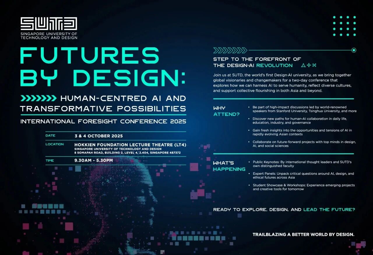2025年10月3日至4日,由新加坡科技设计大学主办的国际前瞻设计大会——“设计未来:以人为本的人工智能与变革性(Futures by Design: Human-Centred AI and Transformative Possibilities)”在新加坡举行。清华美院杨冬江教授、付志勇副教授受邀带队参与了本次会议。