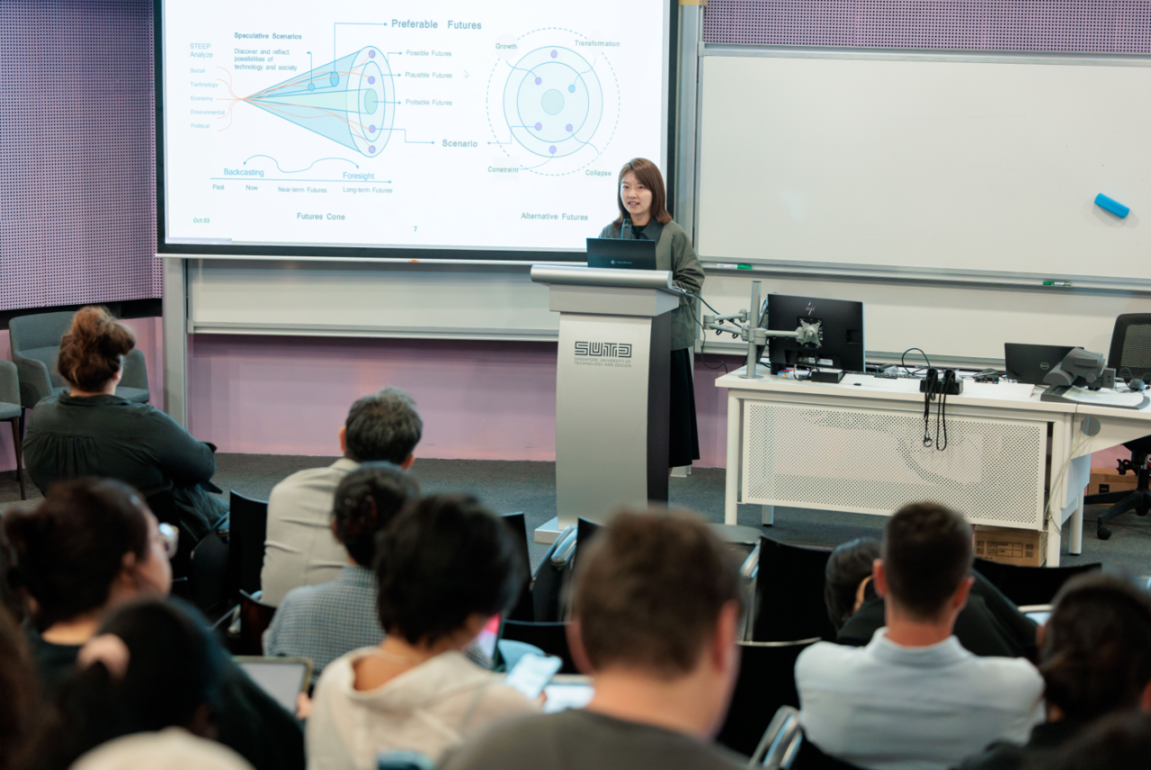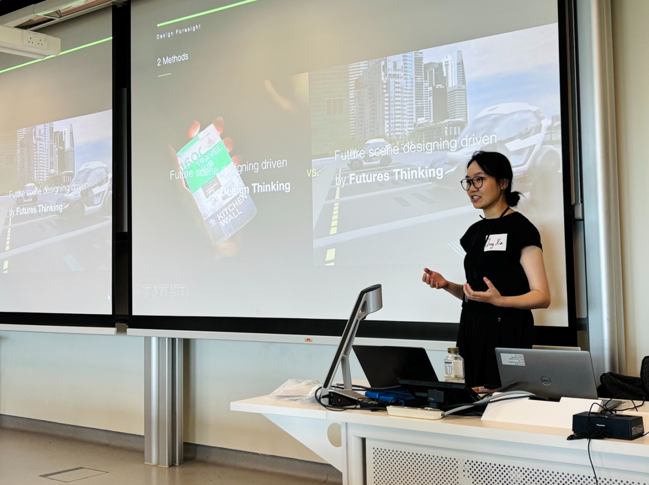 10月4日,清华美院信息艺术设计系副教授付志勇与清华美院校友、鲁迅美术学院讲师夏晴共同主持“以AI赋能社区转型的未来设计工作坊”。工作坊聚焦人工智能在社区更新与社会创新中的作用,吸引了来自新加坡科技设计大学及周边高校的40余位师生参与。夏晴在开场报告中系统比较了“设计思维”与“未来思维”的差异,指出前者以“问题与用户”为中心,注重短期解决与结果导向,而后者以“愿景与人”为核心,强调长期反思、共创与价值塑造。她进一步提出,通过融合两种思维框架并引入生成式AI工具,可构建具备推演、共创与叙事能力的社区设计体系,为未来导向的社会创新提供方法论支持与实验性范式。