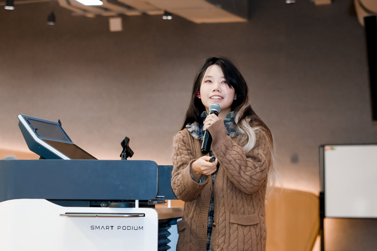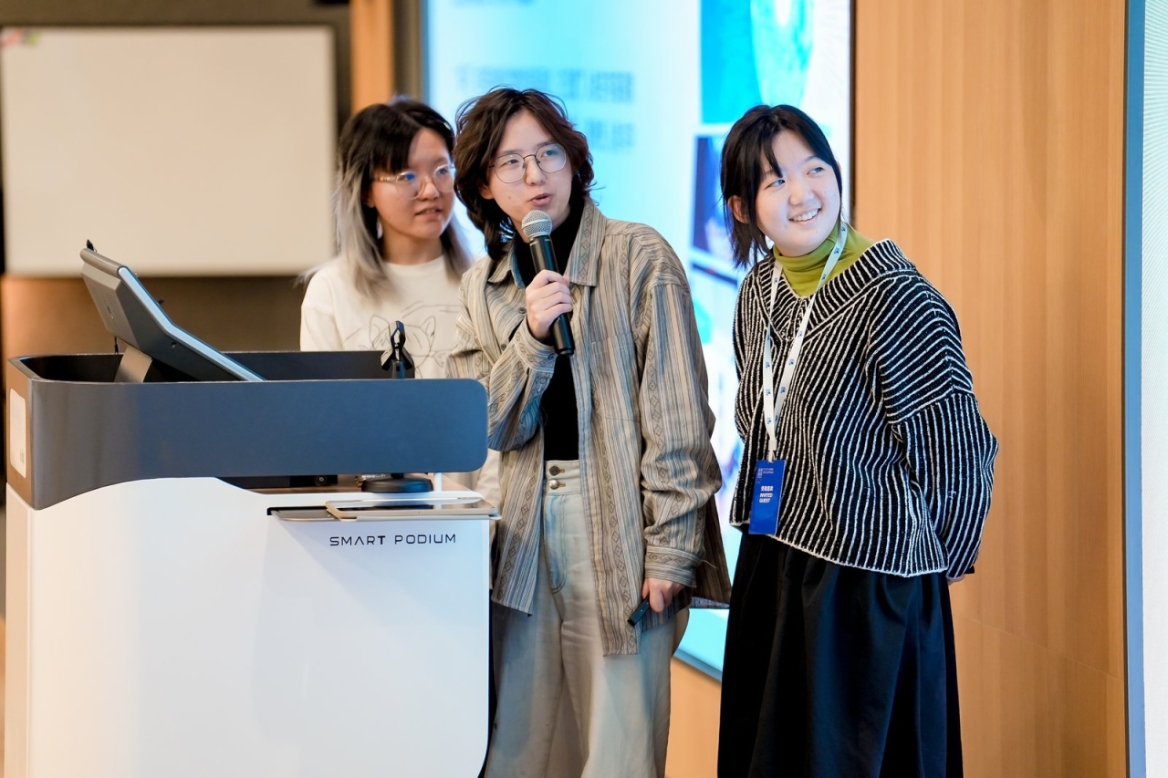 《听石》团队成员丁山珊、蒋雨涵、张馨心在现场做分享