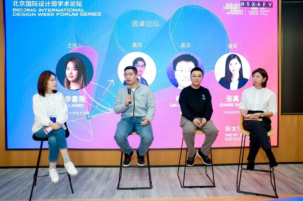主题演讲结束后,由清华大学美术学院博士生李嘉薇博士主持圆桌论坛,论坛以“AI驱动的设计未来:从空间到产业的共创与链接“为题,通过圆桌交流,探讨AI如何真正融入设计实践、连接产业上下游,并赋能未来的新型设计生态,将科幻设想与科研平台结合实现突破。