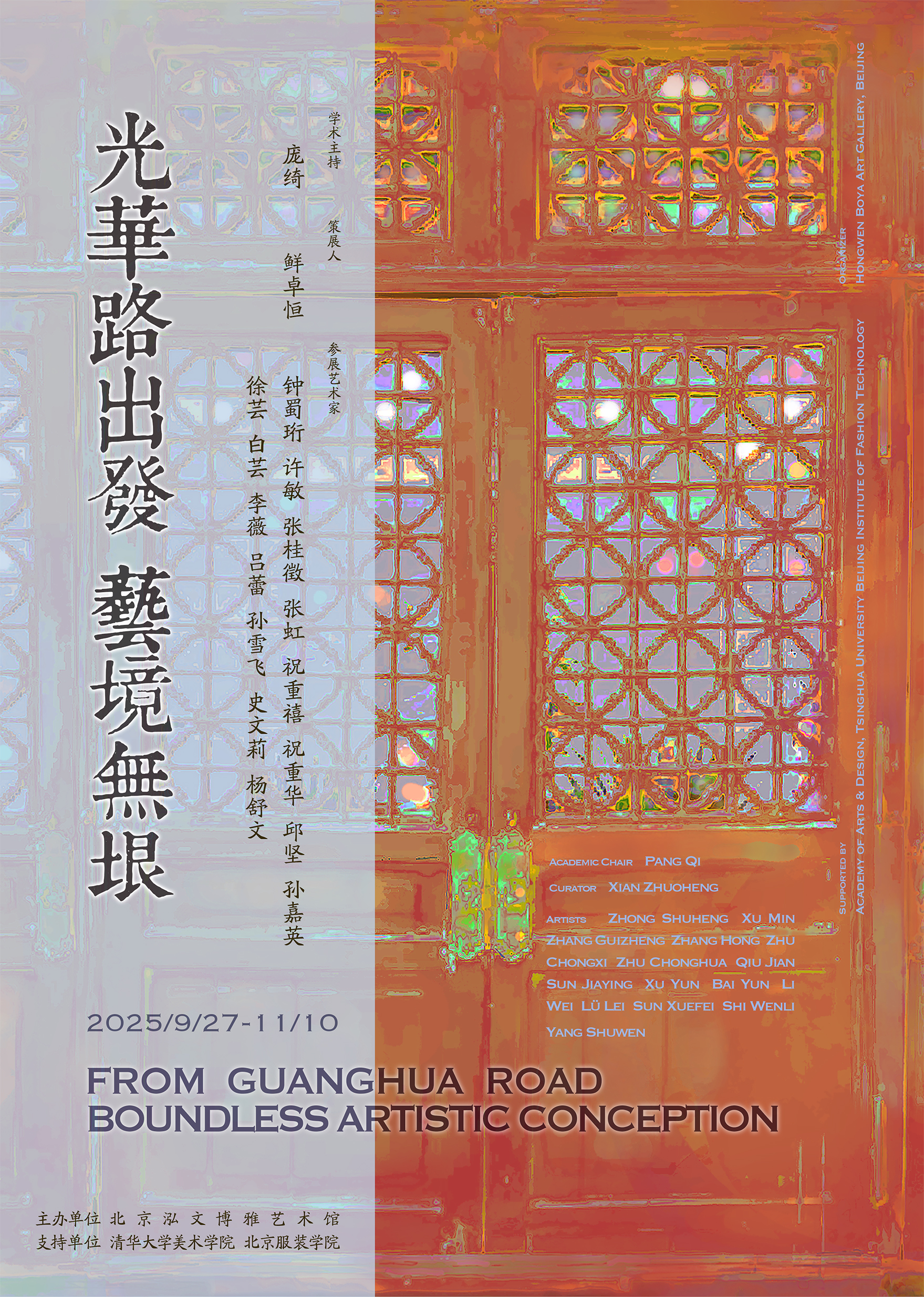 《光华路出发 艺境无垠》艺术作品展于2025年9月27日开展。展览由北京泓文博雅艺术馆主办,清华大学美术学院与北京服装学院支持。