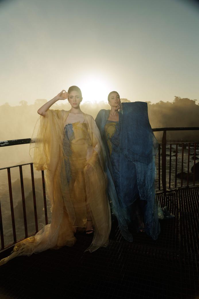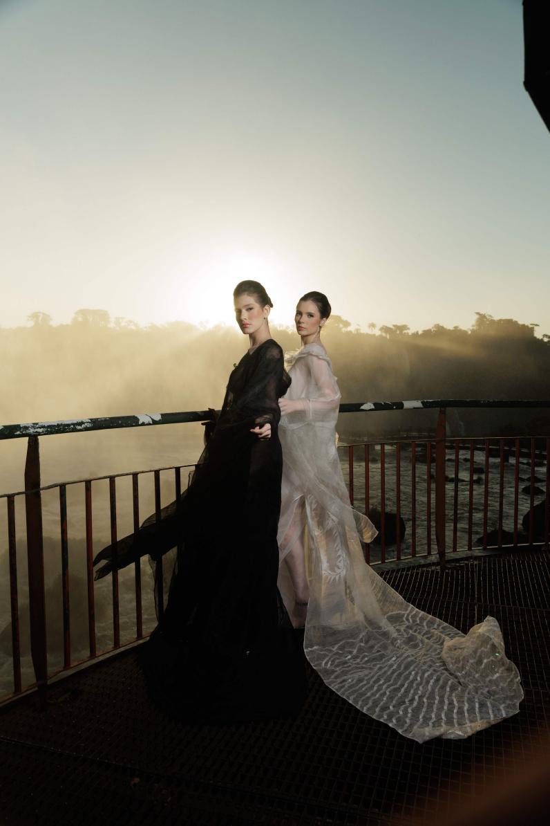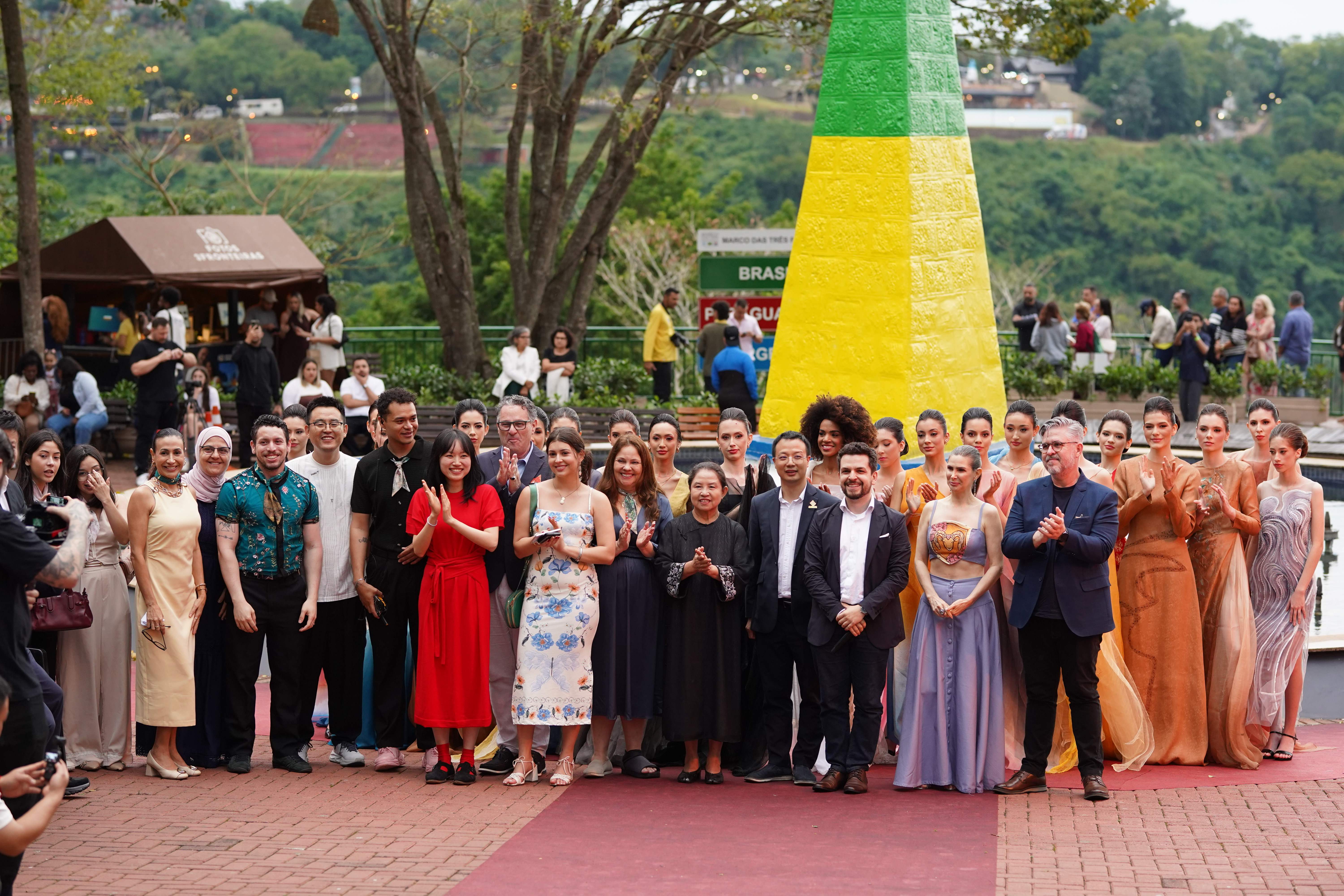 李薇教授在伊瓜苏市三国交界碑这一承载特殊地理与文化意义的地标发布时装秀,这是当地首次迎来的国际时装秀,具有历史性的意义。承载东方美学的服饰作品深深触动了在场每一位观众,不少观众热泪盈眶,这泪水既是对这场开创性文化交流的由衷赞许,更是对中巴两国深厚友谊与美好共鸣的真挚流露。