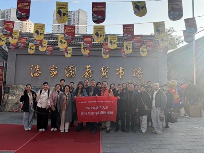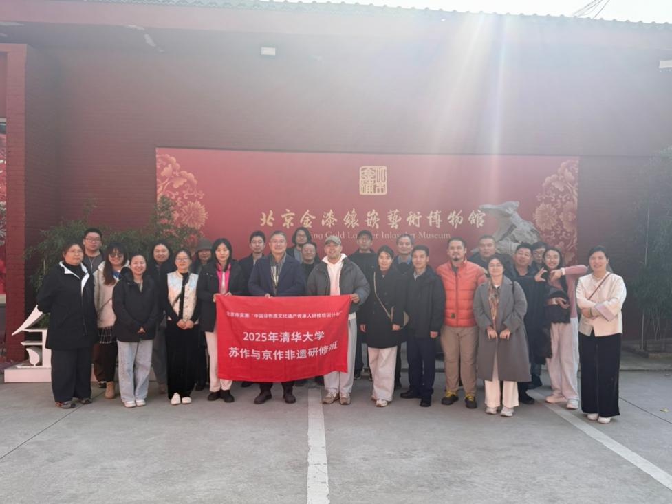 2025年10月31日,清华大学苏作与京作非遗研修班全体学员,在陈岸瑛教授、班主任陈媛媛及教辅团队带领下,在京开展学员回访和现场教学活动。在北京学员的热情接待中,师生们先后走访了一得阁、北京工美集团白孔雀艺术世界(工艺品厂)、北京金漆镶嵌艺术博物馆及潘家园旧货市场,通过实地考察与座谈交流,深入探寻京作非遗的传承与创新之路。