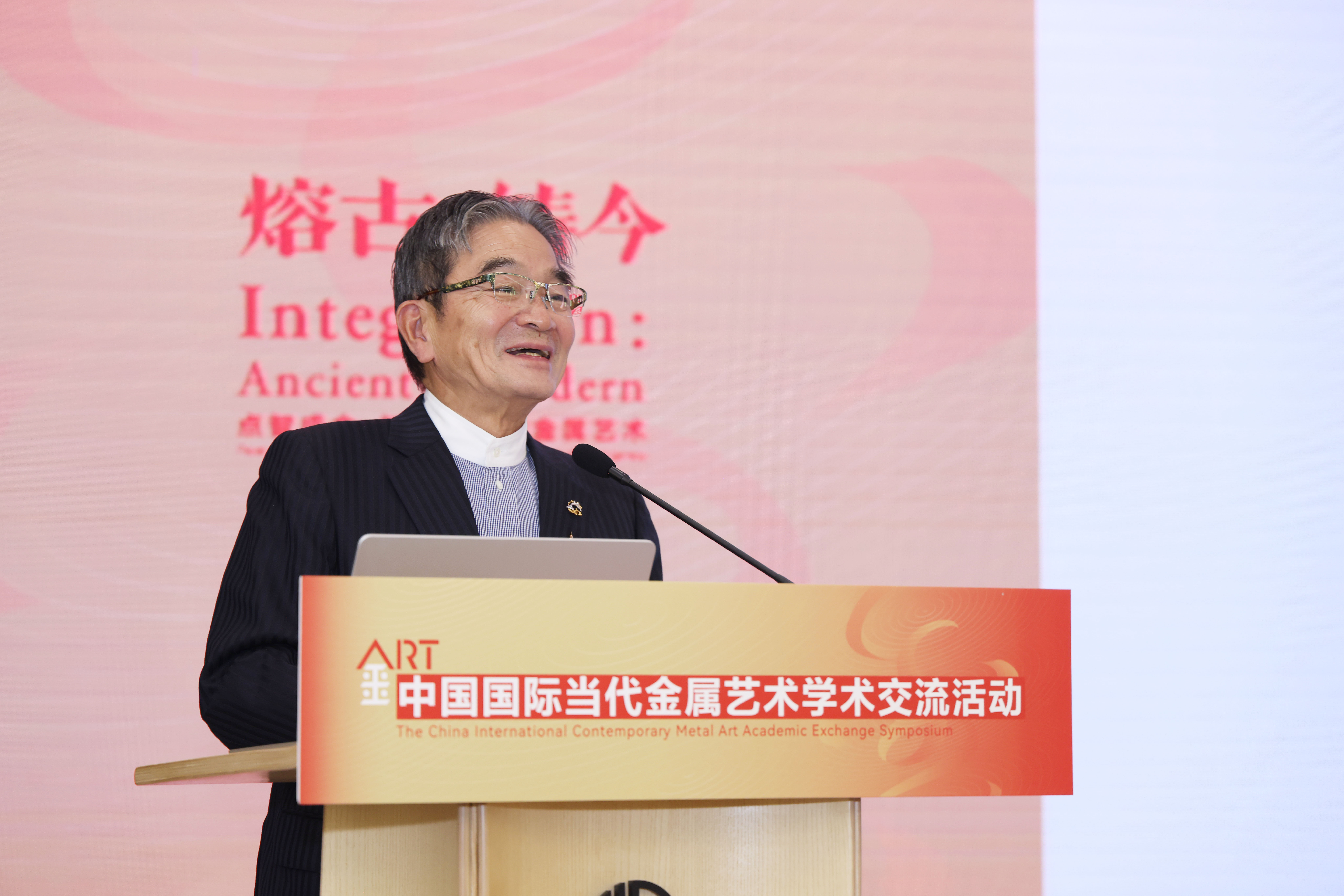 东京艺术大学名誉教授、日本文部科学省文化厅原长官宫田亮平以“来自大海的恩惠”为题,回顾了自己六十年来以海洋为母题的艺术创作历程。他指出,艺术创作是一个不断变化与探索的过程,从早期较为抽象的艺术形态到后来的具象海豚系列,宫田亮平阐释了艺术如何从自然与传说中汲取灵感,并与观众的情感产生共鸣。他鼓励年轻艺术家勇于尝试、不惧失败,在创作中融入真实情感与社会关怀,使金属艺术成为人心与文化的桥梁。