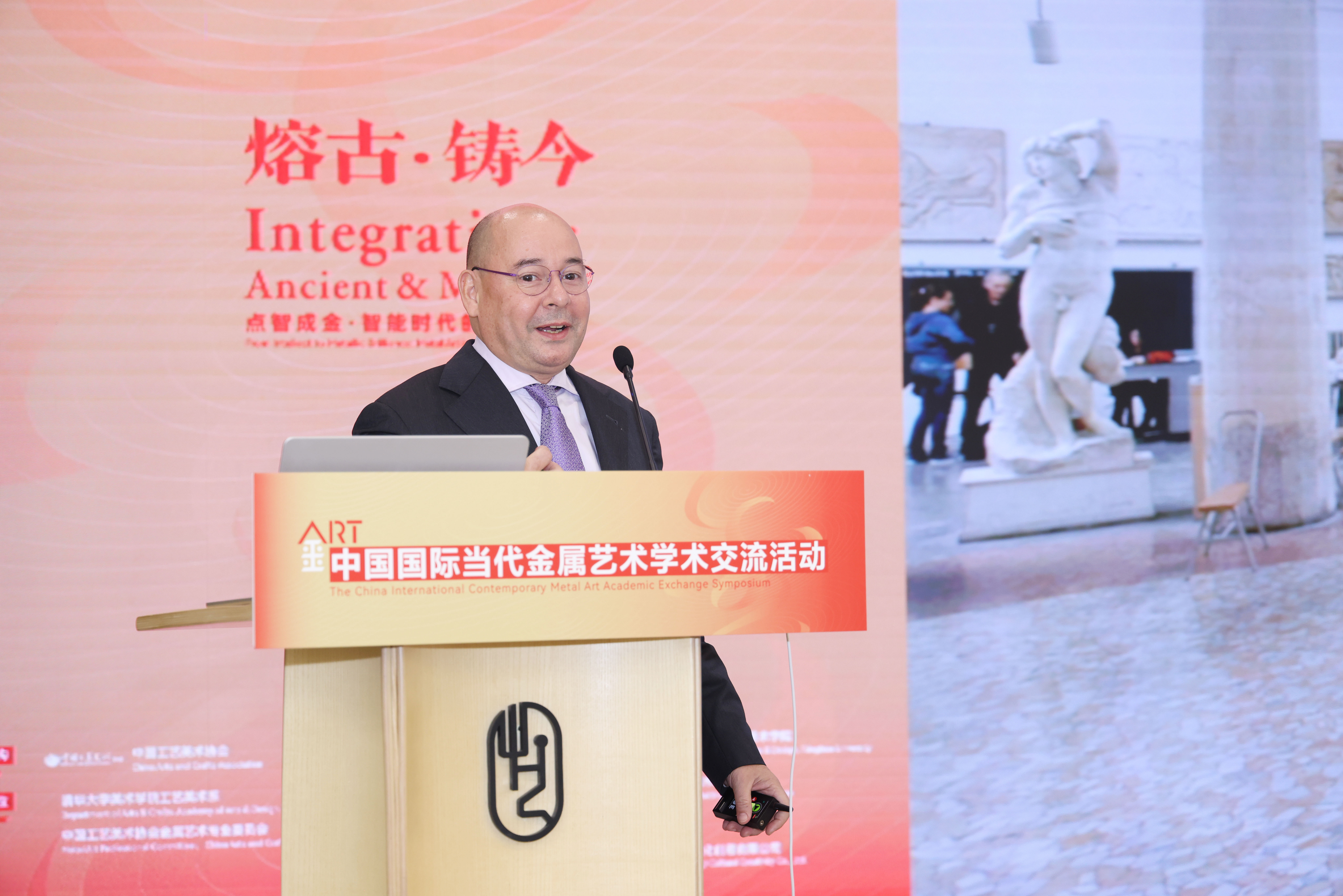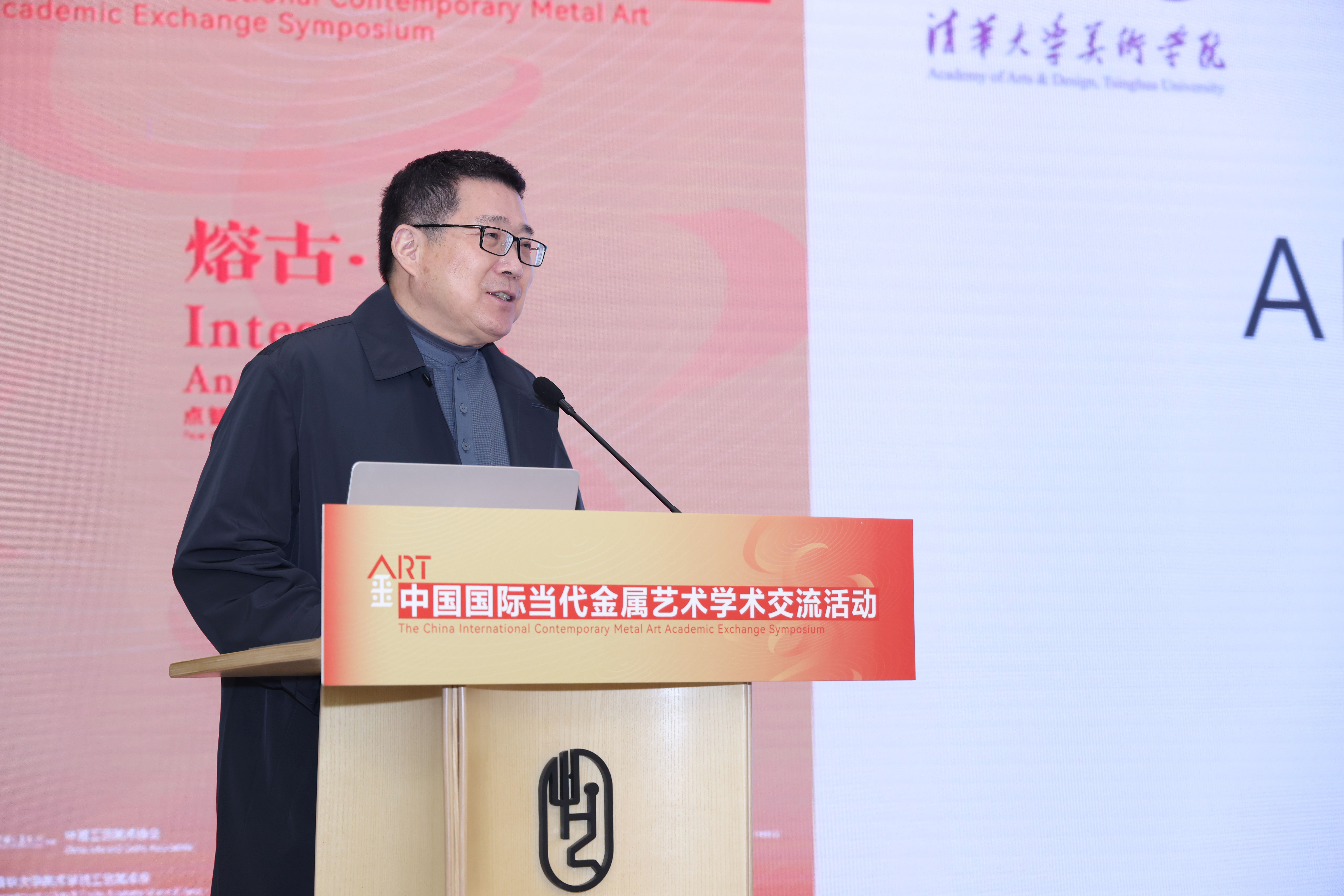 清华大学美术学院院长、活动总策划吴琼在致辞中阐释了“熔古·铸今”与“点智成金·智能时代”这两个活动关键词的含义。“熔古·铸今”对应着金属艺术本体的工艺逻辑与文化哲学,更是文明演进与跨文化交流的象征;而“点智成金·智能时代”的活动主题则是对“植根博大精深的中华文明,顺应信息技术发展潮流”的深刻回应。期待以本次活动为契机,进一步推动学院在金属艺术教育、跨文化研究与国际合作方面的深化发展,汇聚更多力量,共同描绘金属艺术发展的新图景。