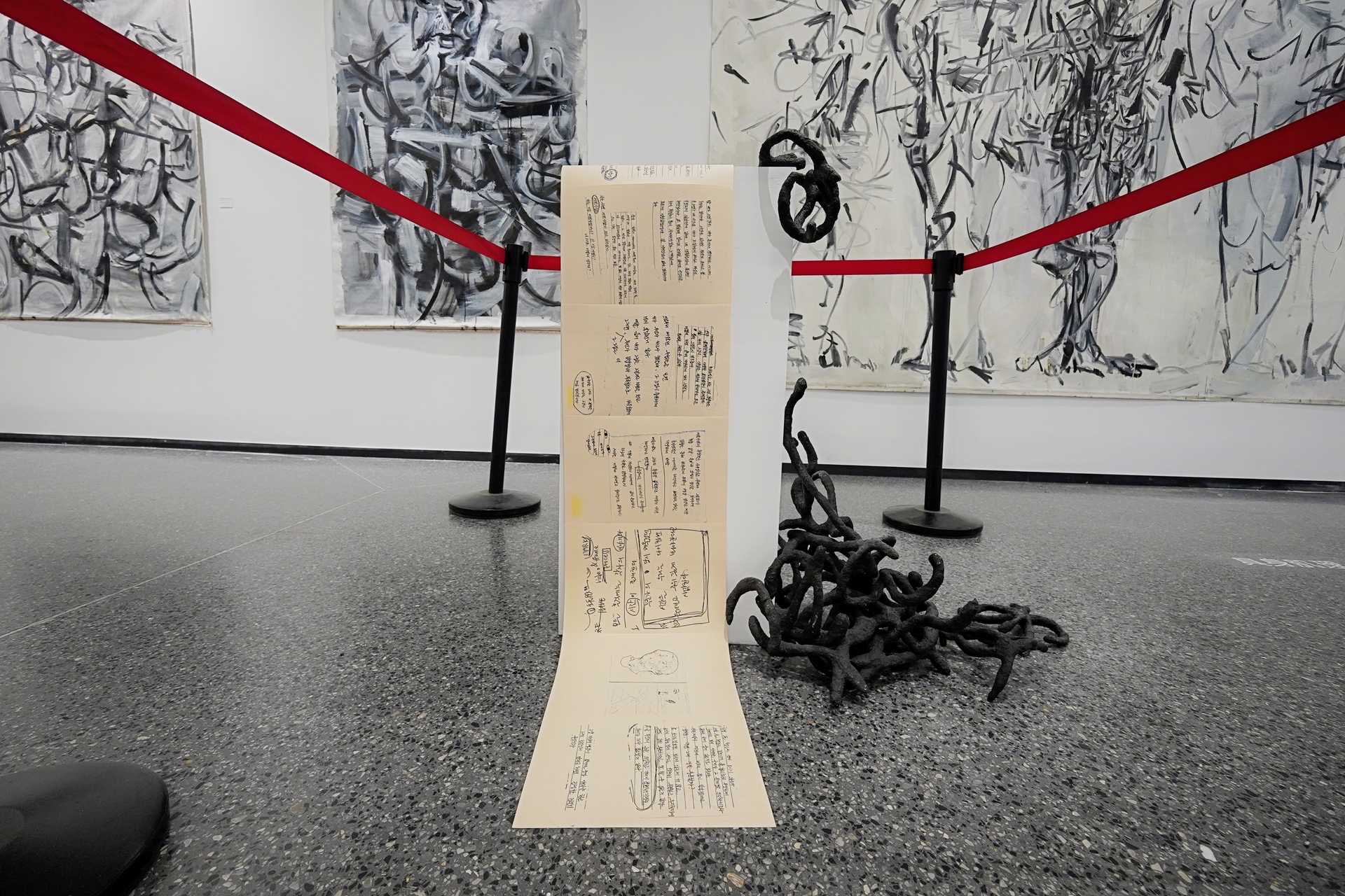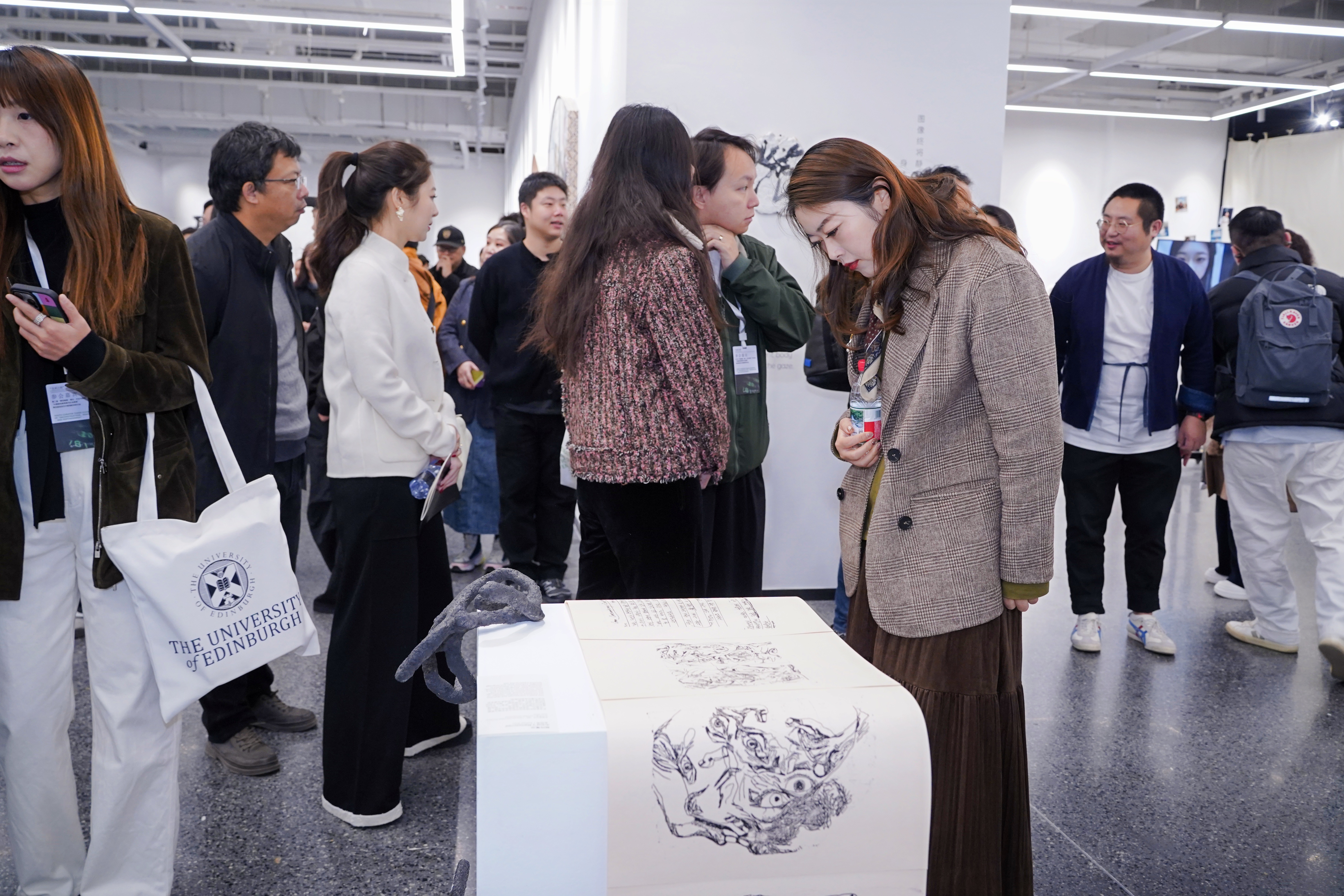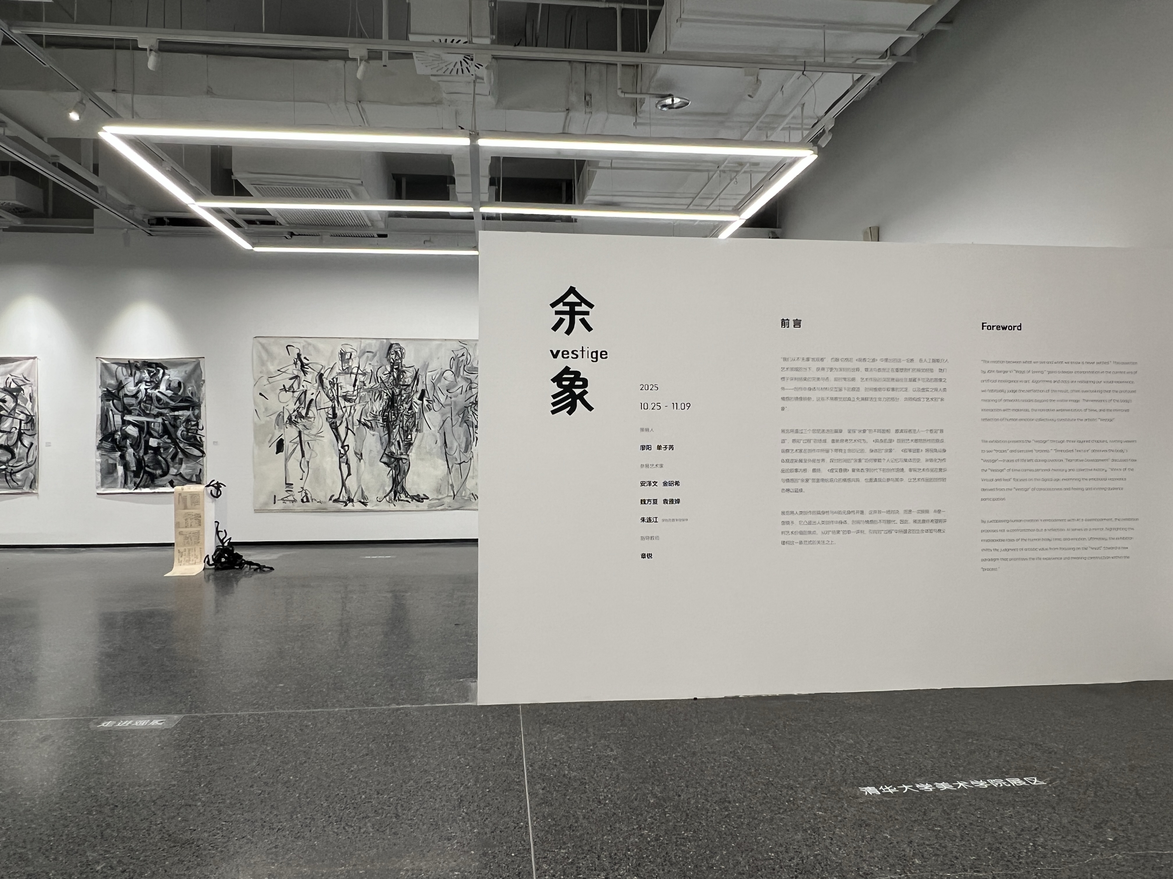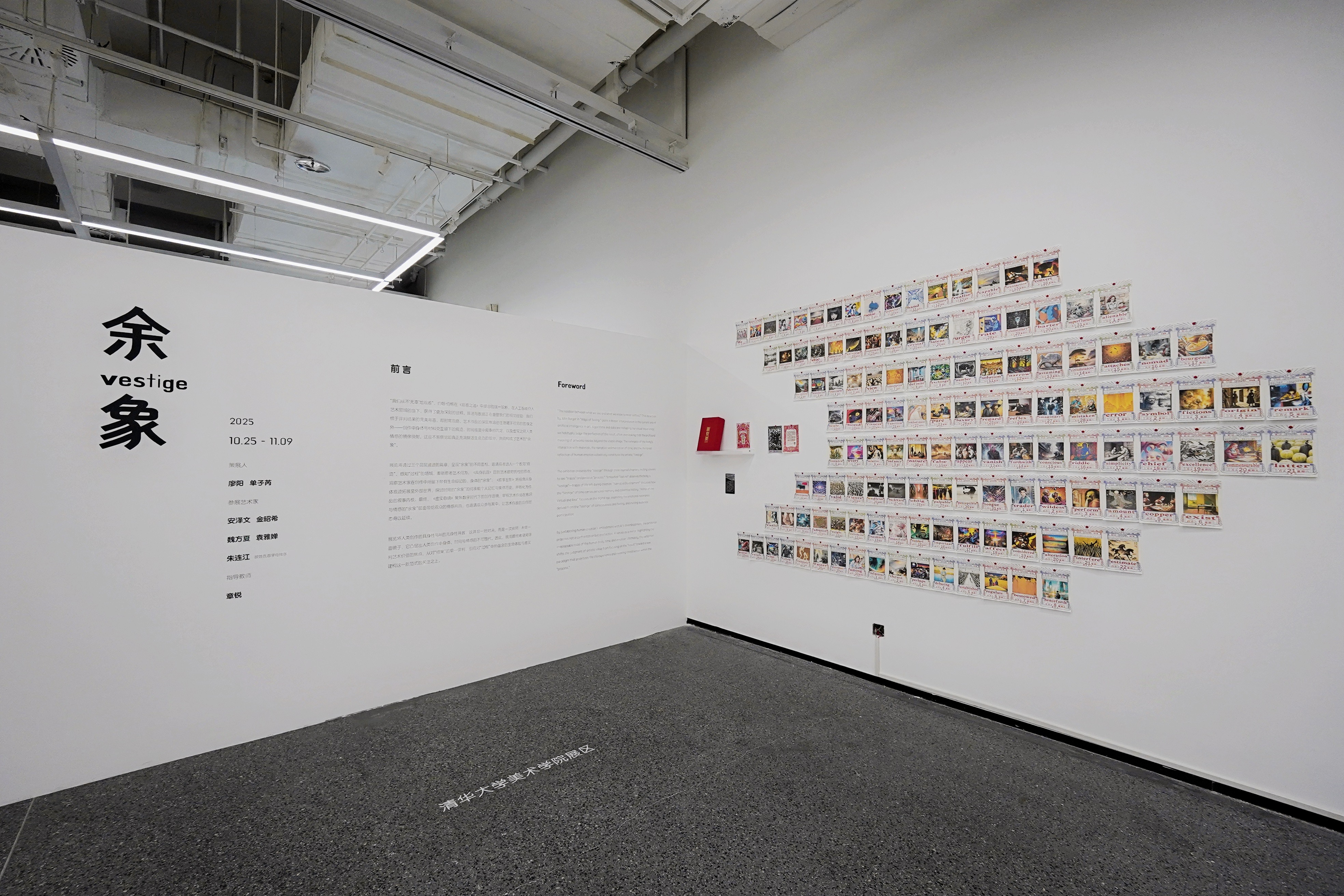 清华大学美术学院展区以“过程的在场:‘余象’(Vestige)的生成”为题,由艺术管理专业研究生廖阳、单子芮策划,展出艺术家金昭希(Sohee Kim)、安泽文、袁雅婵、朱连江、魏方夏的最新作品。策展理念关注于当算法与数据重塑视觉经验的当下,我们习惯以结果评判艺术的完美,却往往忽略那些在创作过程中被隐去的维度。策展团队将这些身体与材料的交互痕迹、时间中叙事的沉淀、虚实之间情感的映射,统称为“余象”——它们构成了艺术真正的生成现场。
