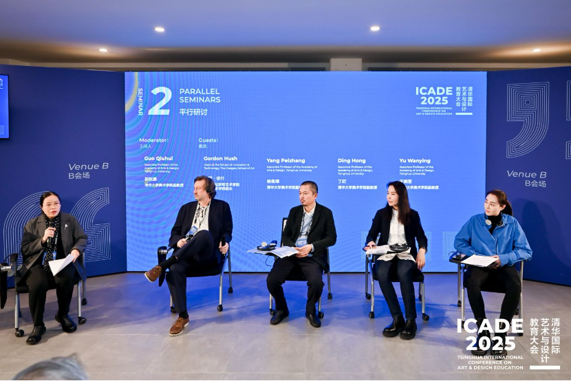 英国格拉斯哥艺术学院创新技术学院院长戈登·哈什(Gordon Hush)、清华大学美术学院副教授杨佩璋、清华大学美术学院副教授丁荭、清华大学美术学院副教授于婉莹参与研讨并发表观点,本场平行研讨由清华大学美术学院副教授郭秋惠主持。