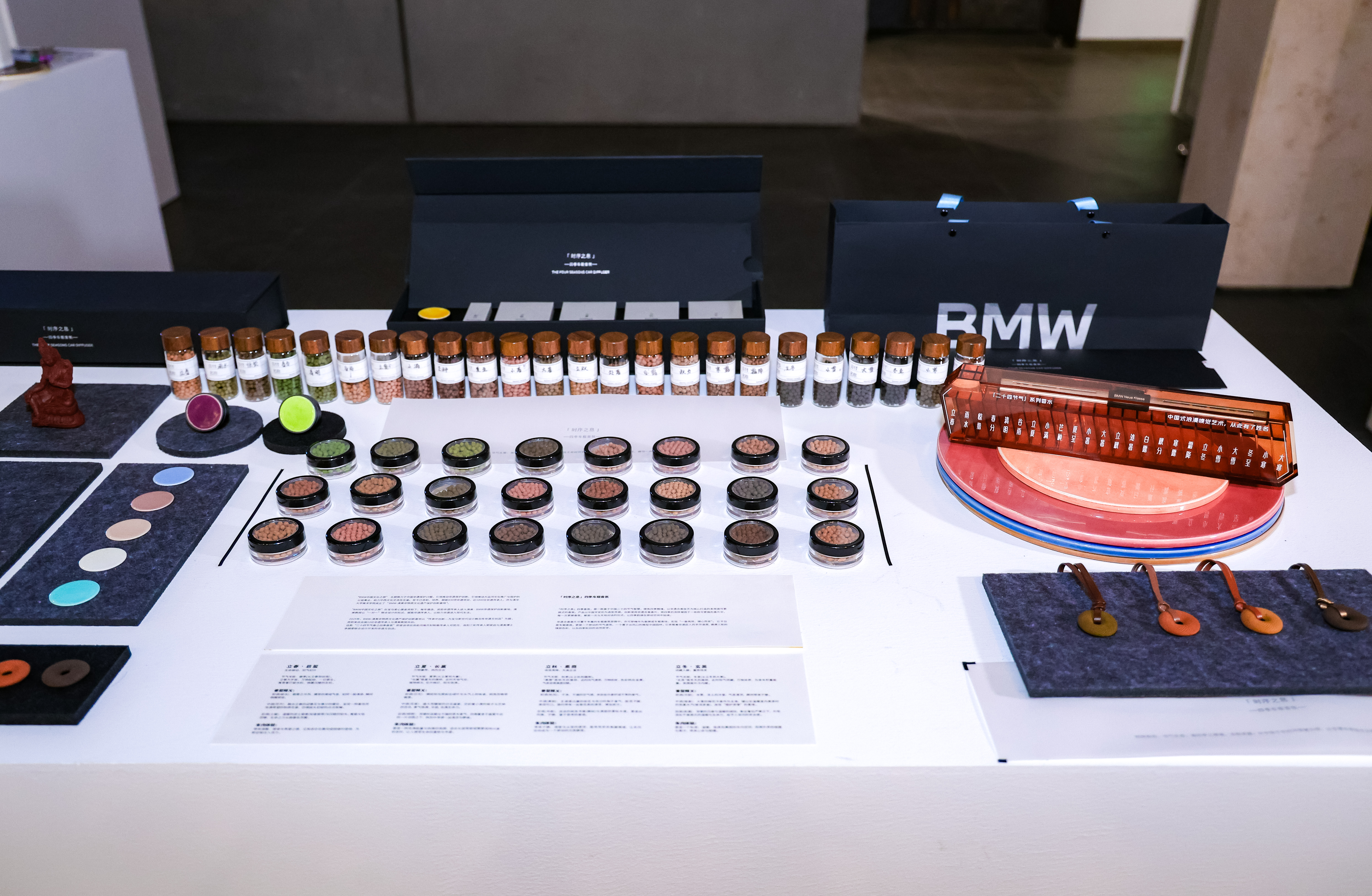 来自河南的太和香堂古法制香技艺非遗传承人,与清华美院设计团队受“二十四节气”主题车载显示启发,共同提炼四季代表性植物与花卉香气,每一款香氛的配方都源自传统合香技艺,而载体设计则适配车载空间,当用户切换香氛时,将车内空间演绎出春夏秋冬的自然流转,共同构建出“人、车、自然”真正同频的感官体验。