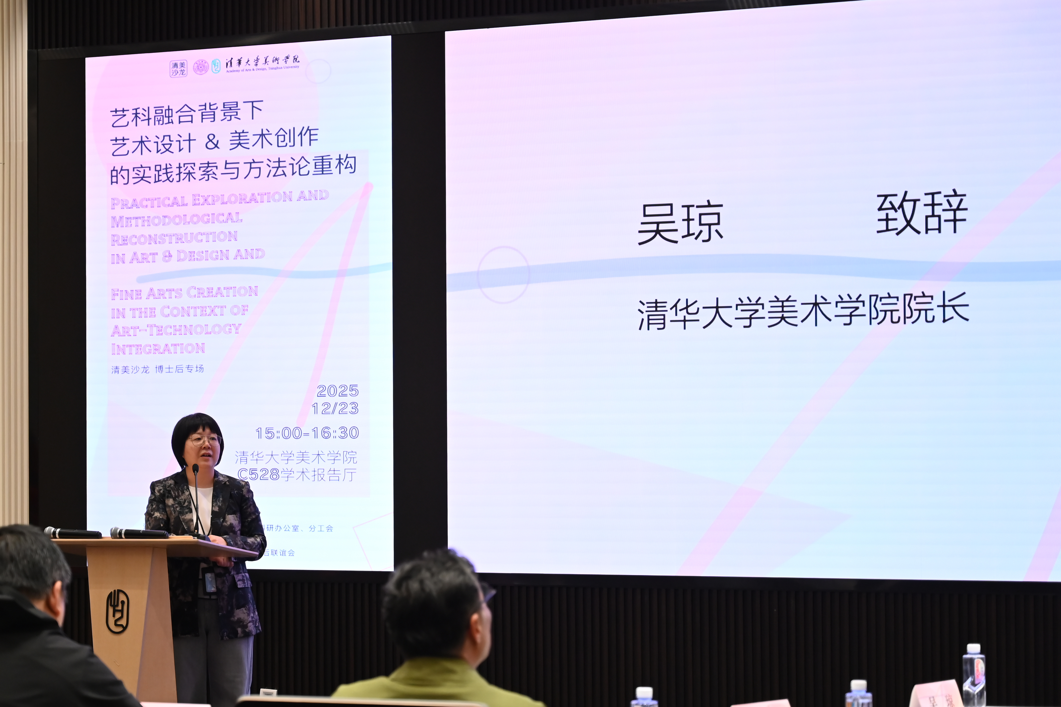 2025年12月23日,由清华大学美术学院党务办公室、科研办公室、分工会主办,清华大学美术学院博士后联谊会承办的博士后专场清美沙龙于清华大学美术学院C528学术报告厅举办。活动由清华大学美术学院党委副书记王晓昕主持。
