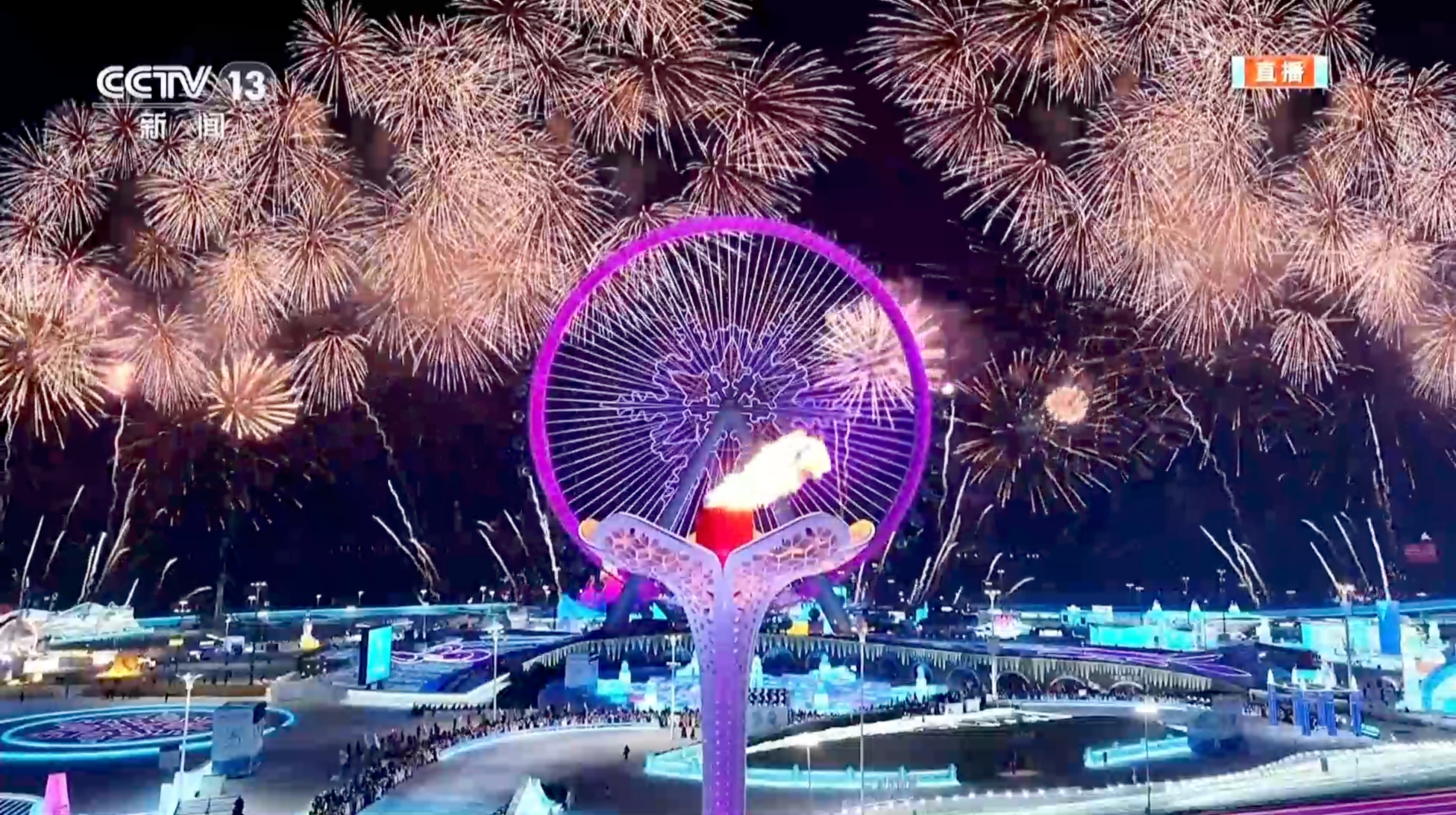 亚冬会开幕式现场主火炬塔(图片来源:CCTV)