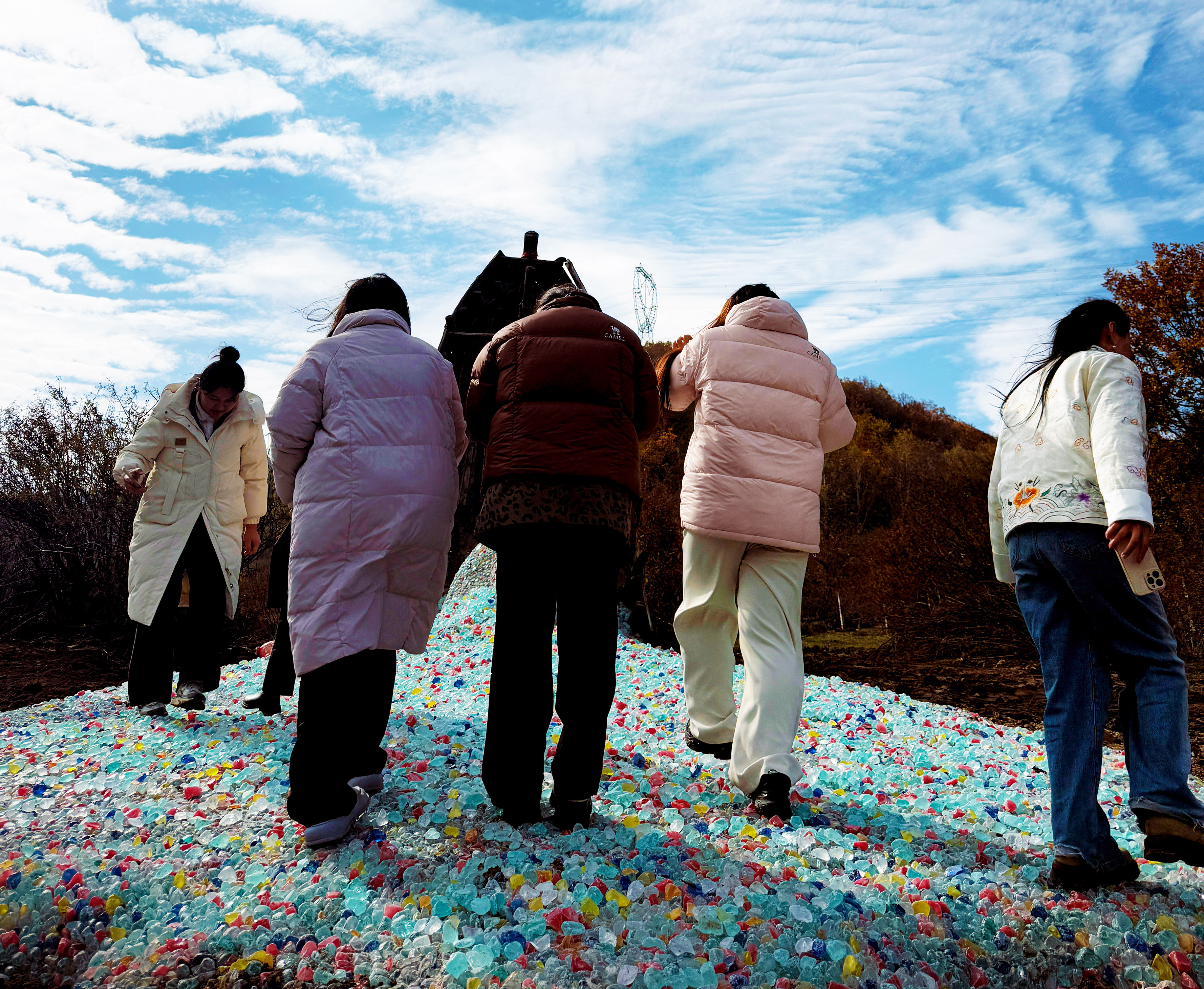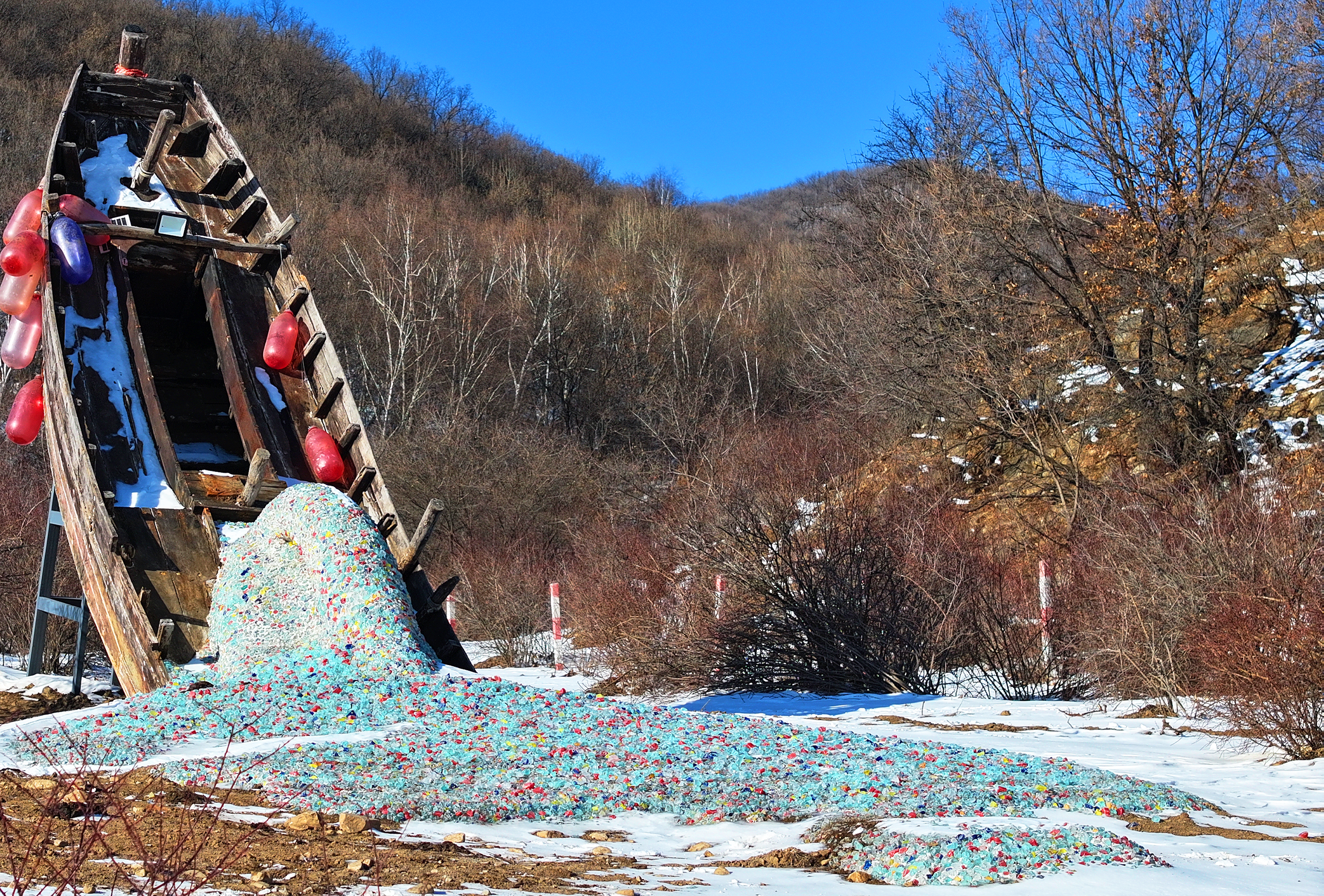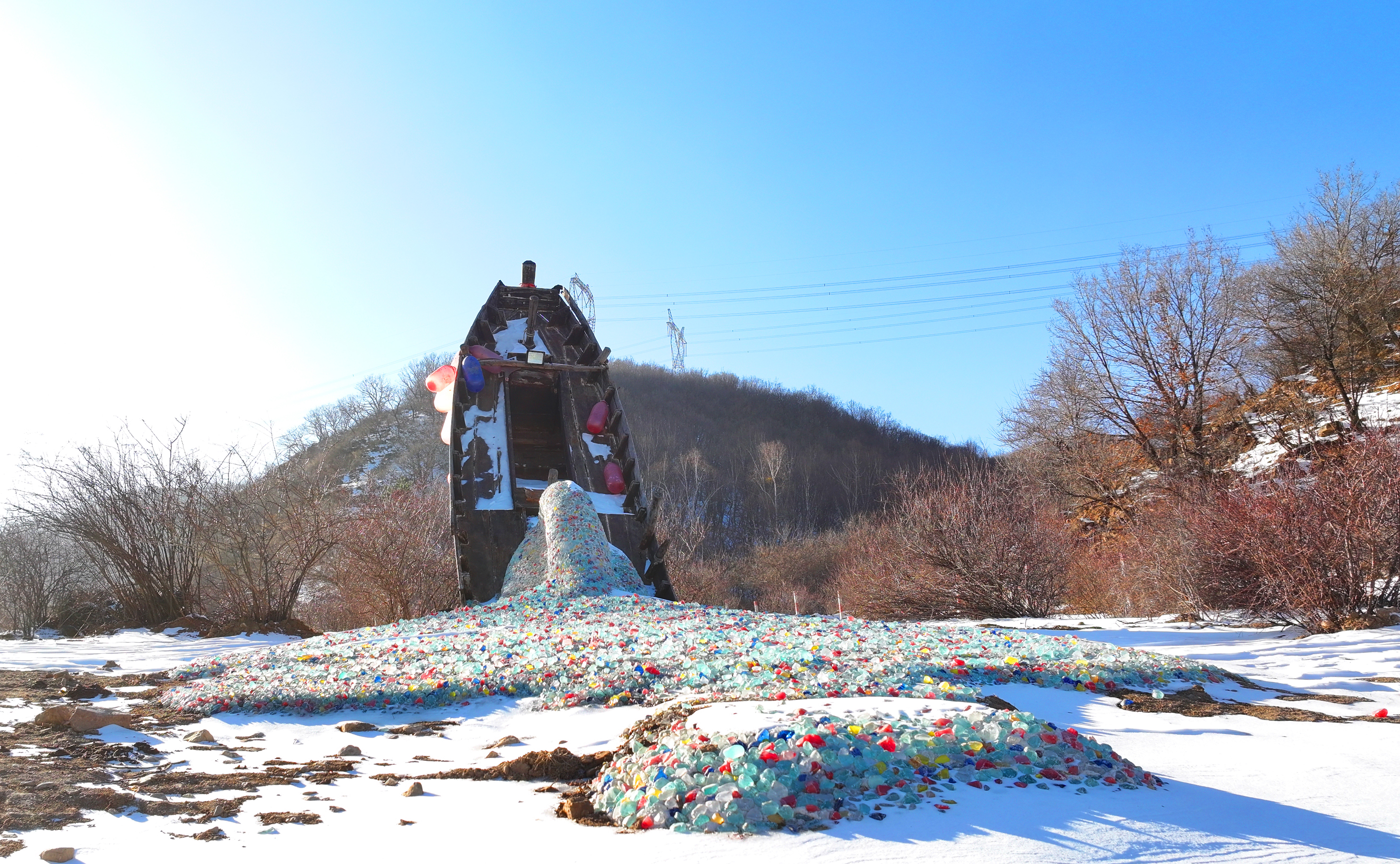 作品讲述的是一个关于“回归”与“新生”的故事。它通过废旧木船倾倒彩色石子的强大意象,寓意着人类文明的历程如同一场远航,而最终的圆满,是与自然达成和谐,将拼搏的痕迹转化为大地上新的风景。同时,每一颗石子就如来到弓阳的每一个人,如星星一般,聚石成形,石头从山来,到山去,依然是风景的一部分,过程与结果尽显人类痕迹与自然与人造物的融合。