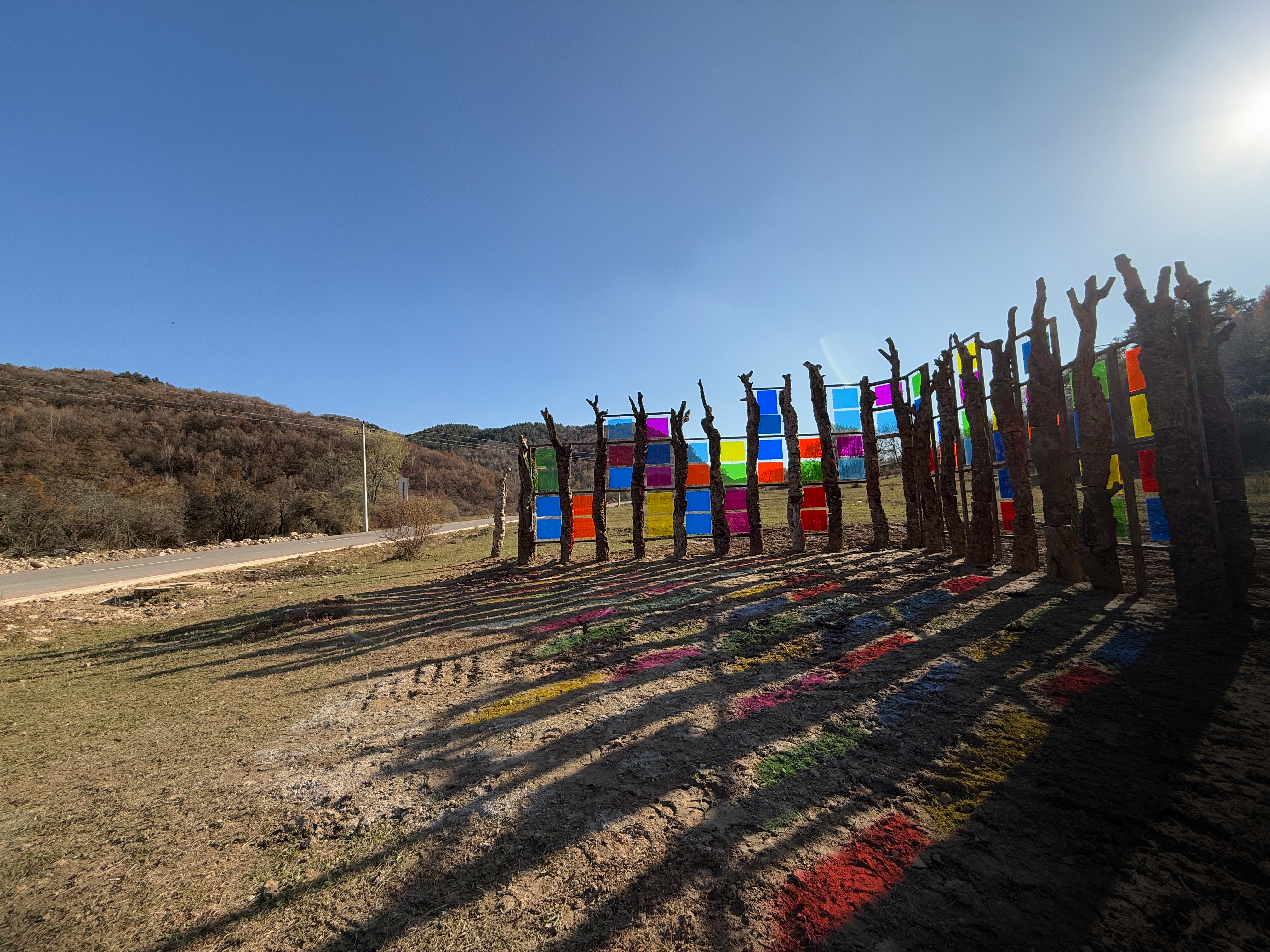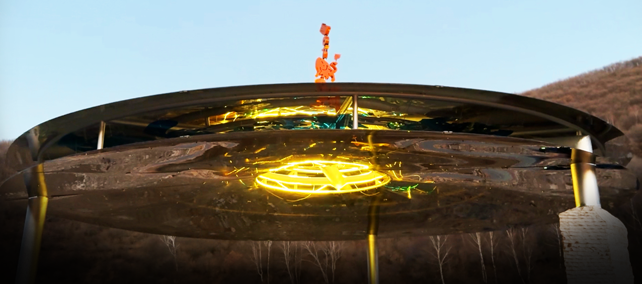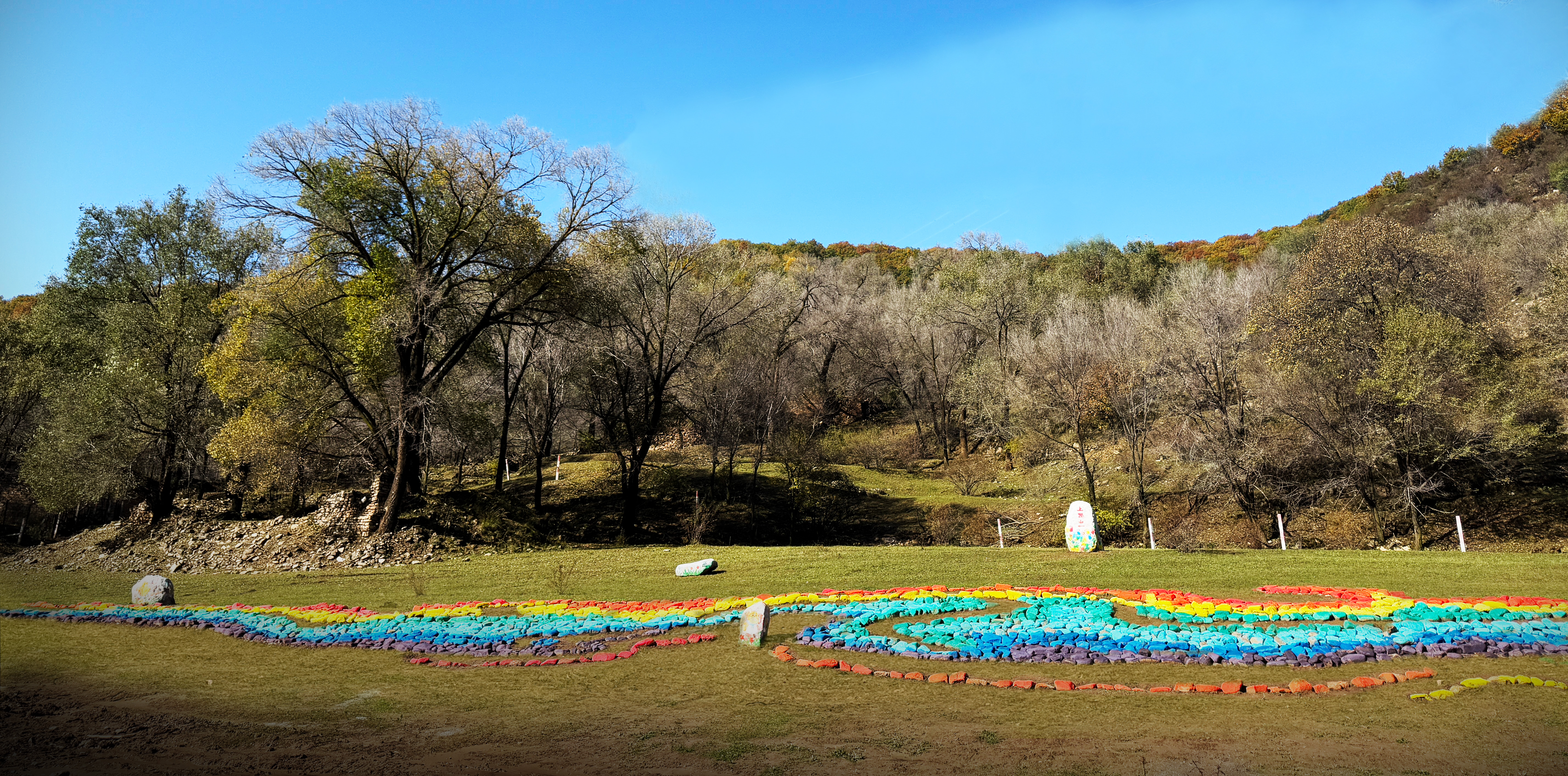 作品讲述的是一个关于“回归”与“新生”的故事。它通过废旧木船倾倒彩色石子的强大意象,寓意着人类文明的历程如同一场远航,而最终的圆满,是与自然达成和谐,将拼搏的痕迹转化为大地上新的风景。同时,每一颗石子就如来到弓阳的每一个人,如星星一般,聚石成形,石头从山来,到山去,依然是风景的一部分,过程与结果尽显人类痕迹与自然与人造物的融合。