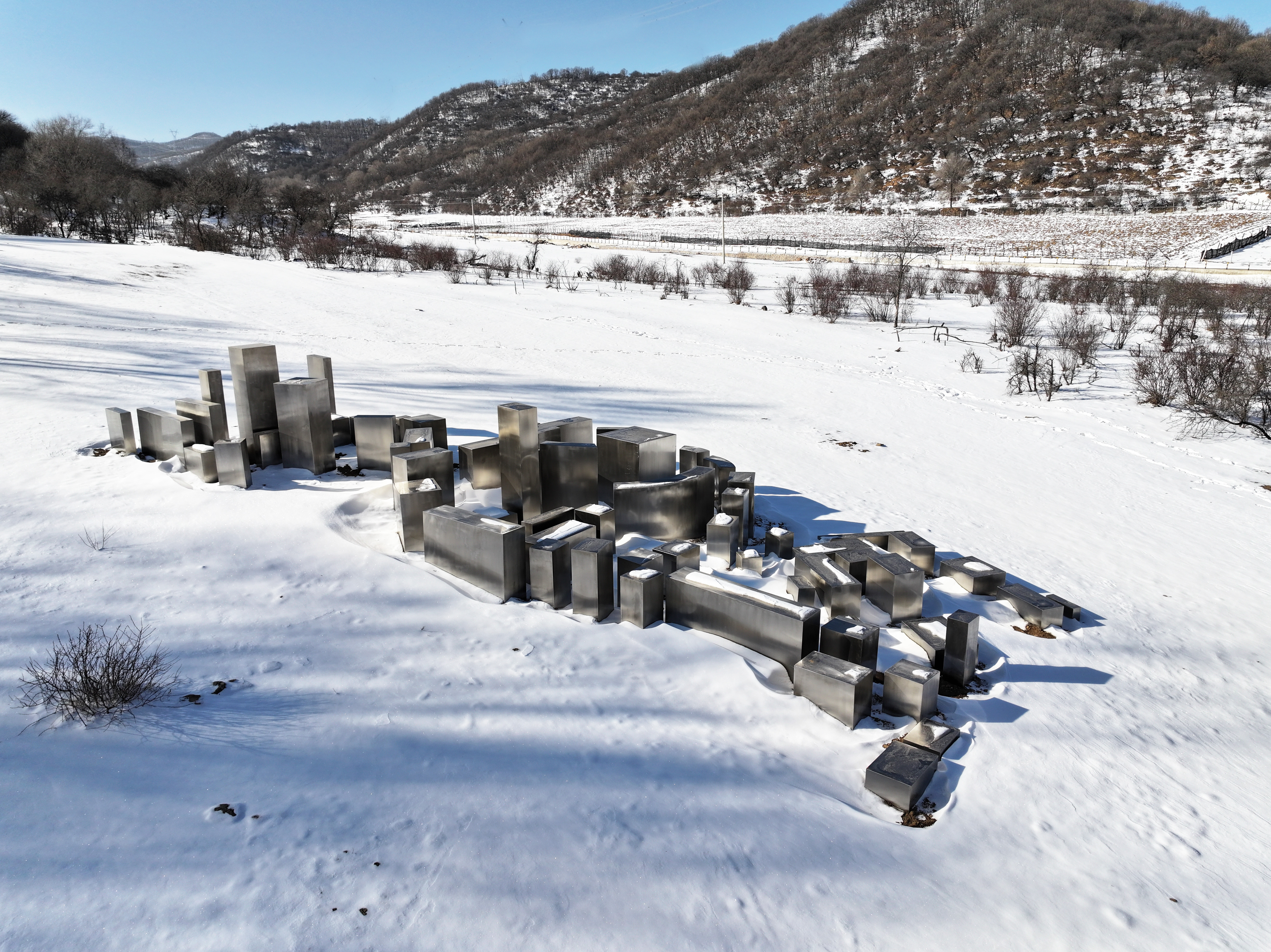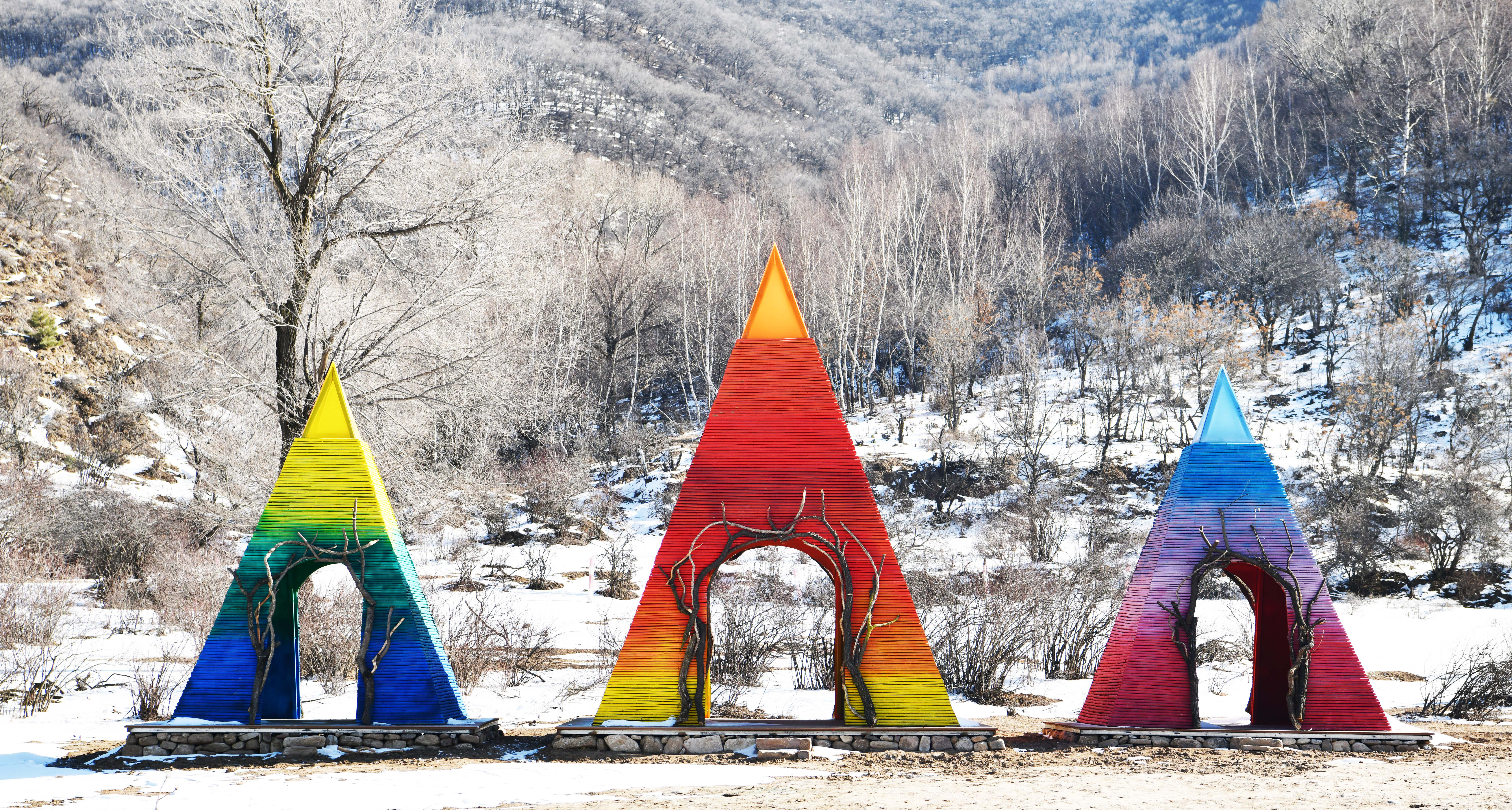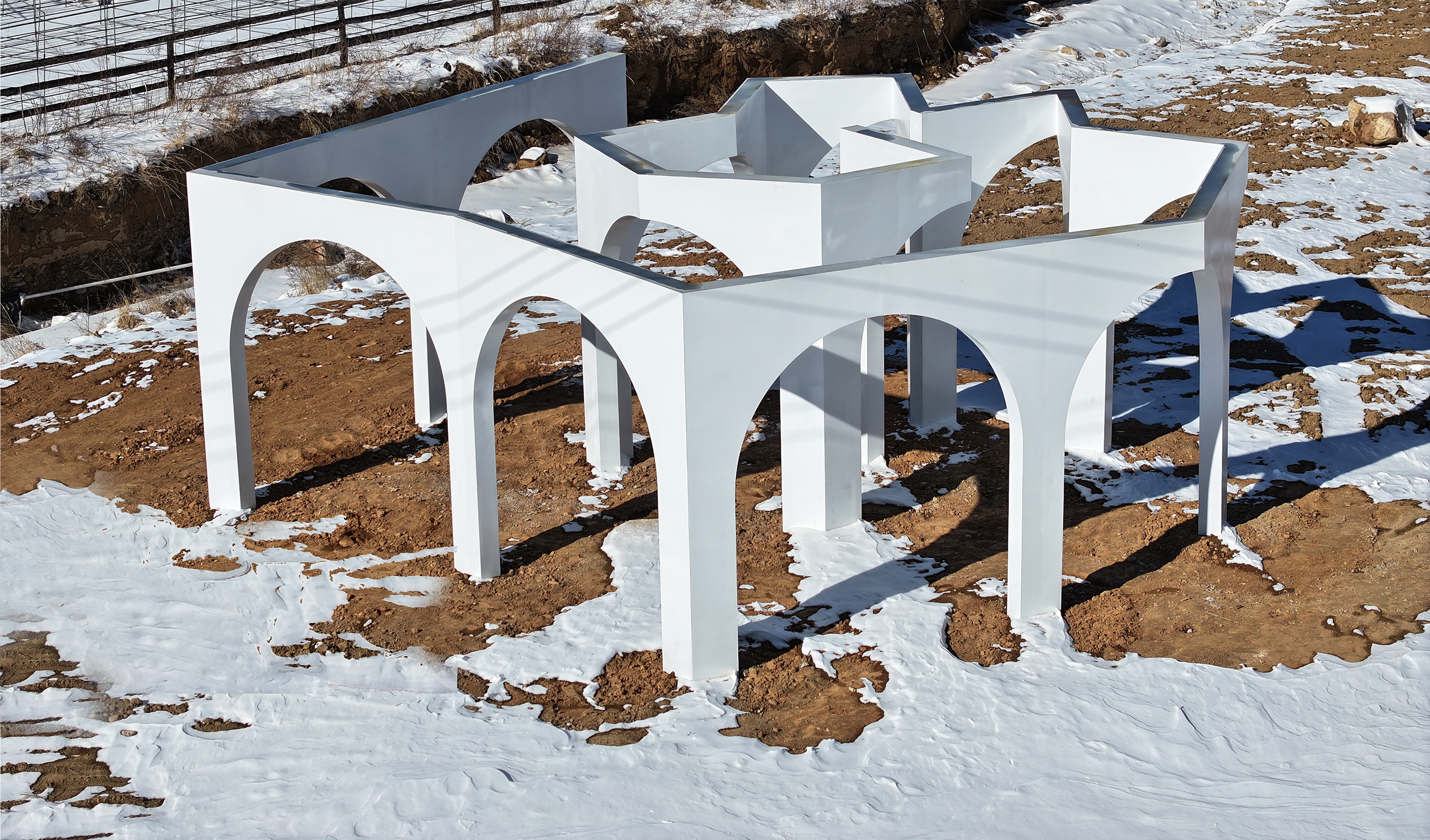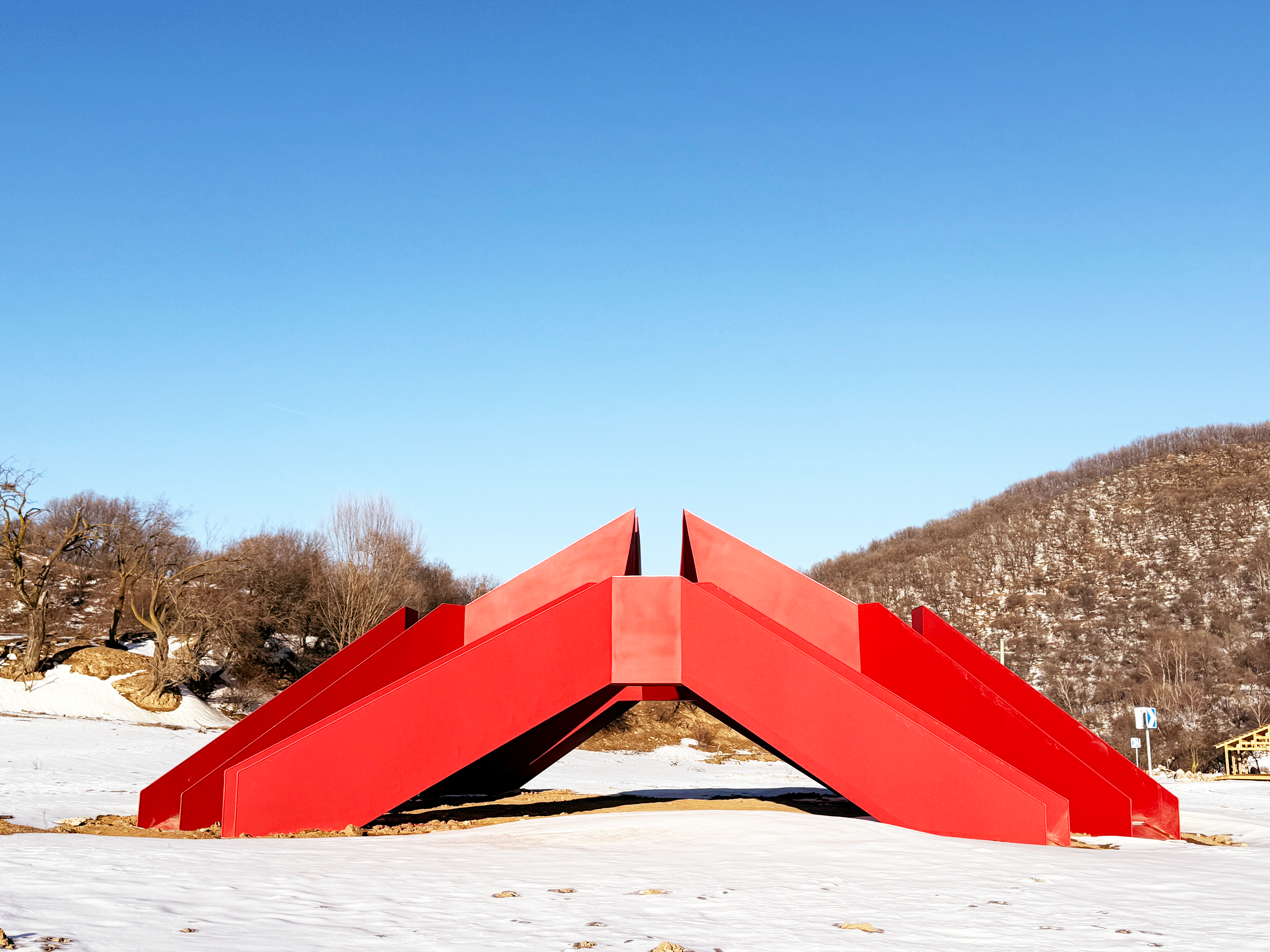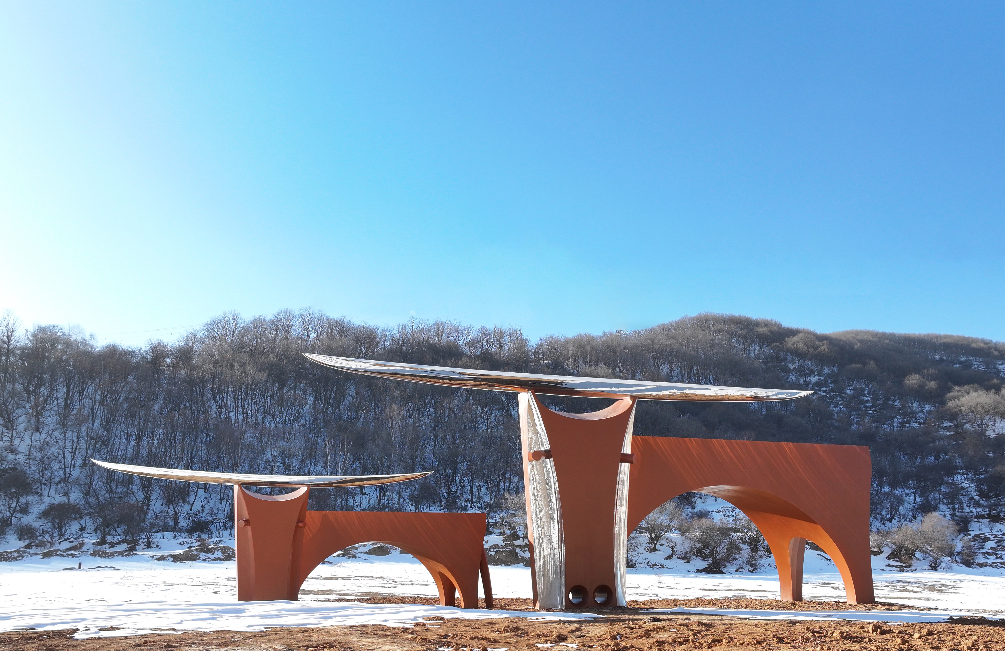 在苍茫峡谷之中,三座“ 山”字拔地而起,与远山叠嶂、近野牧歌相映成趣。这一装置的诞生,源于对“ 山”这一意象的深度解构,它不仅是地理的实体,更是精神的图腾。我们以汉字“ 山”为形,以“灵”为神,试图在物质与灵性之间架设一道桥梁 ,让往来者得以在此驻足、凝视、沉思,最终与自然达成某种默契的共鸣。