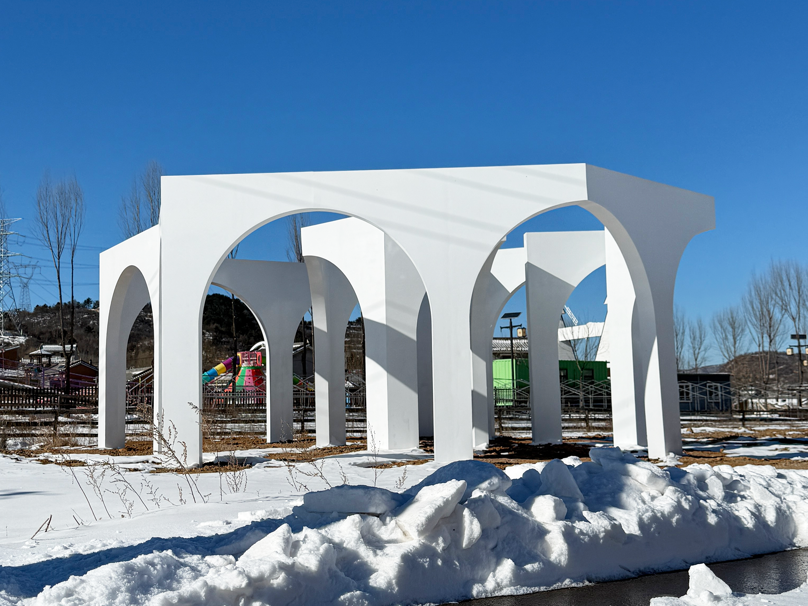 “山灵滑梯”是以山峦形态为基底的景观游乐装置,巧妙融合当地剪纸艺术的镂空纹样。其层叠结构在阳光下投映出灵动的光影,宛如立体的山野剪纸。装置将民俗符号转化为可游可赏的活力空间,既满足大众社交需求,也成为传承地方美学的沉浸式课堂,生动联结艺术与山野精神。