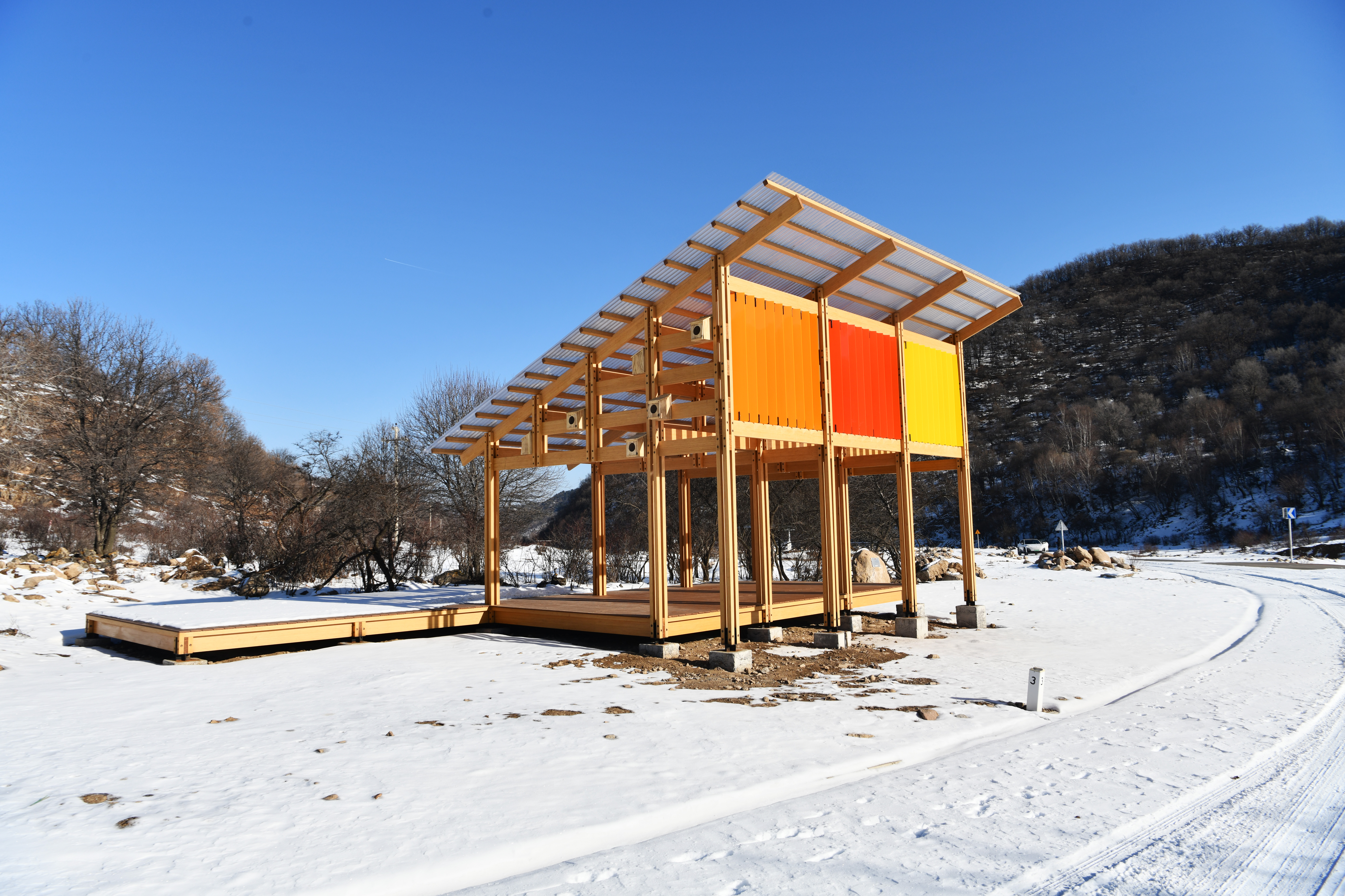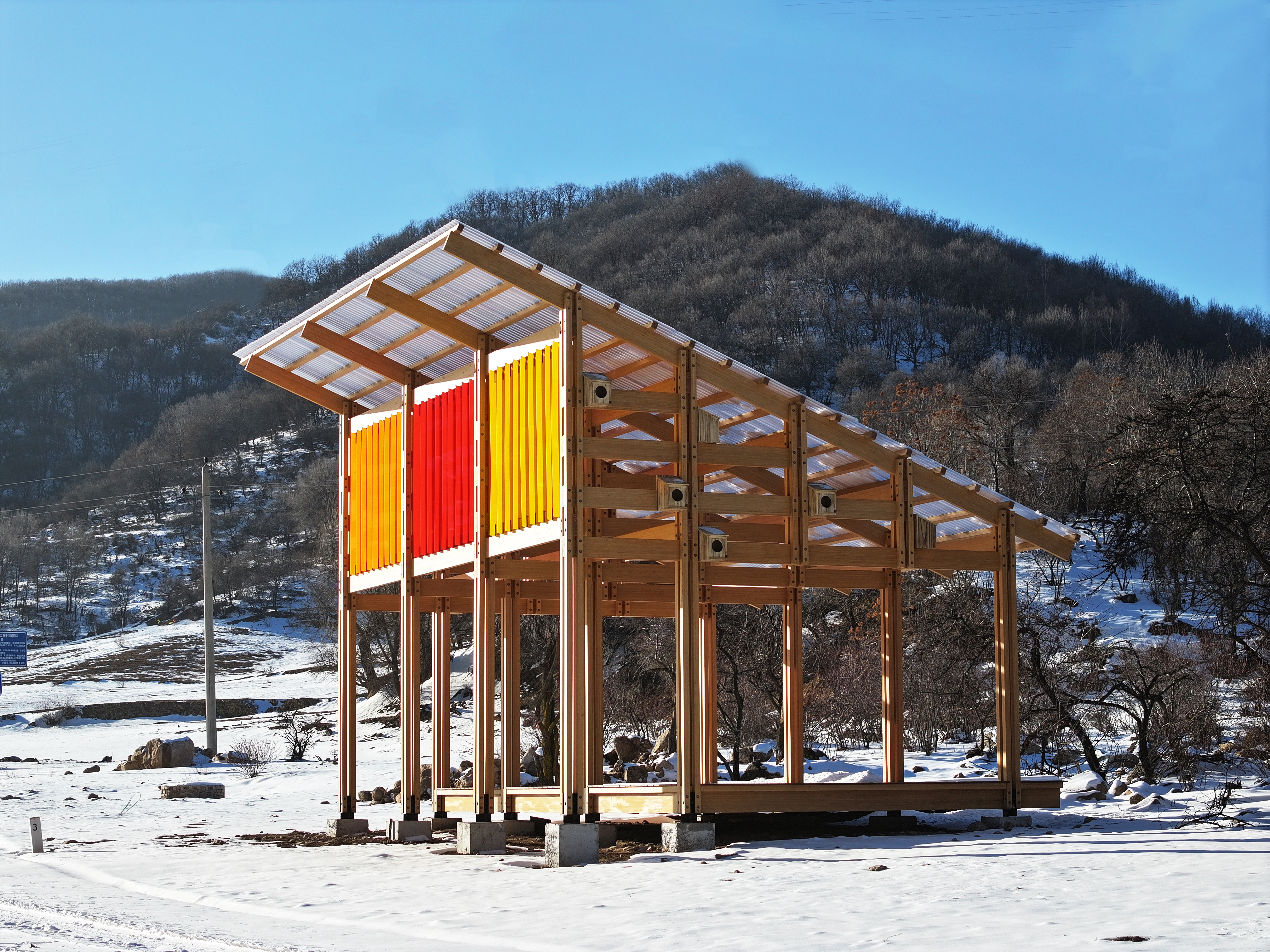 在山灵剧场中间,它不设围墙,以景观设施的形式立于开阔地,既是行程的入口标志,也为徒步者提供补给、歇脚与避雨之所。同时,艺术化的结构将融入鸟类筑巢点,实现人鸟共栖,让驿站成为人与自然的中转站与联结点。