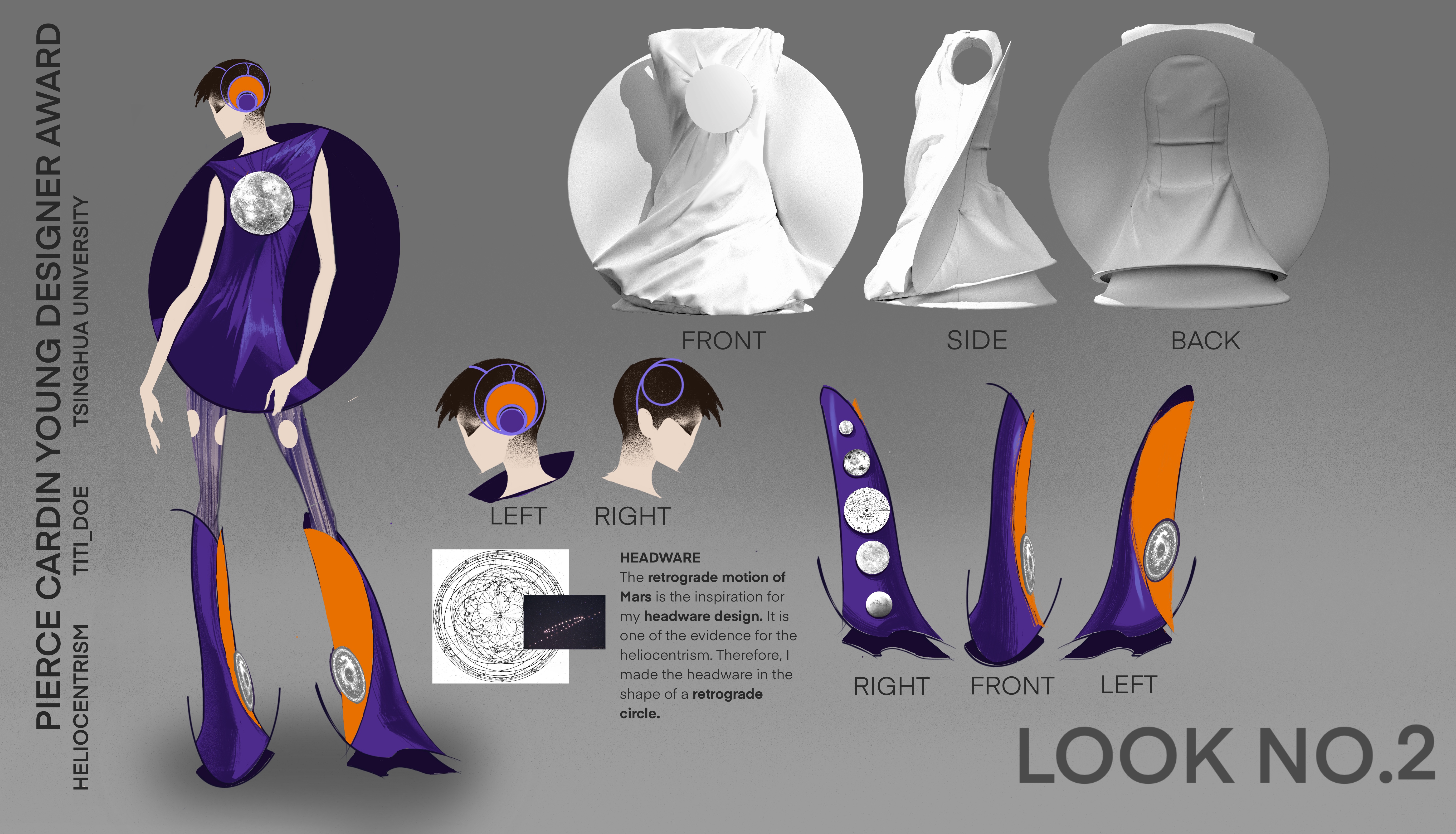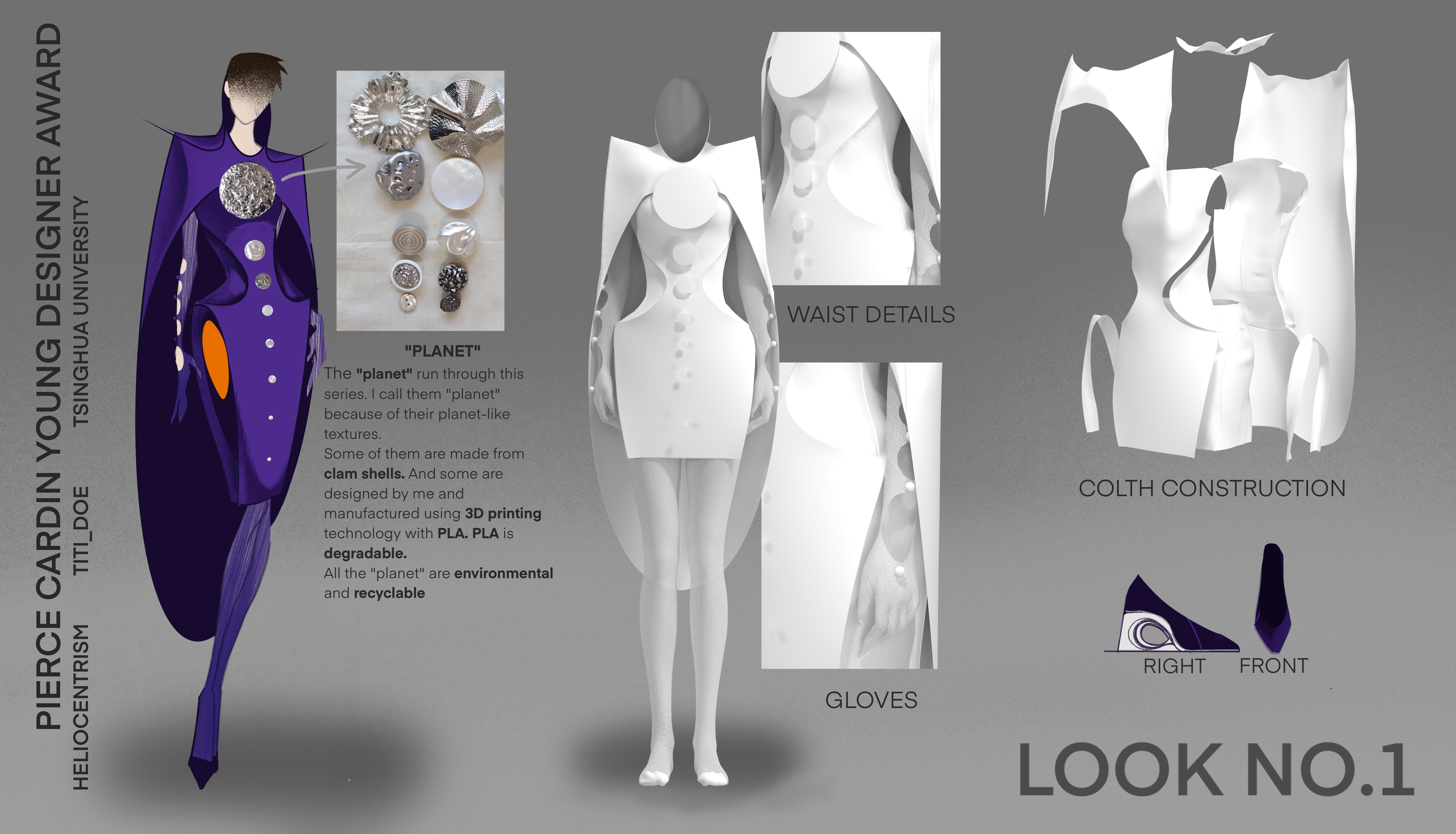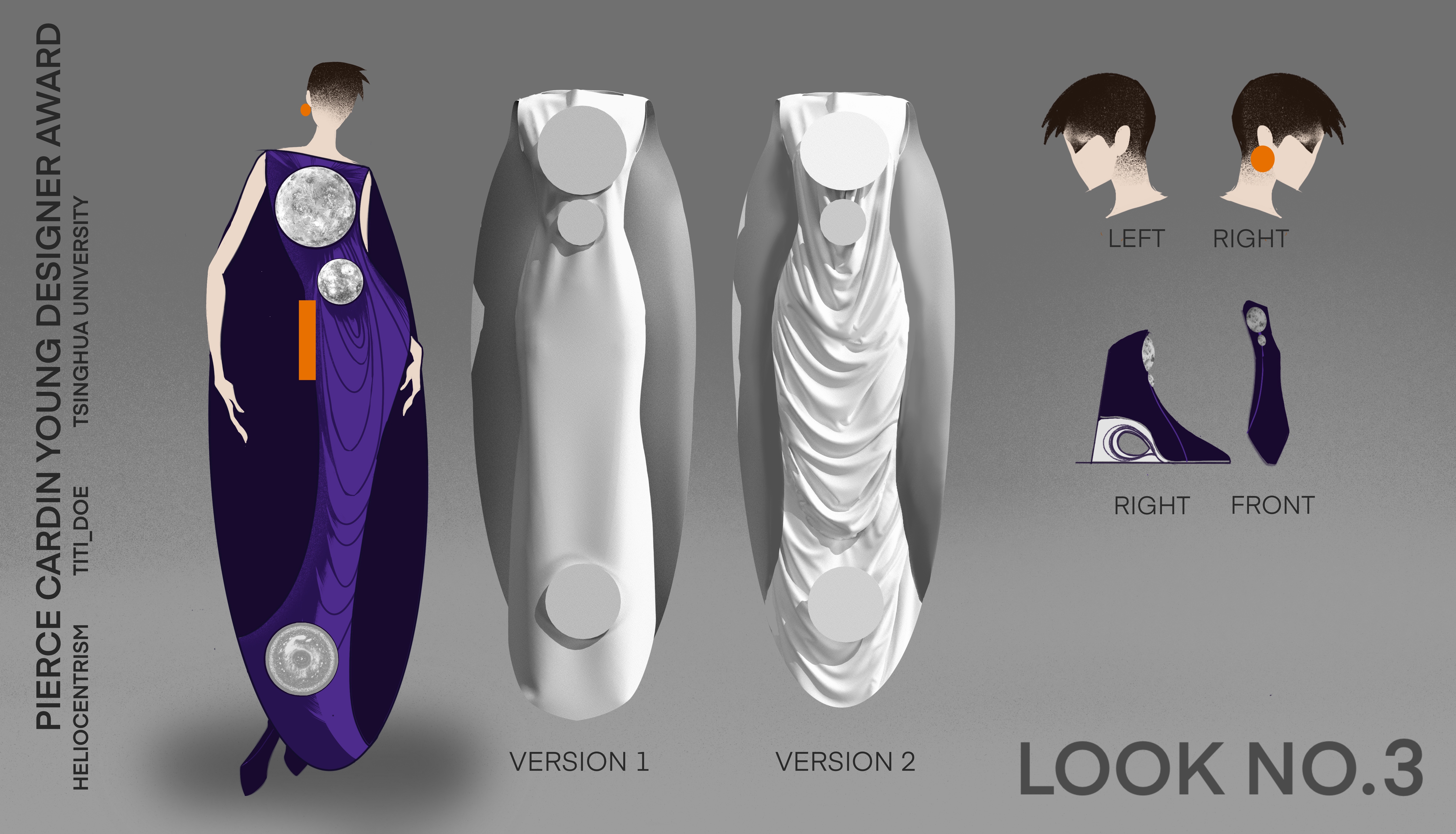 林榕的获奖作品《Heliocentrism》(日心说)灵感来源于鱼丰的《地。―关于地球的运动―》,这是一部以日心说的发现过程为灵感的作品。林榕使用圆形作为主要的廓形灵感,使用环保材料制作3d打印服装配件。此外,她也为皮尔·卡丹公司制作了数字时尚网页。
