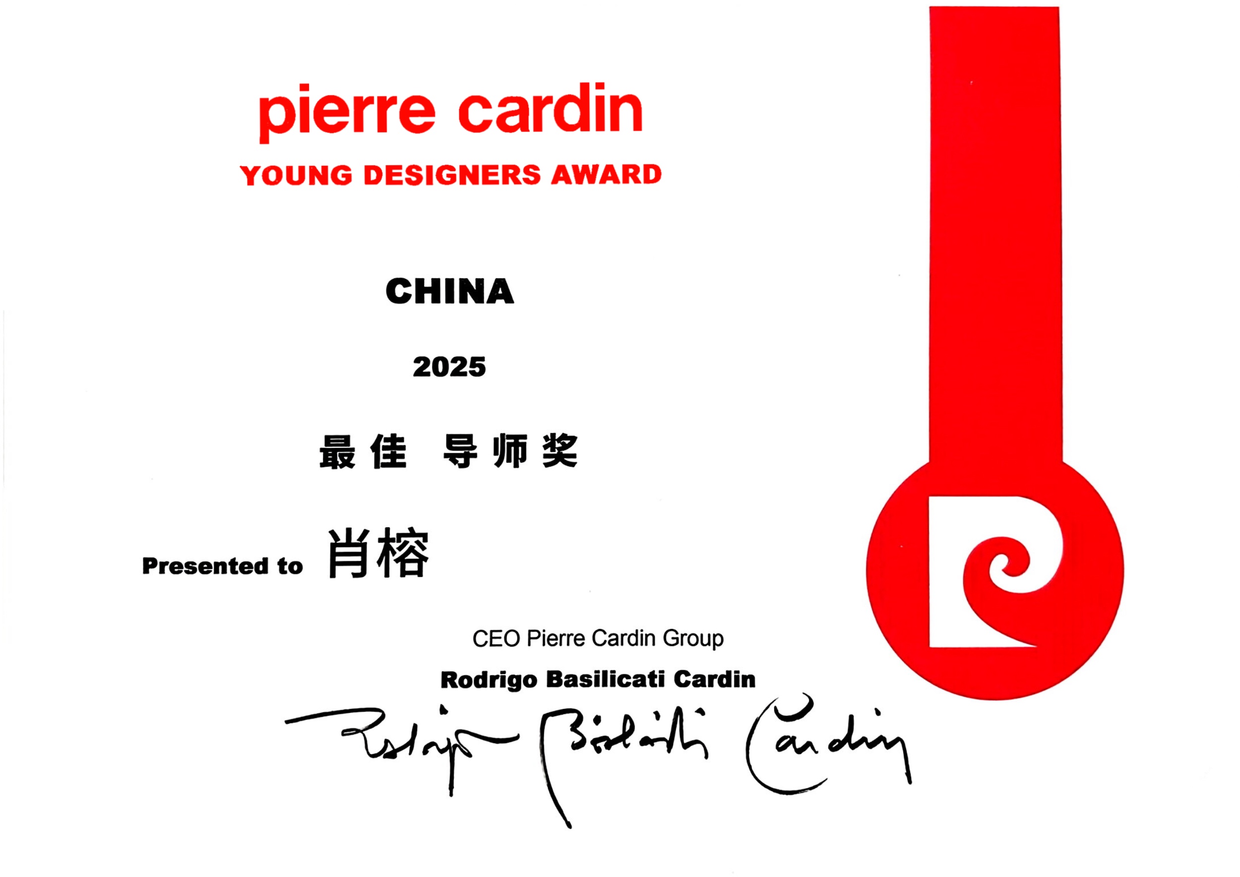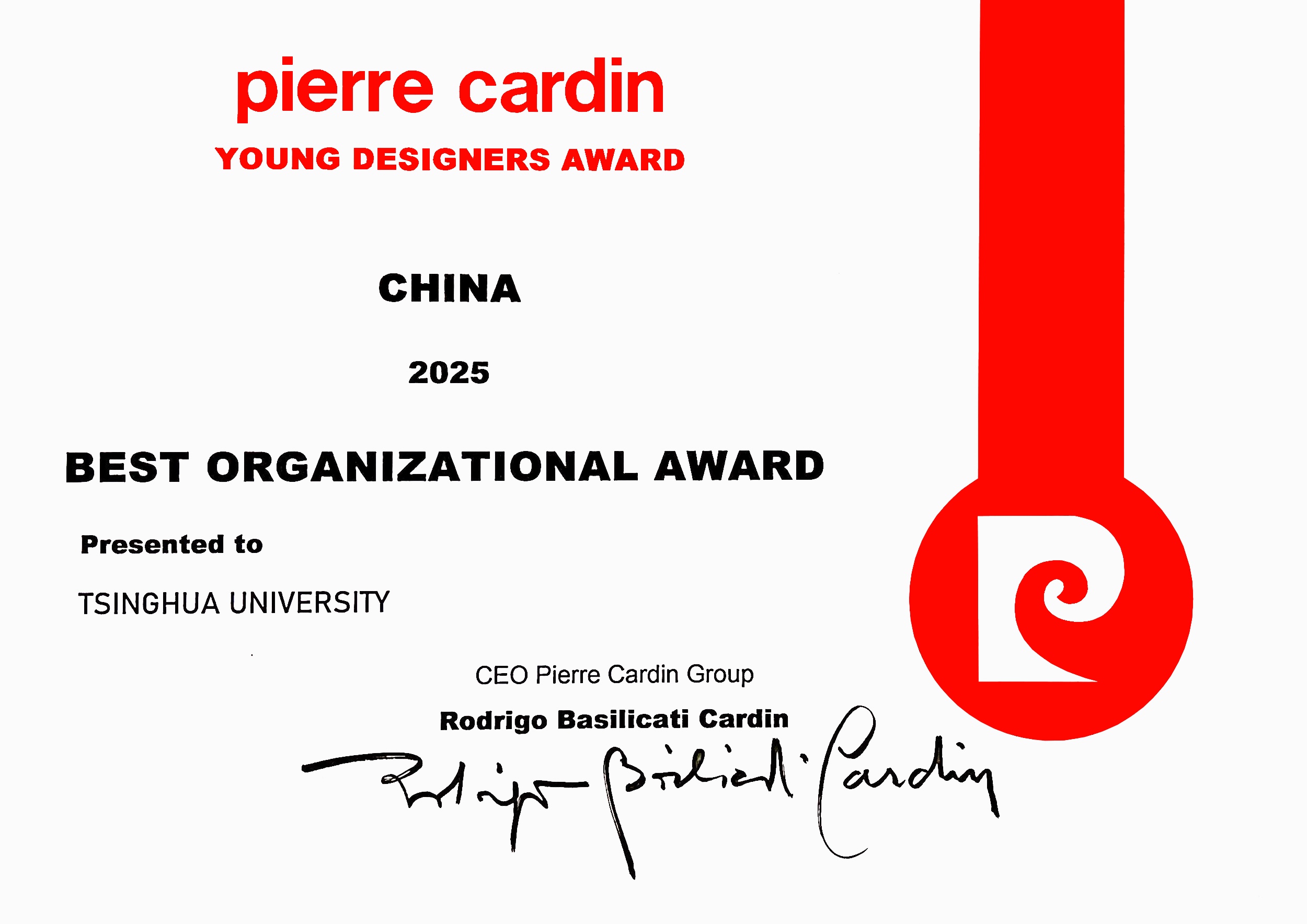 本届大赛由法国皮尔·卡丹品牌发起,旨在全球范围内选拔具有先锋精神和创新潜力的青年设计人才。 经过皮尔·卡丹巴黎工作室及品牌总裁罗德里戈·巴西利卡提·卡丹(Rodrigo Basilicati Cardin)领衔的评审团严苛评选,我院学子从全国近百所高校的数百份作品中脱颖而出:2025级染织服装艺术设计系硕士研究生张馨月的作品《Born Between Passion》荣获本次大赛亚军,林榕的作品《Heliocentrism》荣获本次大赛季军。清华大学美术学院获最佳组织奖,学院教师吴波、肖榕荣获最佳导师奖。法国驻广州总领事馆总领事罗宏灵(Sylvain Fourrière)为本届亚军张馨月颁奖,皮尔·卡丹男装休闲服中国区代理人为本届季军林榕颁奖,我校学生周玉清进入决赛。