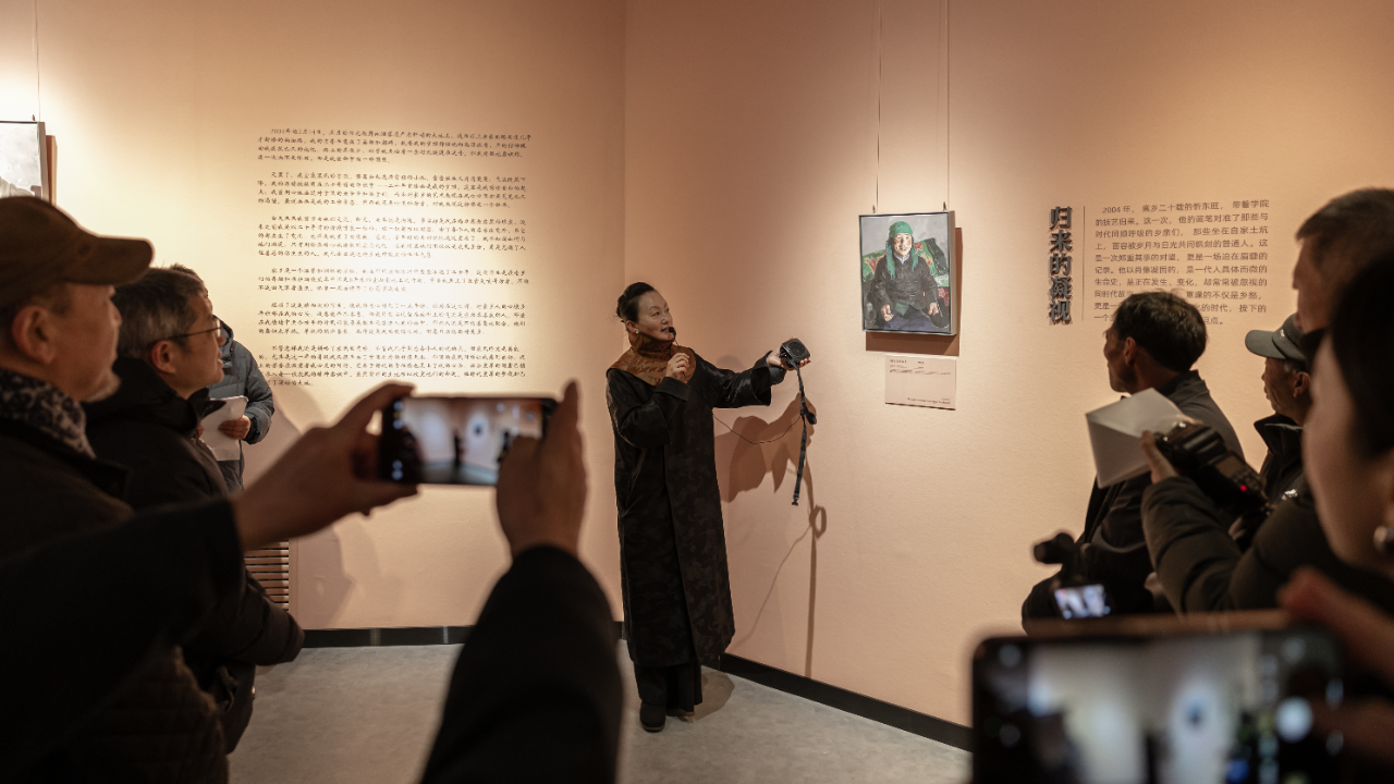 揭牌仪式同日,纪念馆首展“没有终结的律动”正式向公众开放。展览系统梳理并呈现了忻东旺在数十年艺术生涯中,其创作与故土康保之间持续而深刻的精神联系。开幕式上特别邀请了八位家乡的画中人物到场剪彩,也是遥相呼应2005年其代表性个展《村民列传》在上海美术馆展出时的剪彩场景,象征着艺术家笔下的作品与画中人,历经岁月,终于以展览的形式在家乡重逢。仪式结束后,张宏芳为现场嘉宾进行了导览,并邀请画中人物座谈,共同回忆了与忻东旺之间的温暖往事。