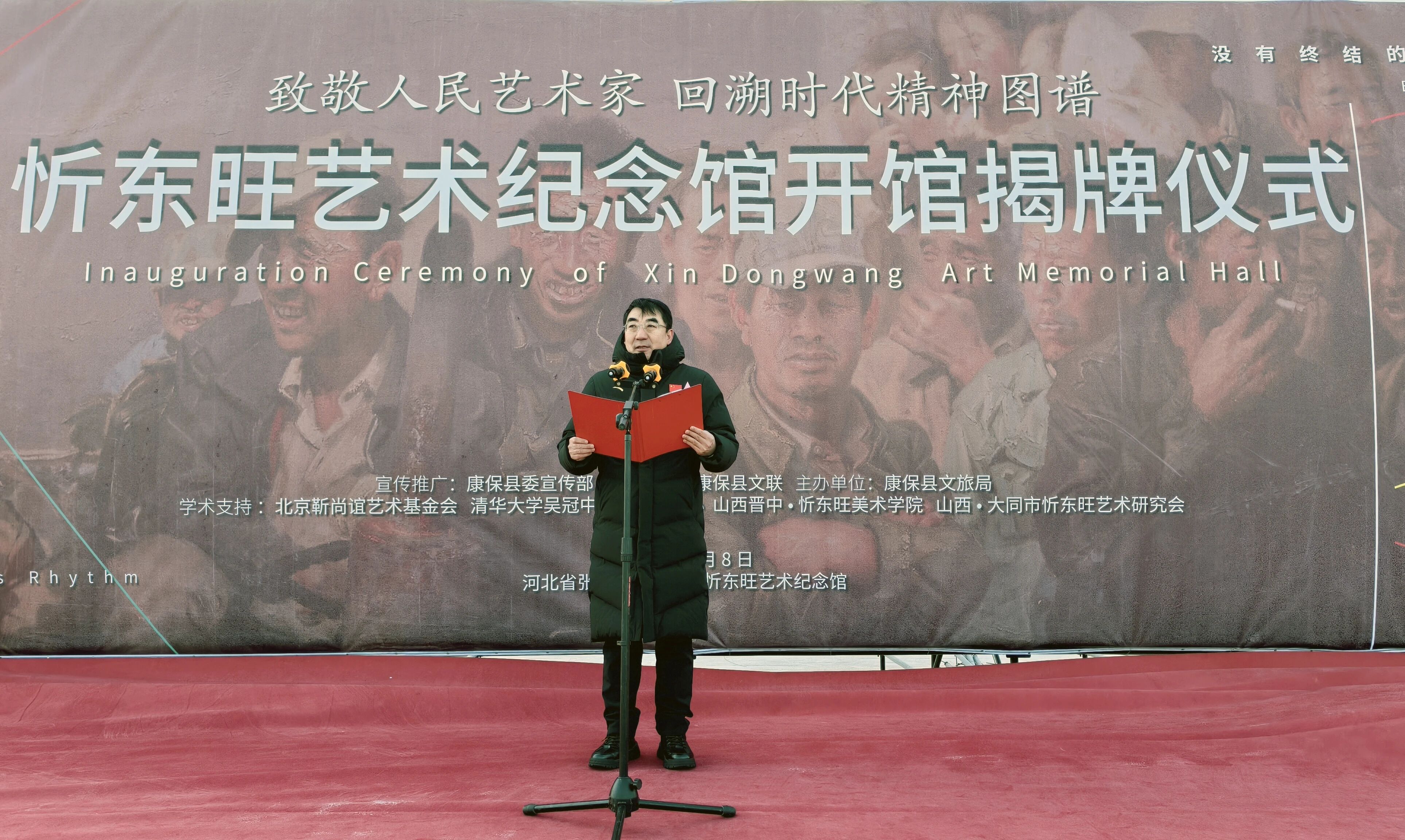 2026年1月8日上午10时,忻东旺艺术纪念馆在河北省康保县正式揭牌成立。康保县委书记张志刚,清华大学美术学院绘画系教授周爱民,忻东旺夫人、忻东旺艺术研究中心名誉主任张宏芳,家乡画中人代表戈润增在现场发表讲话。