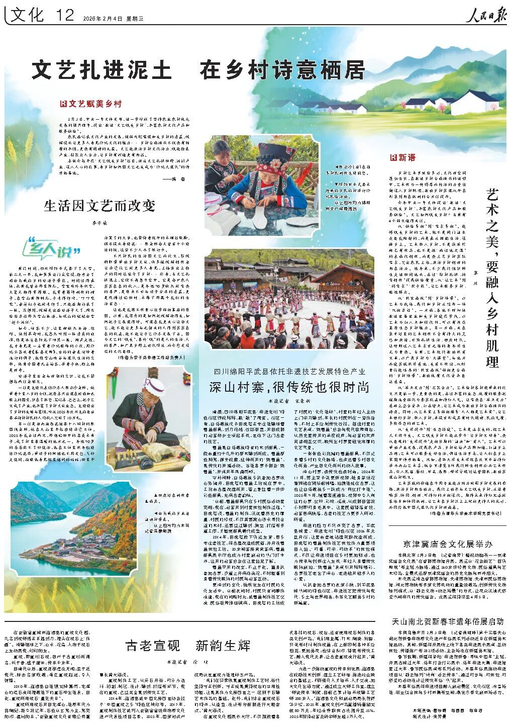 从“单点发力”到“汇聚合力”。艺术给村容村貌带来的改变只是第一步,更重要的是,通过丰富的业态、优质的服务把短期流量转化为务实收益和持续人气。这需要在“单点发力”基础上整合资源、打通堵点,让艺术成为推动乡村全面振兴的桥梁。同时,从艺术家主导转向倡导“人人都是艺术家”,让艺术回归乡村、融入乡村,并探索形成具有时代精神、民族气质、多维样态的新艺术。