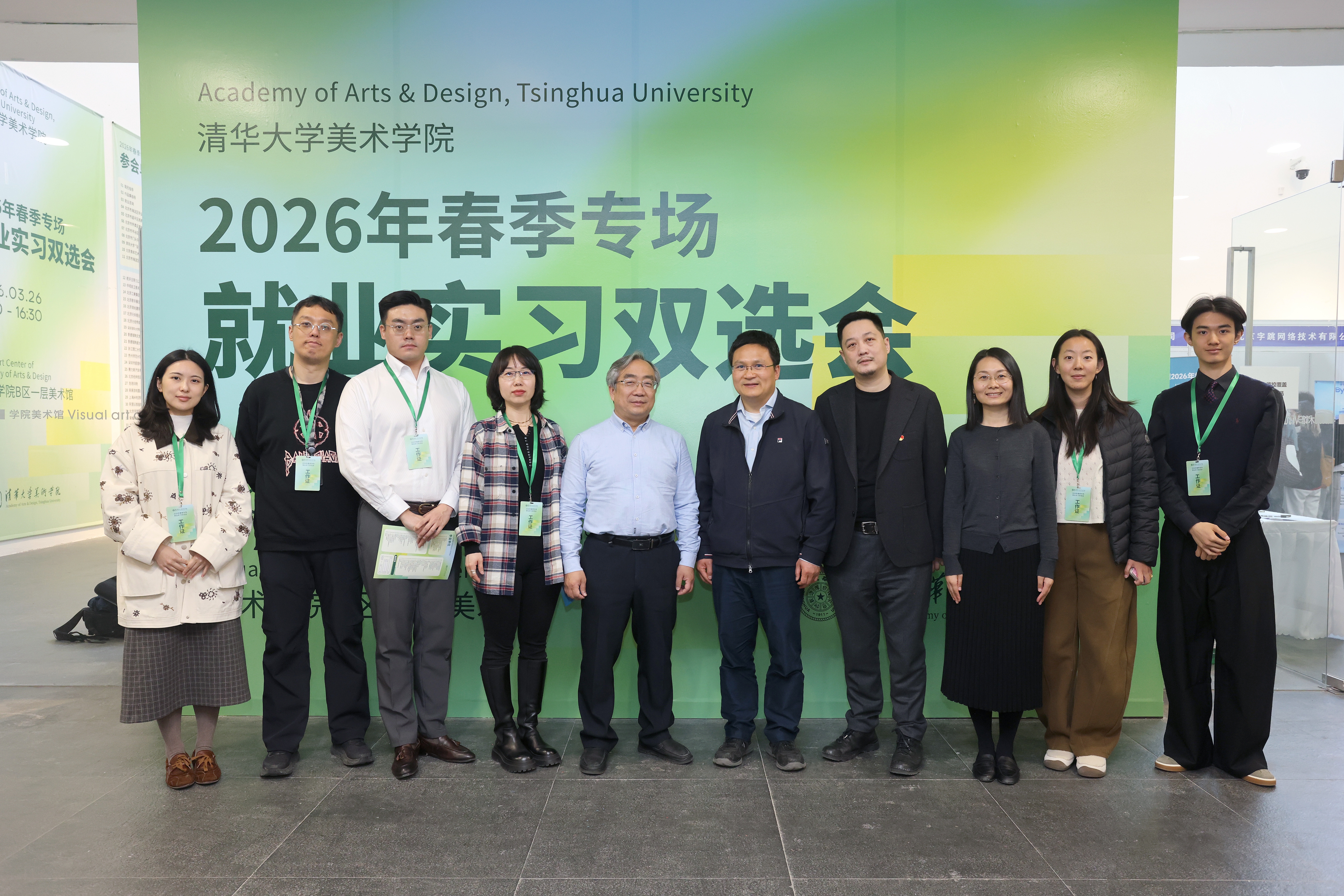 2026年3月26日,清华大学美术学院2026年春季专场就业实习双选会在美院B区一层美术馆举办。本次双选会在延续往年经验的基础上,深度聚焦国家创新创业政策、就业市场新趋势与学生多元发展需求,通过结构化创新,构建了集“能力提升—政策传导—资源拓展”于一体的综合性支持平台,吸引了众多北京市区委部门、用人单位与美院学子积极参与。