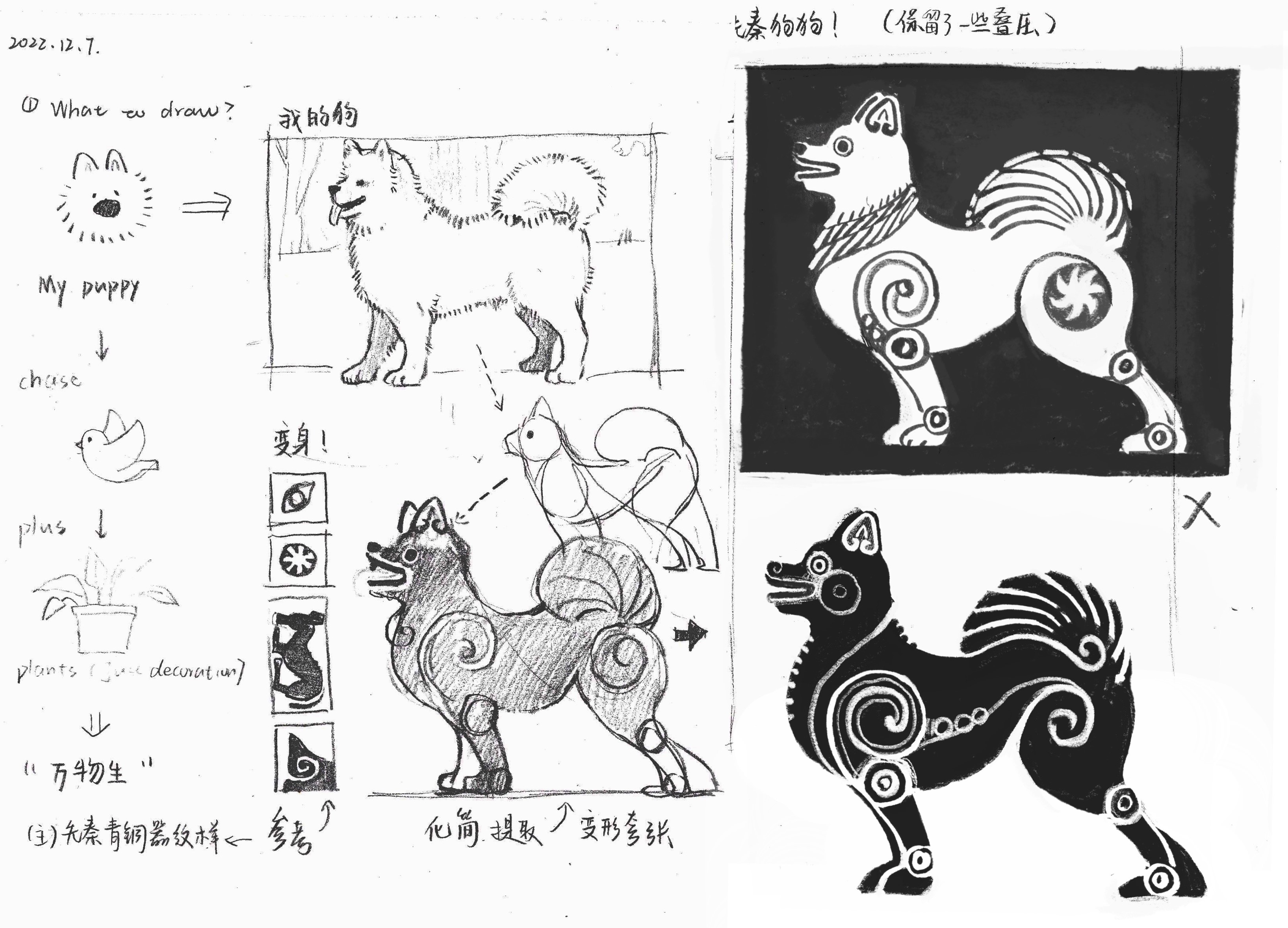 设计师将宠物形象转化为先秦青铜器风格的装饰图案