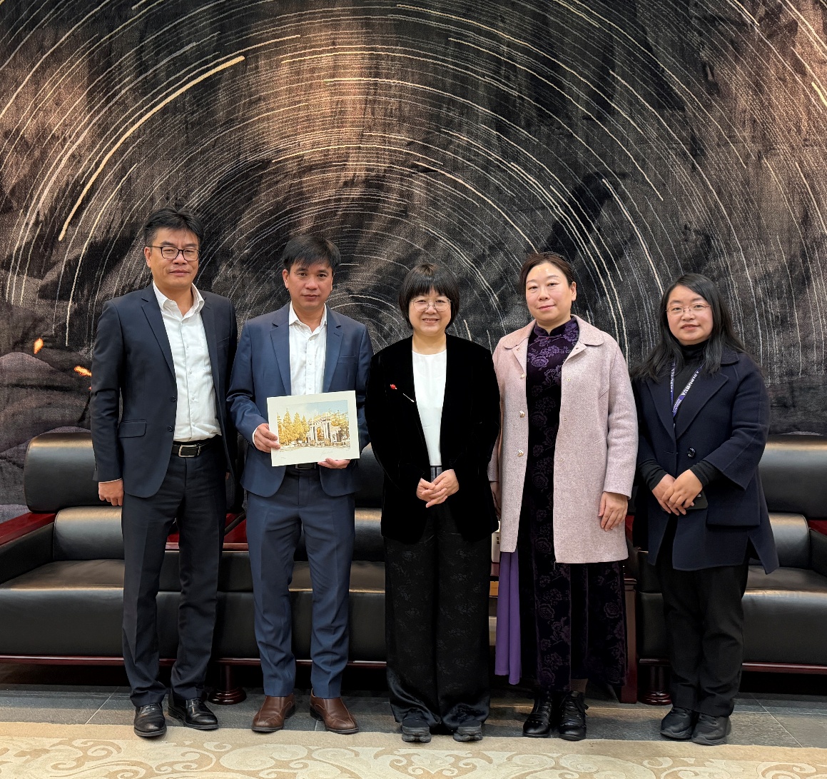 2026年4月15日上午,越南胡志明市经济大学执行校长裴光兴(Bui Quang Hung)和研究开发与全球合作部主任范庆南(Pham Khanh Nam)来访清华大学美术学院。清华大学美术学院院长吴琼、教务办主任李文、国际合作与交流办公室主任郝娟娣参加会谈。