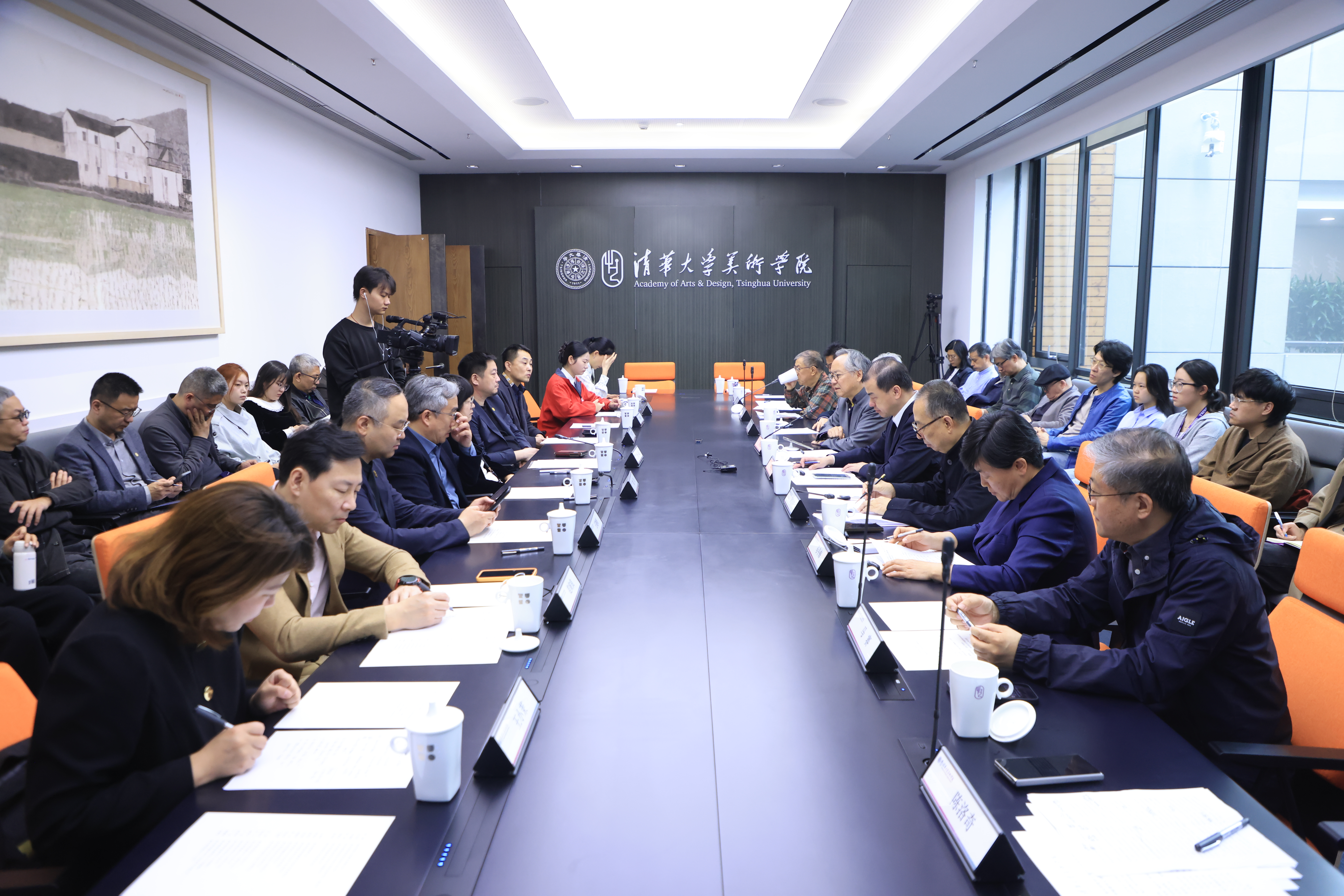 会上,覃川汇报了美院五年来在深化教育教学改革、构建自主知识体系、服务国家社会发展、增进国际文化交流等方面的举措成果。美术学院院长吴琼围绕深化艺科融合、瞄准顶尖目标,加快部署落实学院“十五五”规划作发言。文科资深教授、艺术博物馆馆长鲁晓波回顾了习近平总书记考察美院的场景,表示将推动艺术博物馆持续丰富高品质文化艺术资源供给,建设清华特色的世界一流高校艺术博物馆。文科资深教授刘巨德强调了美育对人才培养的重要作用,表示在习近平总书记重要讲话指引下,清华的美育之路得到了总结提升和新发展。马冬梅充分肯定了清华美院在北京平谷开展的艺术设计赋能乡村振兴的实践成效,并期望开展全域化、机制化、长效化的校地合作。美术学院教授马赛汇报了清华大学国家形象设计研究中心的建设初衷和筹备情况。潘鲁生深刻阐释了习近平总书记重要讲话精神的内涵,强调人工智能时代要在深刻把握中国造物哲学的基础上,推动艺科融合、服务社会需求。