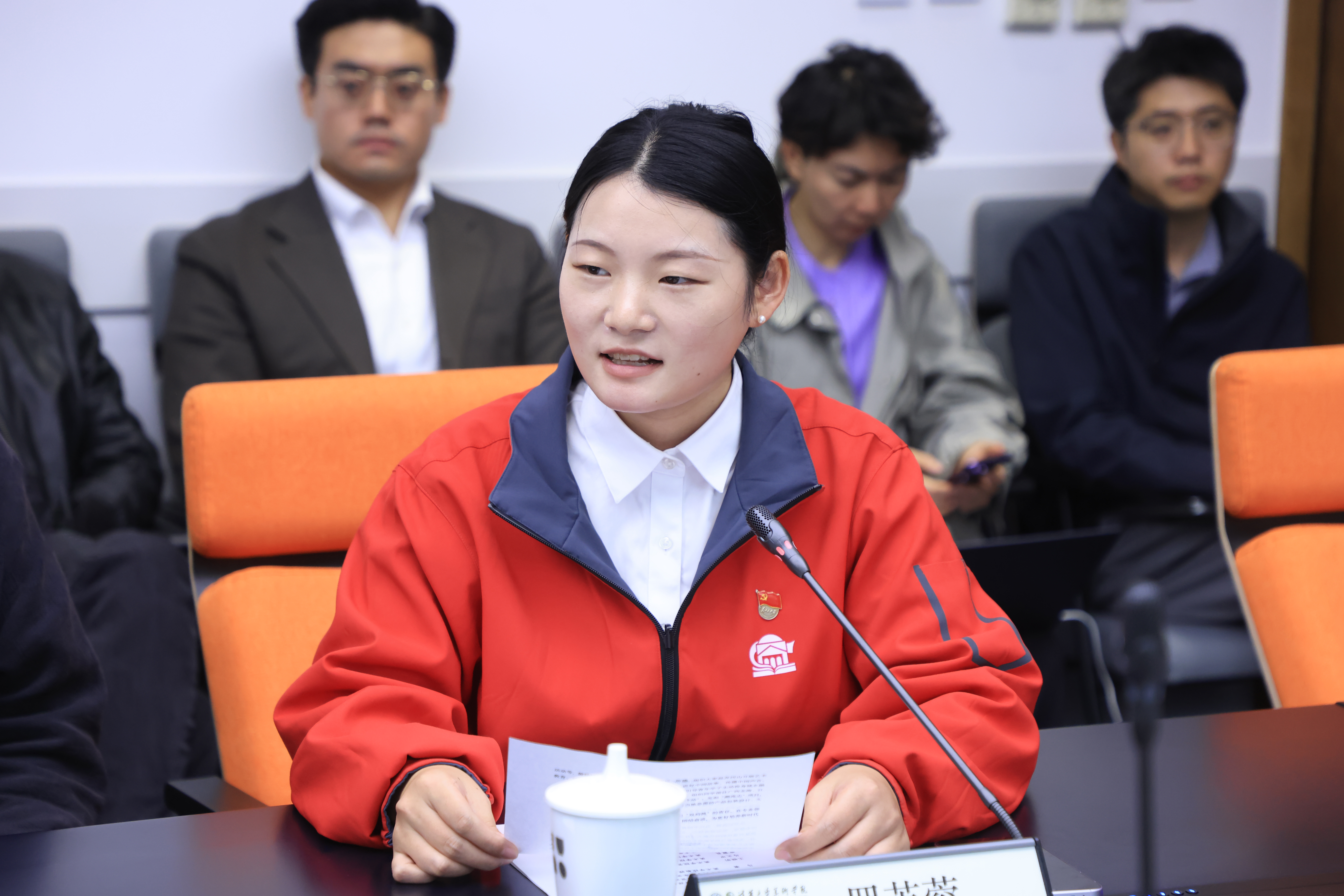 美术学院团委书记罗芙蓉以《向美而行 以艺报国》为题,结合自身在艺术赋能乡村振兴领域的实践策划、理论研究以及担任学生思政工作等方面的经历,分享了在学院贯彻落实总书记重要讲话精神过程中受到的感召、成长和蜕变。她表示,未来将牢记总书记的嘱托,在专业领域勤思深耕、服务社会,在学生工作中提高认识、团结奋进,努力成为堪当民族复兴重任的时代新人。