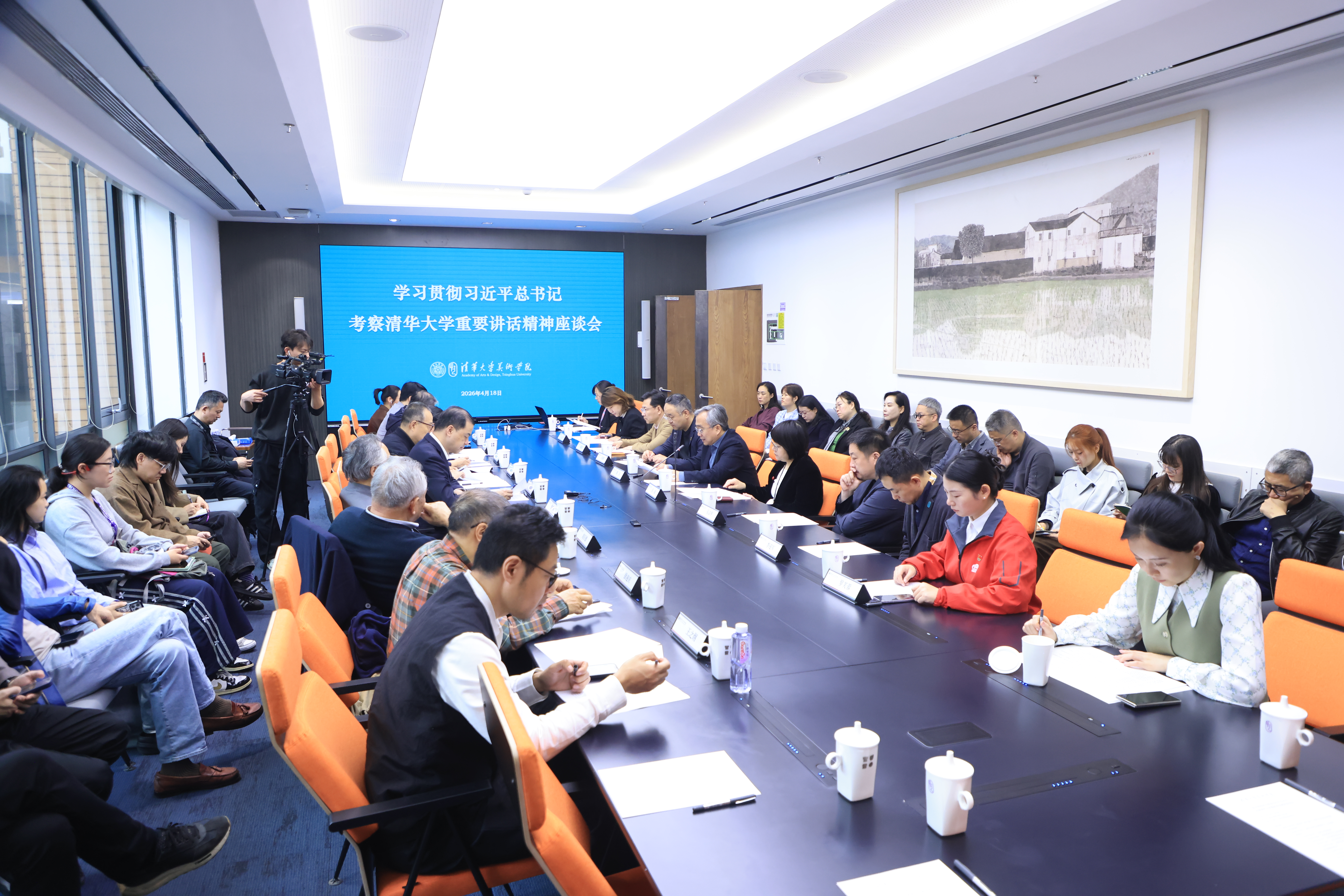 2021年4月19日,在110周年校庆之际,习近平总书记考察清华大学,首先来到美术学院参观校庆特别展并发表重要讲话。五年来,学院按照总书记的重要讲话精神办学育人、改革创新,取得了一系列成果。在新的起点上,学院通过座谈会的方式再次学习贯彻落实总书记重要讲话精神,带领全体师生在“十五五”规划期间,面向文化强国建设的重要时代责任,在推动中国式现代化建设的征程上能够更好地实现高质量发展。本次座谈会由美术学院党委书记覃川主持。全体与会人员首先集体重温了《新闻联播》关于习近平总书记考察清华大学的视频报道。