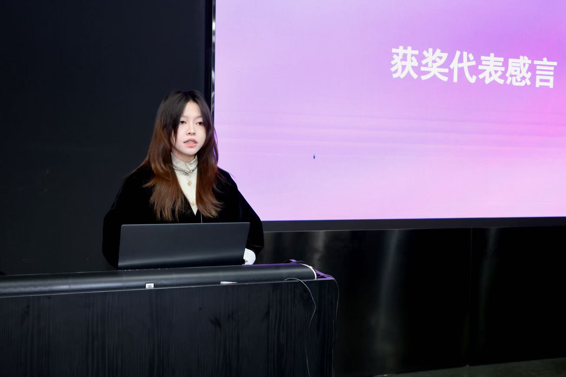 左:肖榕主持 右:获奖学生代表感言