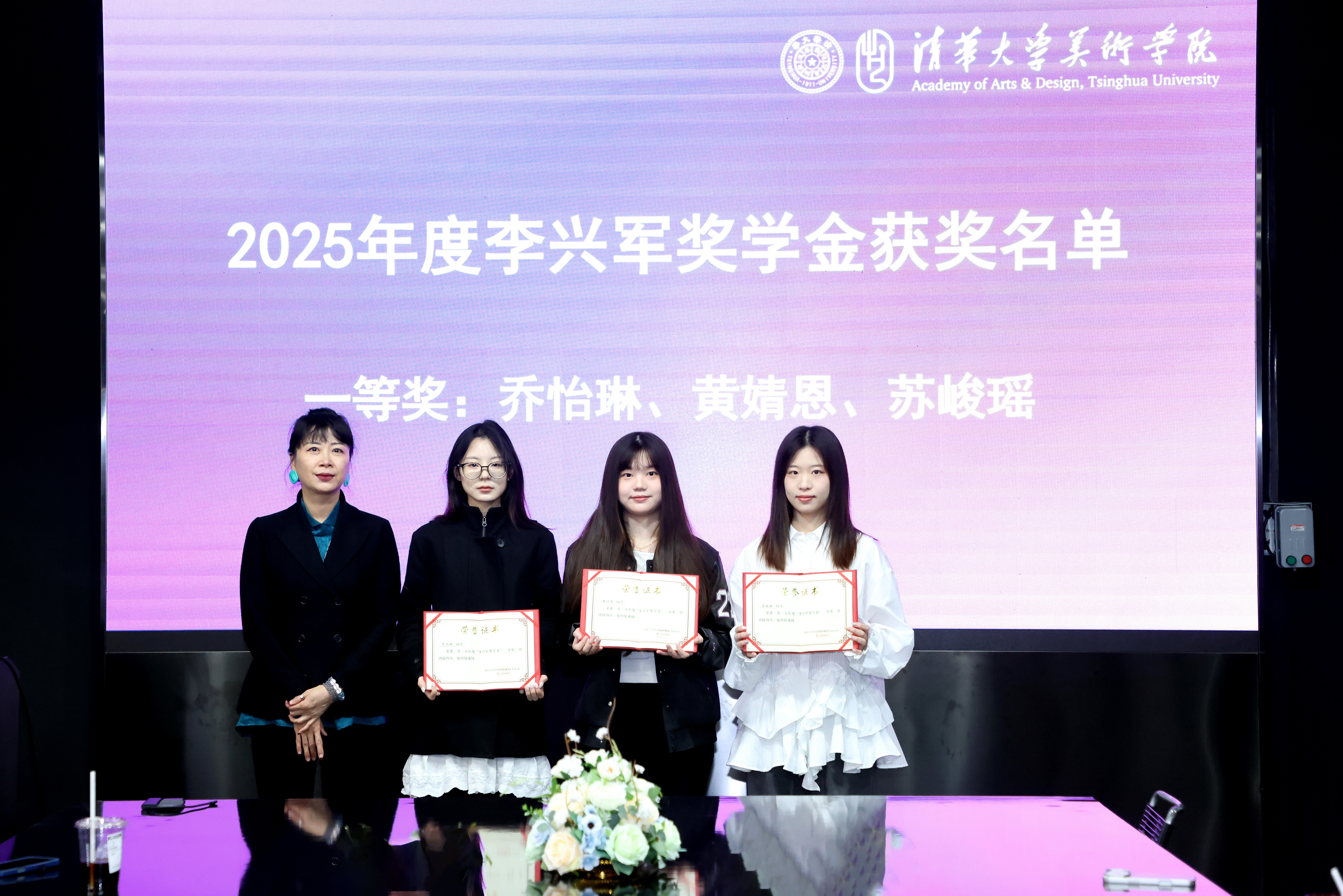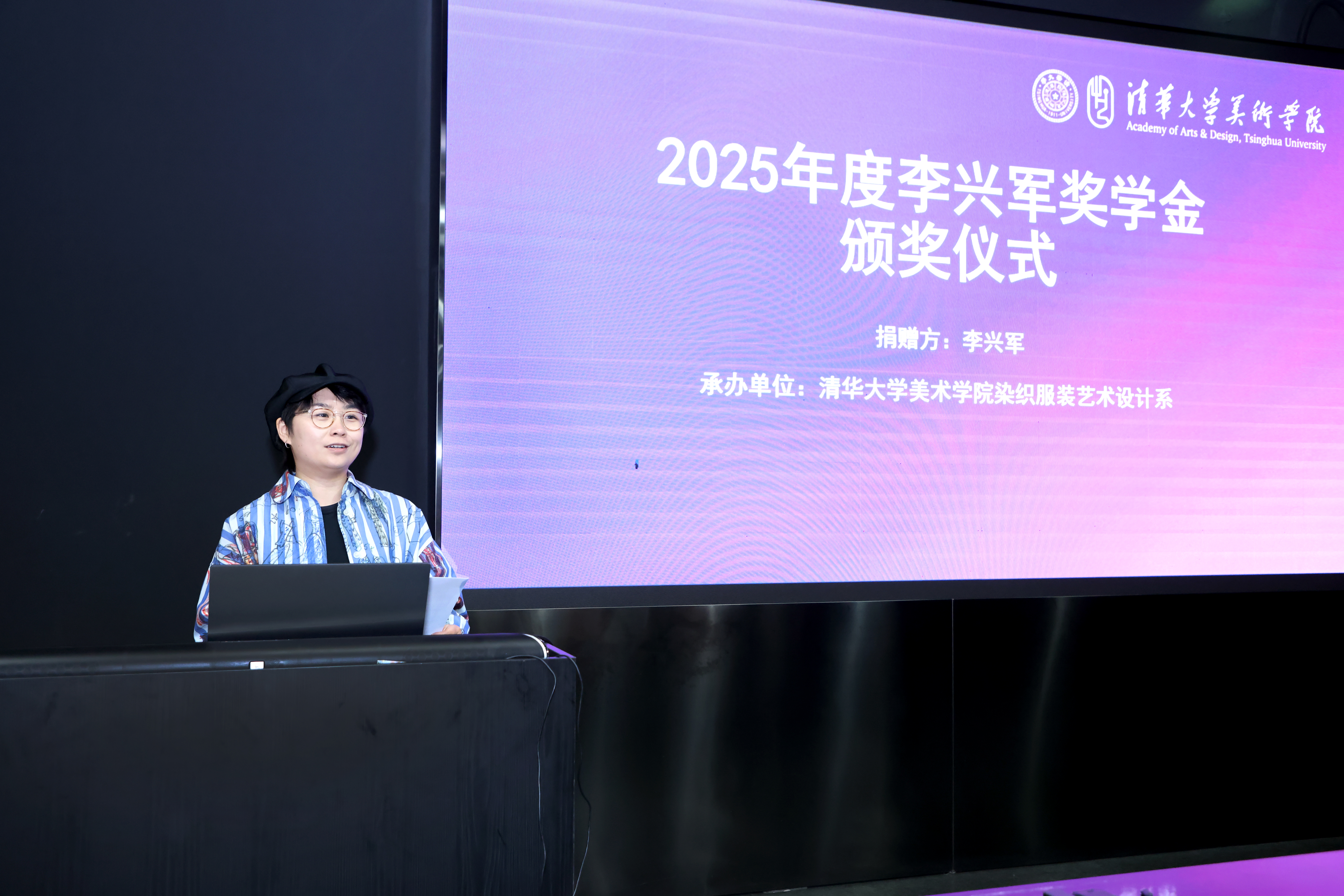 2026年4月21日,2025年度“李兴军奖学金”颁奖会在清华大学美术学院举行。2010级校友李兴军携清华美院染织服装艺术设计系主任张宝华、副主任吴波、党委学生工作组组长张红娟,以及肖文陵教授、李薇教授等学院教师代表,与20余名染织服装艺术设计系本科生齐聚一堂,共同见证这场校友反哺母校的温情盛典。此次颁奖会一是为了表彰过去一年学业表现卓越的同学;二是传承和弘扬李兴军校友对母校的深厚情谊以及对教育事业的无限热忱。颁奖会由助理教授肖榕担任主持。