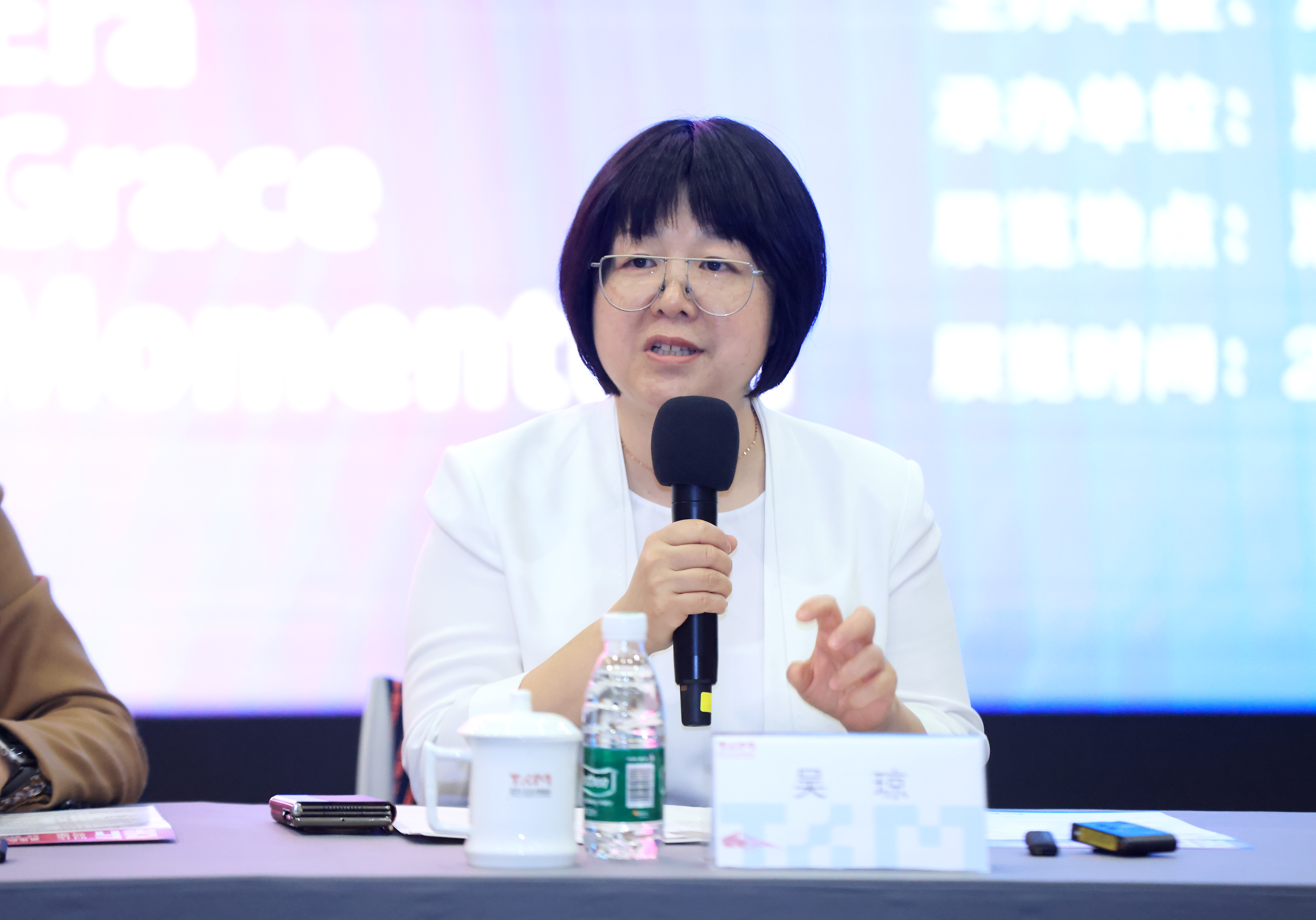 吴琼(左)致辞、王小茉(右)主持