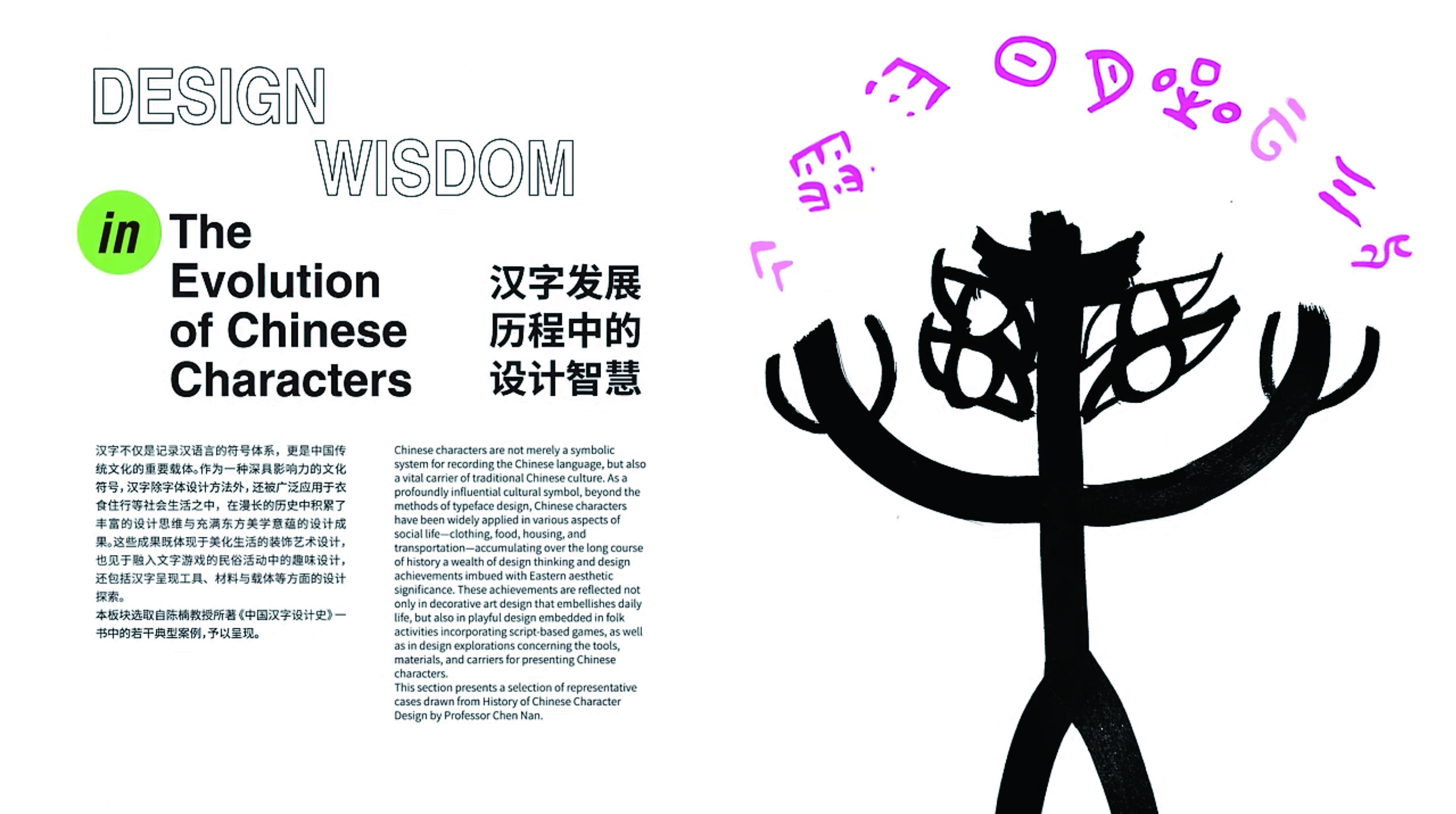 展览以视觉化、图形化、艺术化的视觉语言,通过系统收集、梳理汉字文献并完成当代视觉设计转译,系统呈现汉字文化背后的造字智慧、美学观念、装饰方法与文化内涵。设置“汉字起源与发展”“汉字构形与结构”“汉字装饰与美化”“汉字创新与文化传播”四大模块,以平面视觉艺术、艺术装置、信息可视化图表、立体书、视频影像、交互设计等设计手段,拉近汉字文化与不同文化背景的中文学习者及受众的距离,传播融入衣食住行等社会生活各个层面的汉字艺术与设计智慧,感知中国文化的深层逻辑与精神特质,实现从“汉字认读”到“文化共情”的中文学习进阶,推动国际社会中文学习与文化理解的深度融合,为中文国际教育构建“语言与文化”的一体化传播路径,助力中国汉字文化海外传播及“国际中文日”项目品牌建设,持续提升中华优秀语言文化教育的国际传播力与影响力。